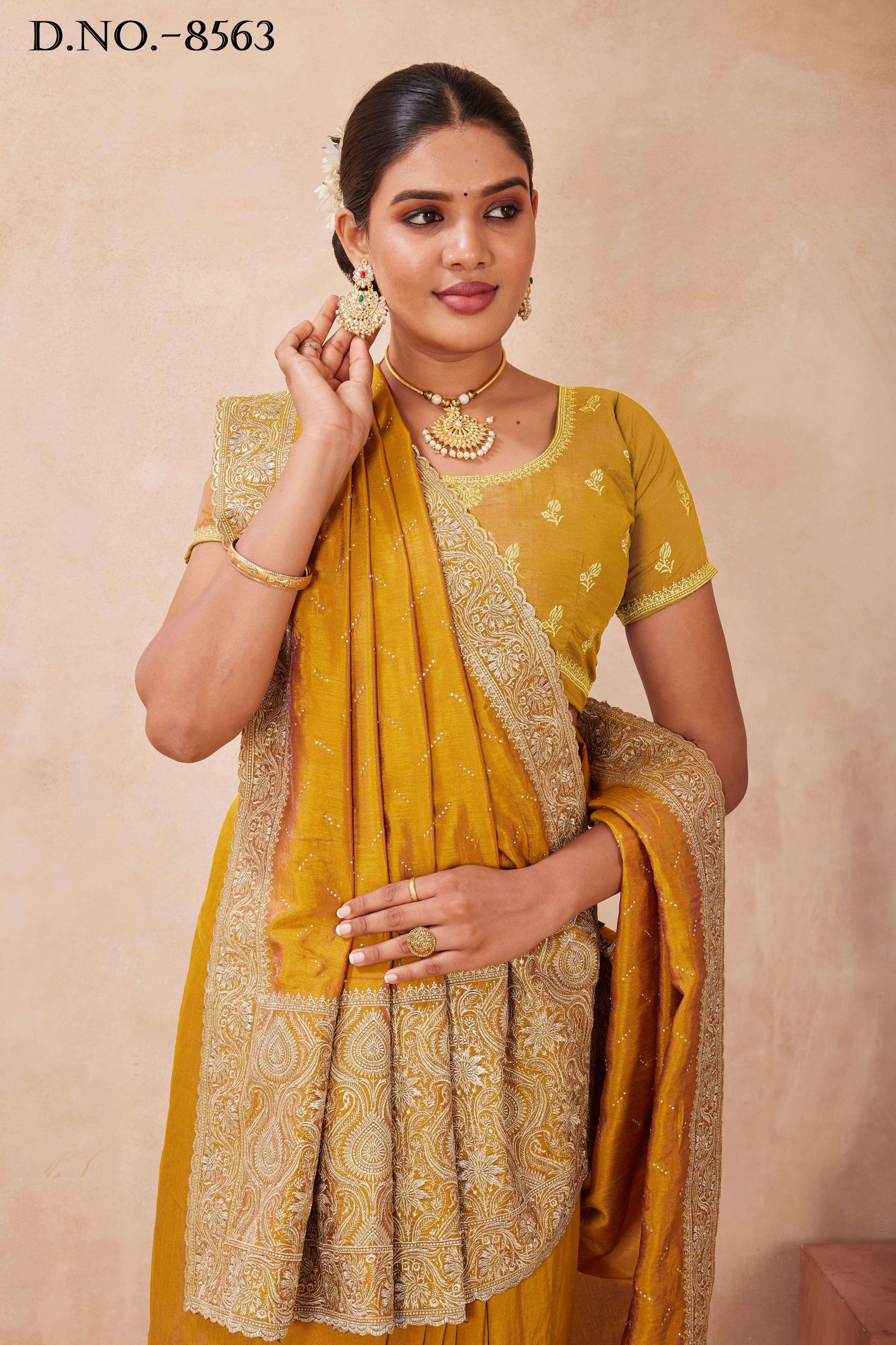 | Catalogue: | Shri Balaji Emporium NF BANSARI Kesariya Tow Ton Silk Embroidery Work Saree |