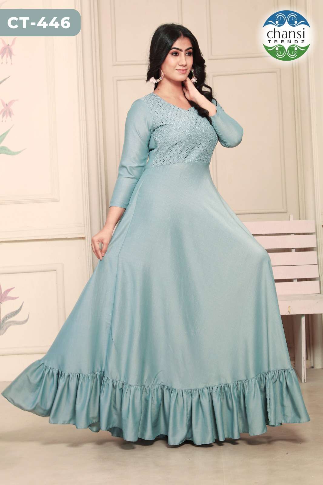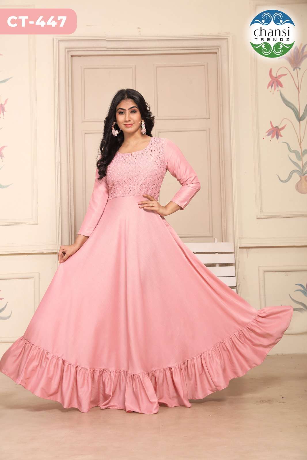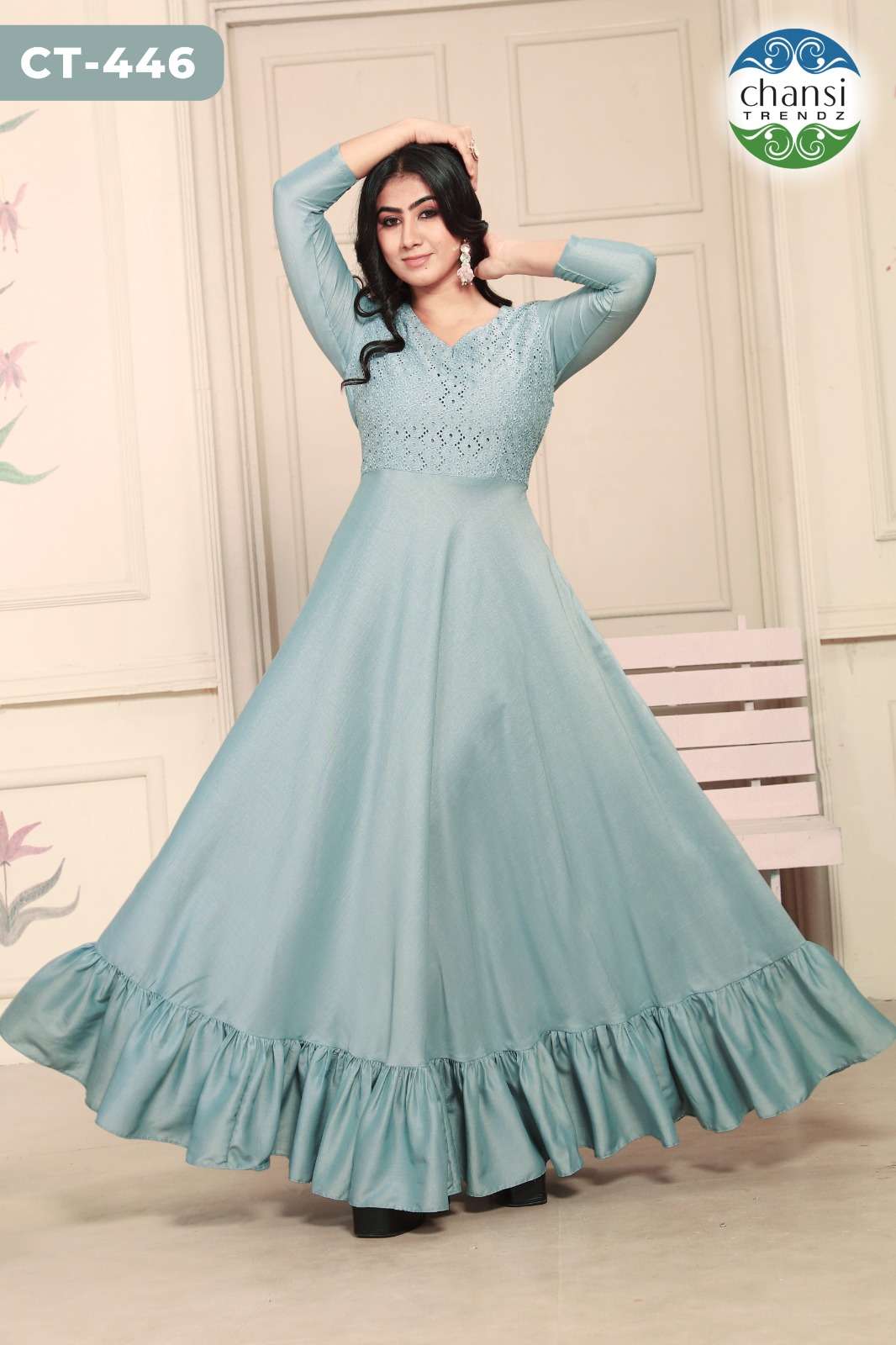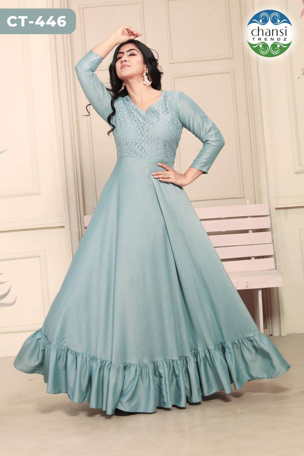 | Catalogue: | Shri Balaji Emporium PADMALAYA CT 445 TO CT 447 Chinon Silk Gown |