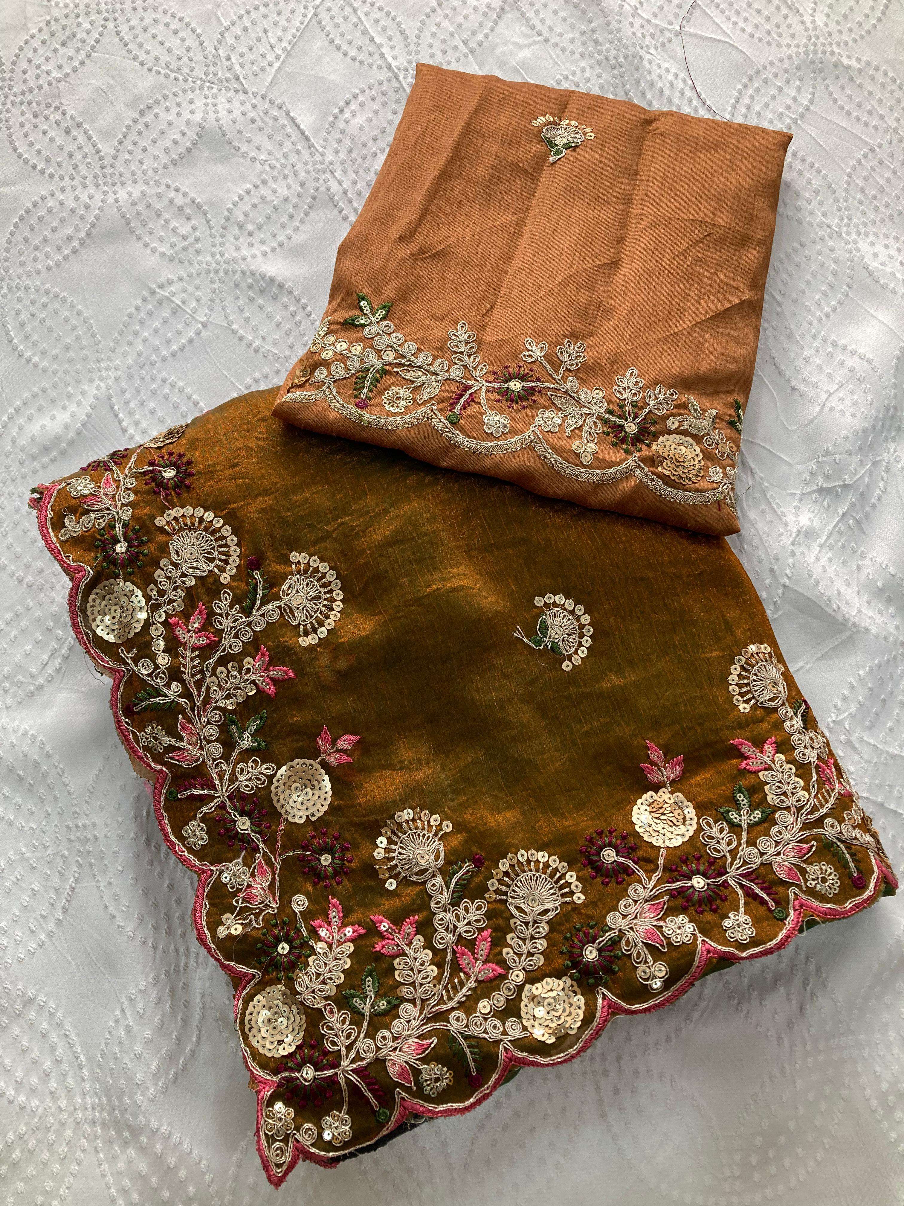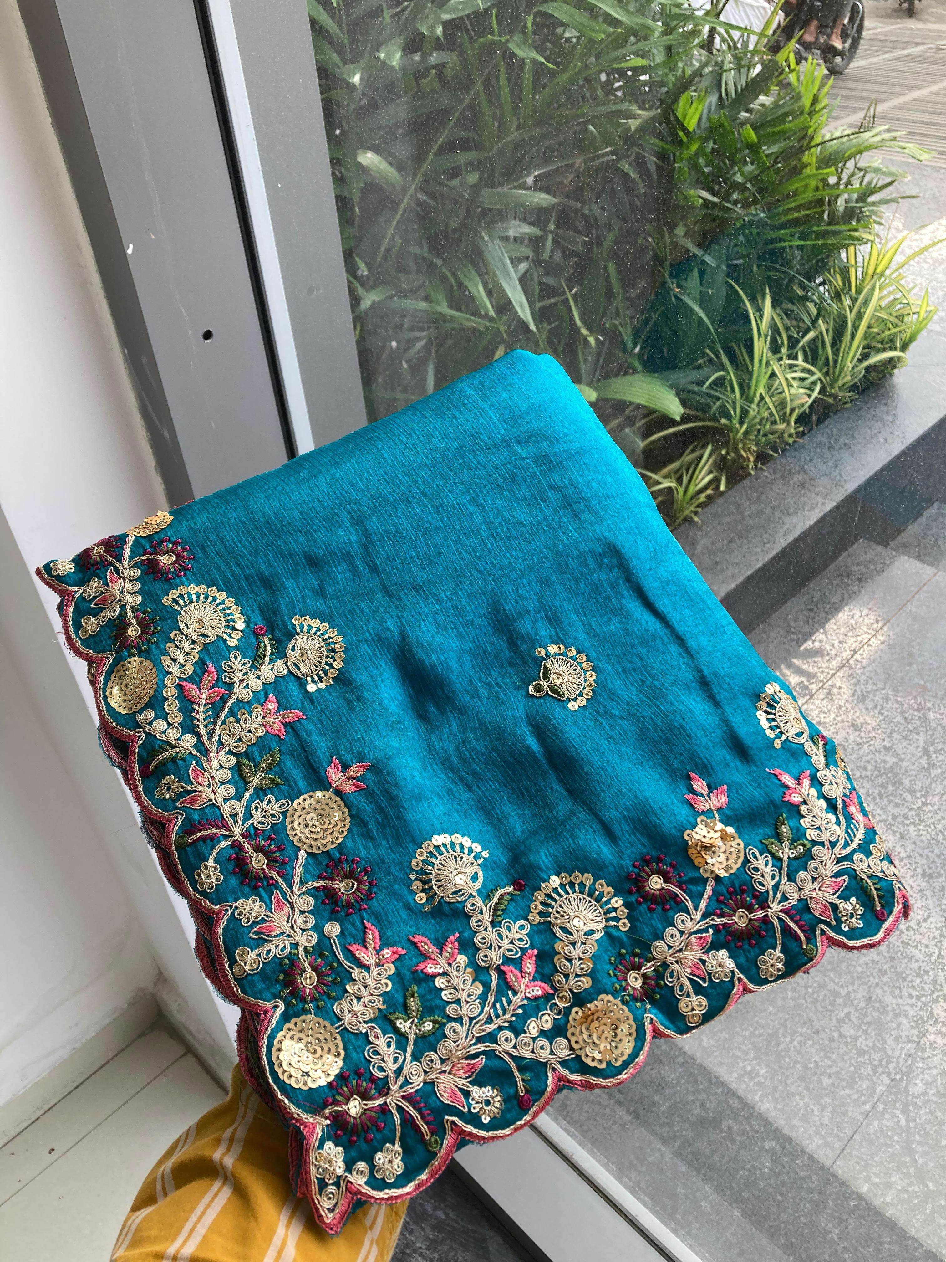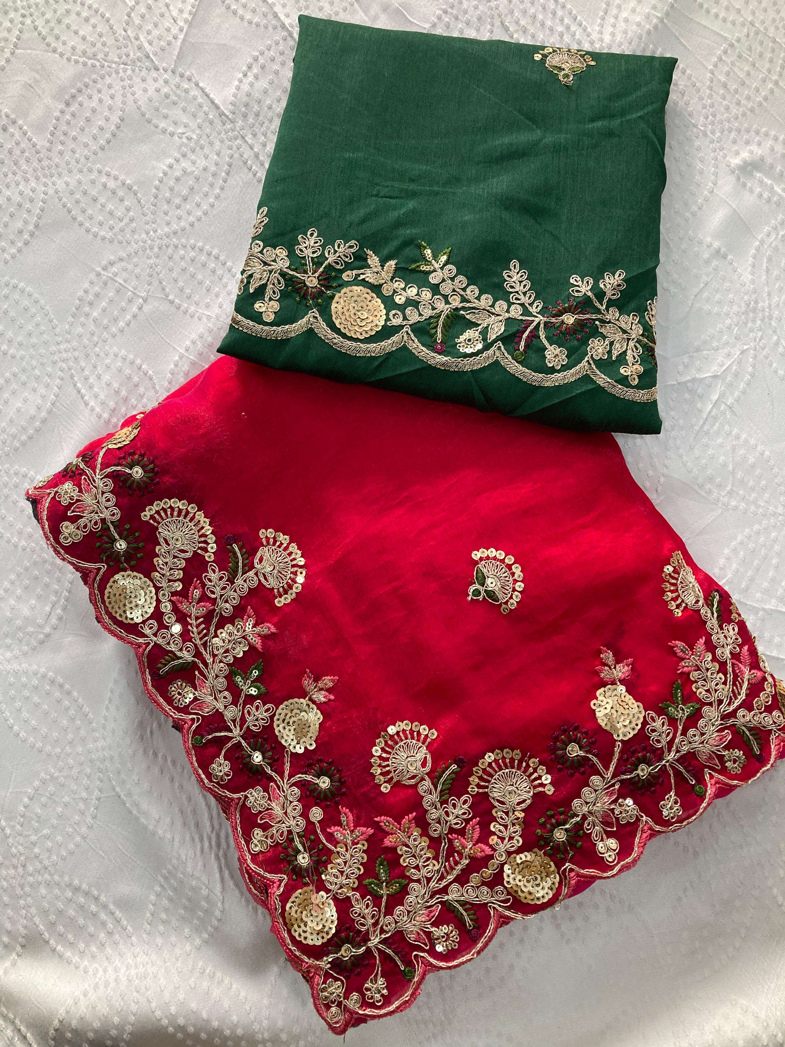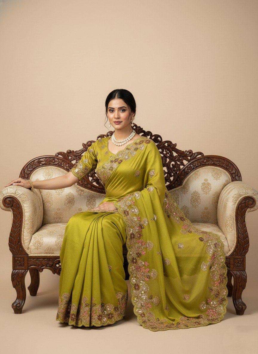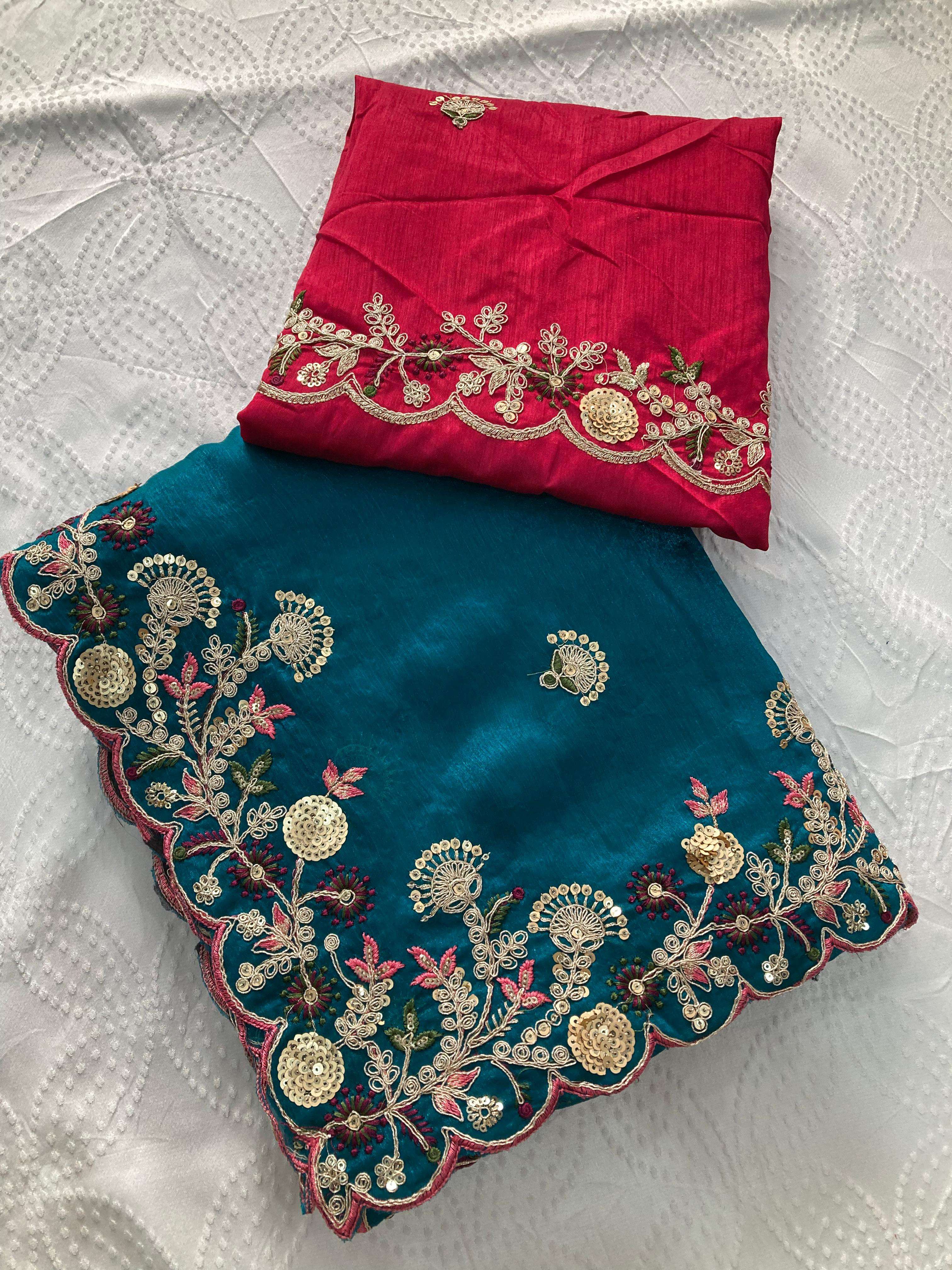 Looking some one for this same colour beautiful Saree for wedding on premium Soft Fendy Chiffon fabric with Embroidery Work Lace Border With Mono banglory Embroidery blouse Peice.
