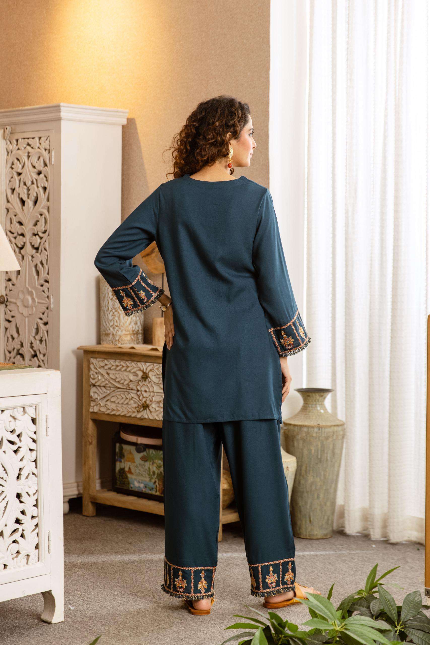 | Catalogue: | Shri Balaji Emporium PATTERN 2 FF Ready to Wear Rayon Embroidered Co ord Set |