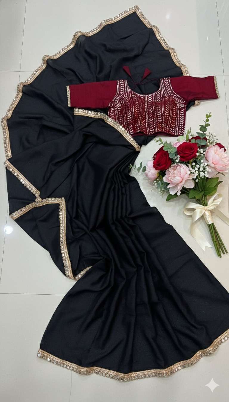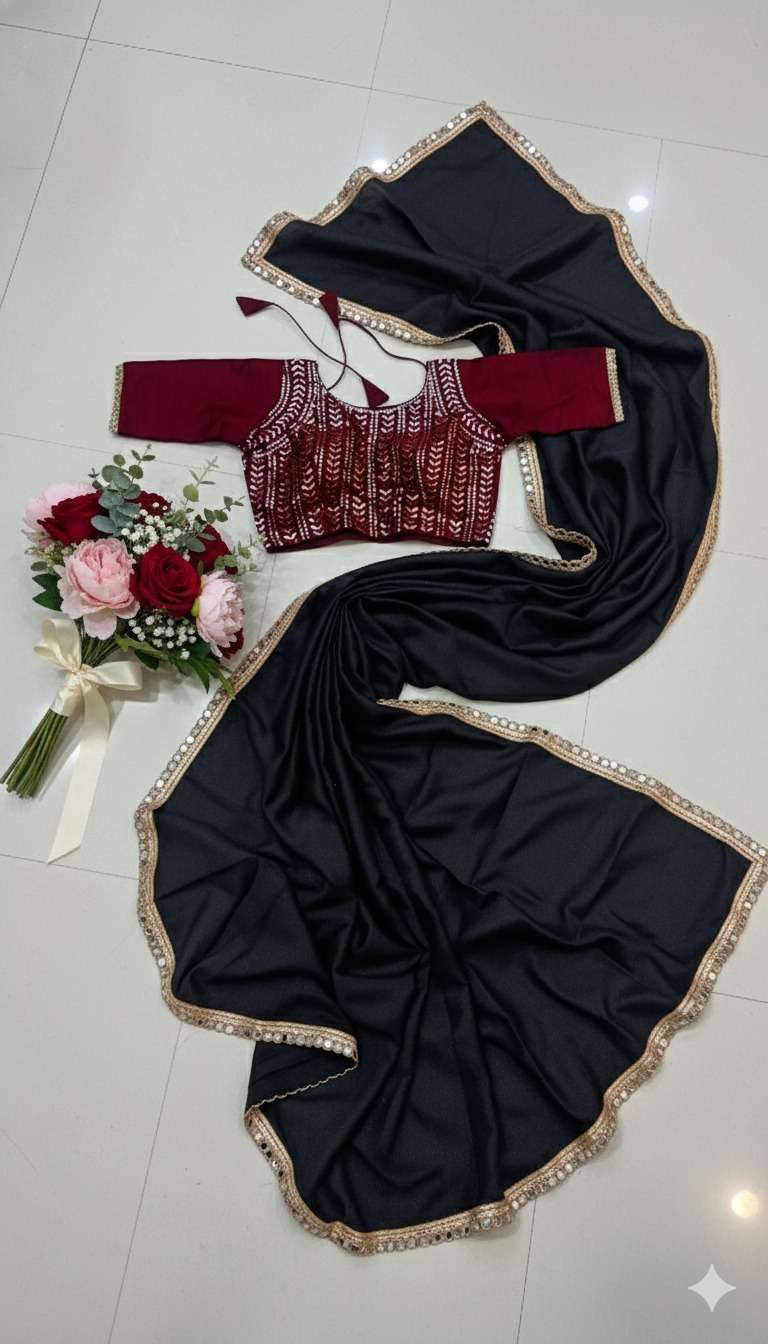 SAREE WORK: PLAIN WITH mirror LACE BORDER