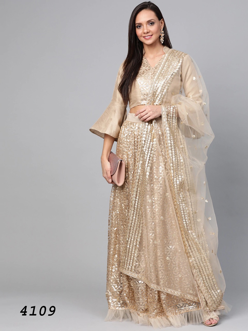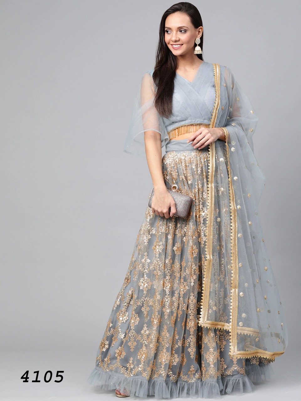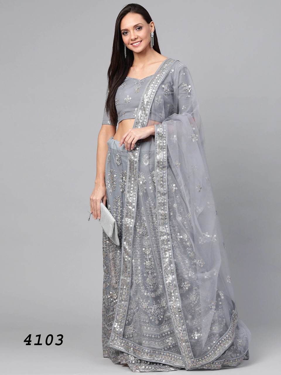 Shri Balaji Emporium Presents 4103 - 4111 Series Soft Net With Sequin Work And Thread Zari Work Fancy Party Wear Lehenga Choli Collection
