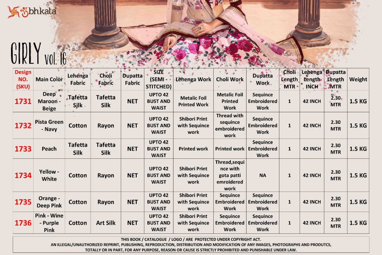 Shri Balaji Emporium Presents Girly Vol-16 1731-1736 Series Fancy Designer Silk And Cotton Attractive Event Wear Lehenga Choli Collection