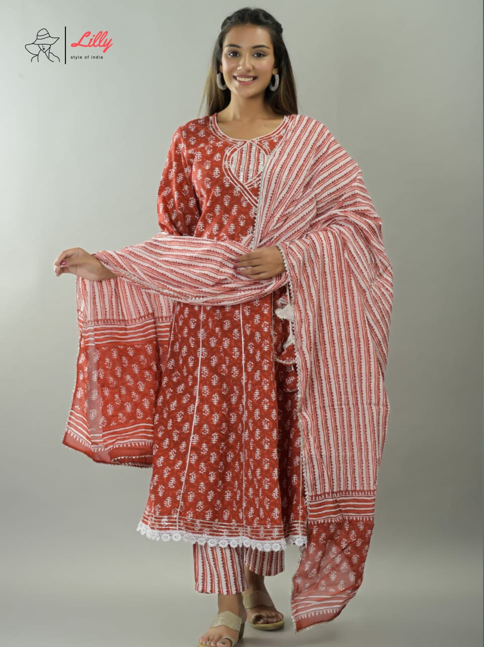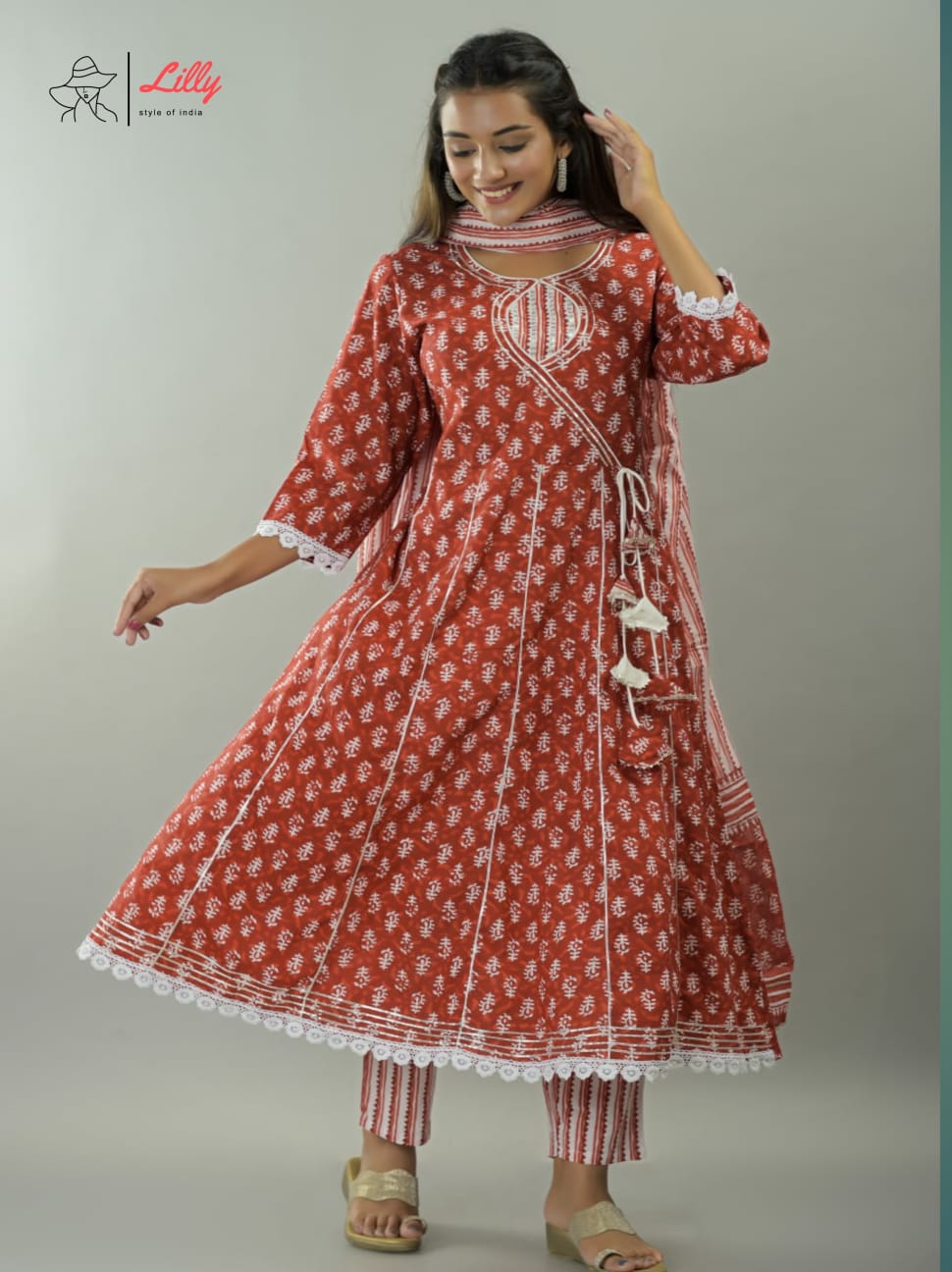 Shri Balaji Emporium Presents Pure Heavy Mal Cotton With Extra Accessories And Gota Less Patti Work Fancy Anarkali Suit Collection
