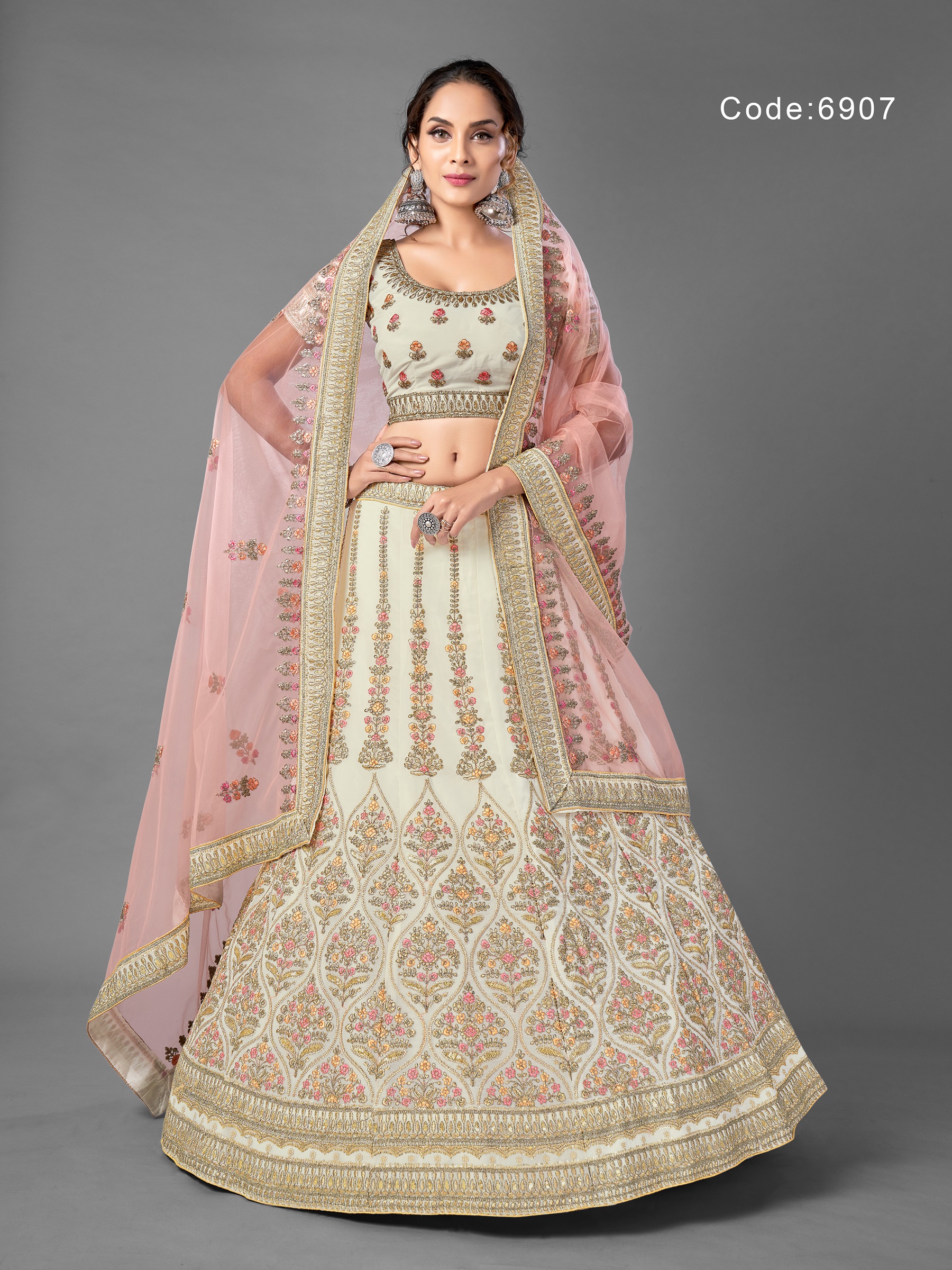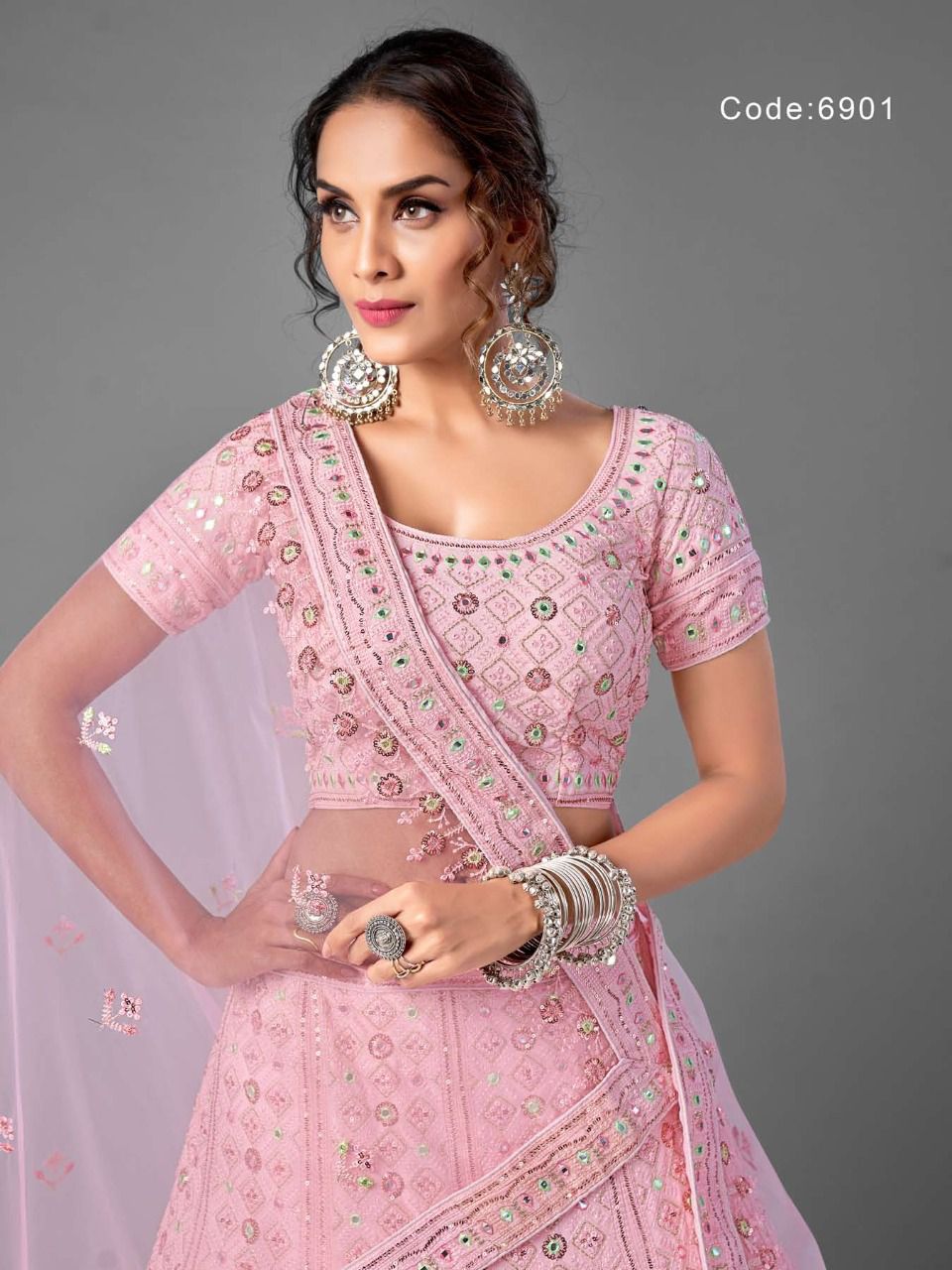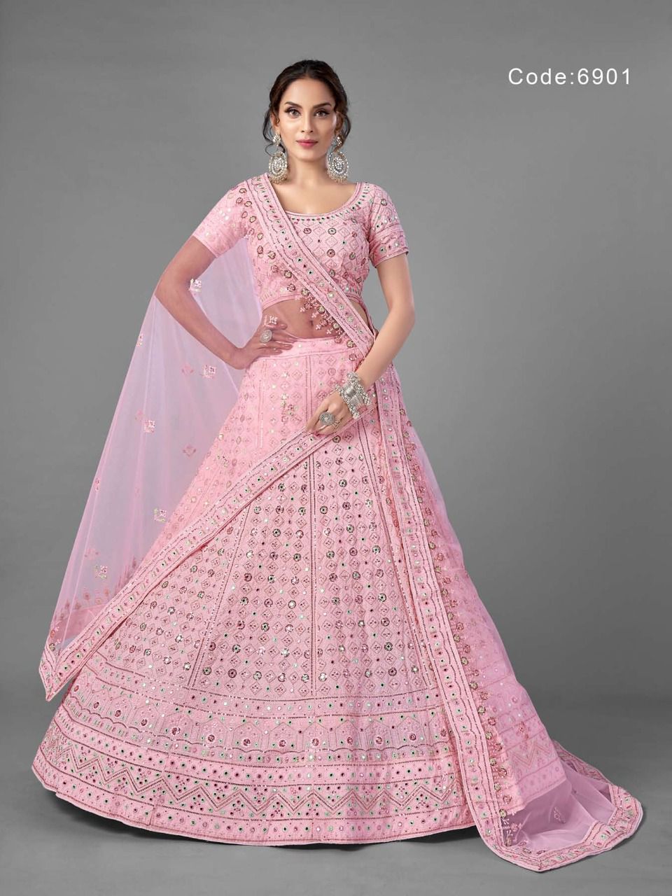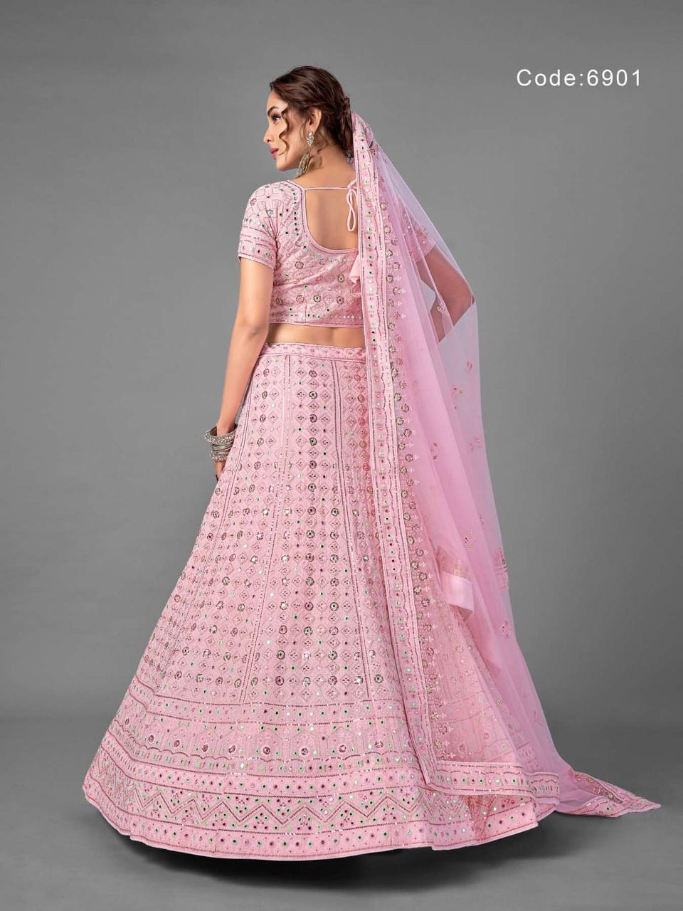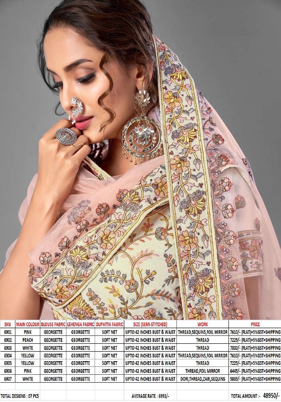 Shri Balaji Emporium Presents Vol-17 6901 - 6907 Series Georgette With Soft Net Thread Sequin And Mirror Work Fancy Wedding Wear Lehenga Choli Collection