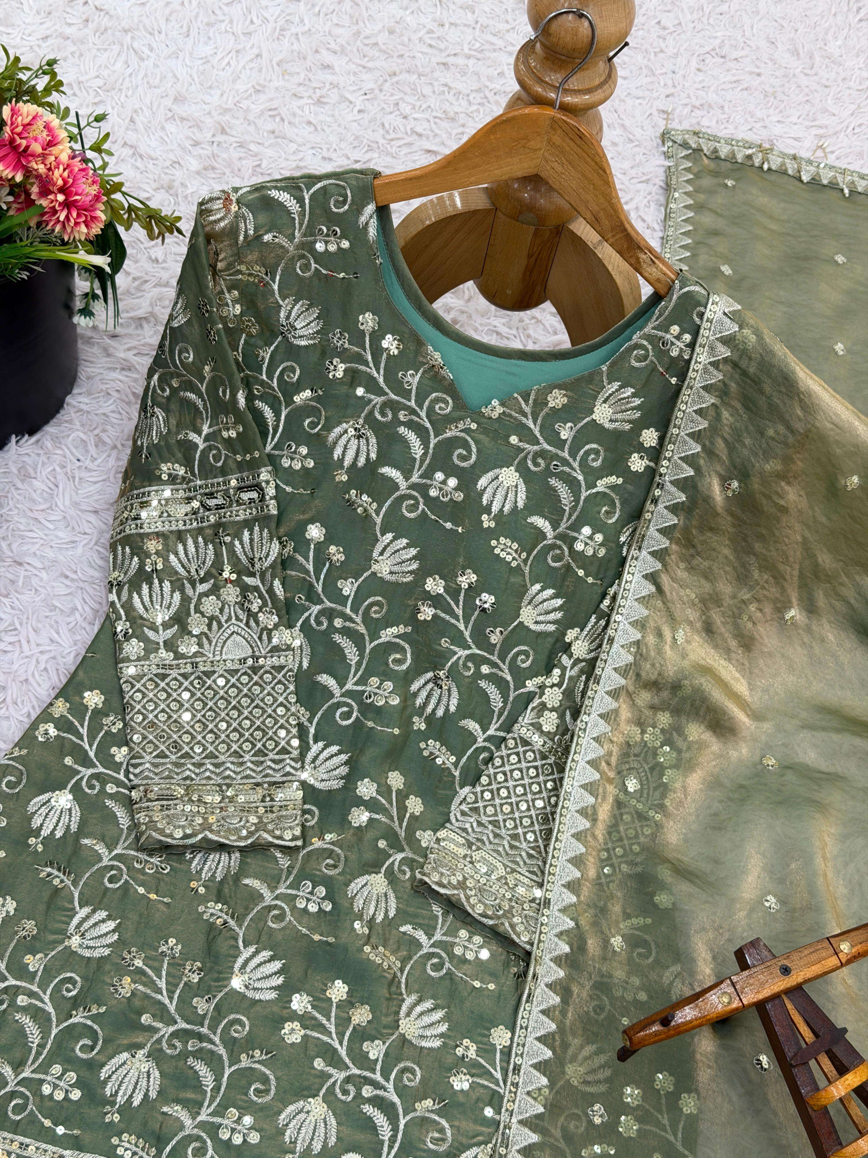 Top Fabric :Pure GMY SILK With Heavy Embroidery Sequence Work With Full Sleeve
