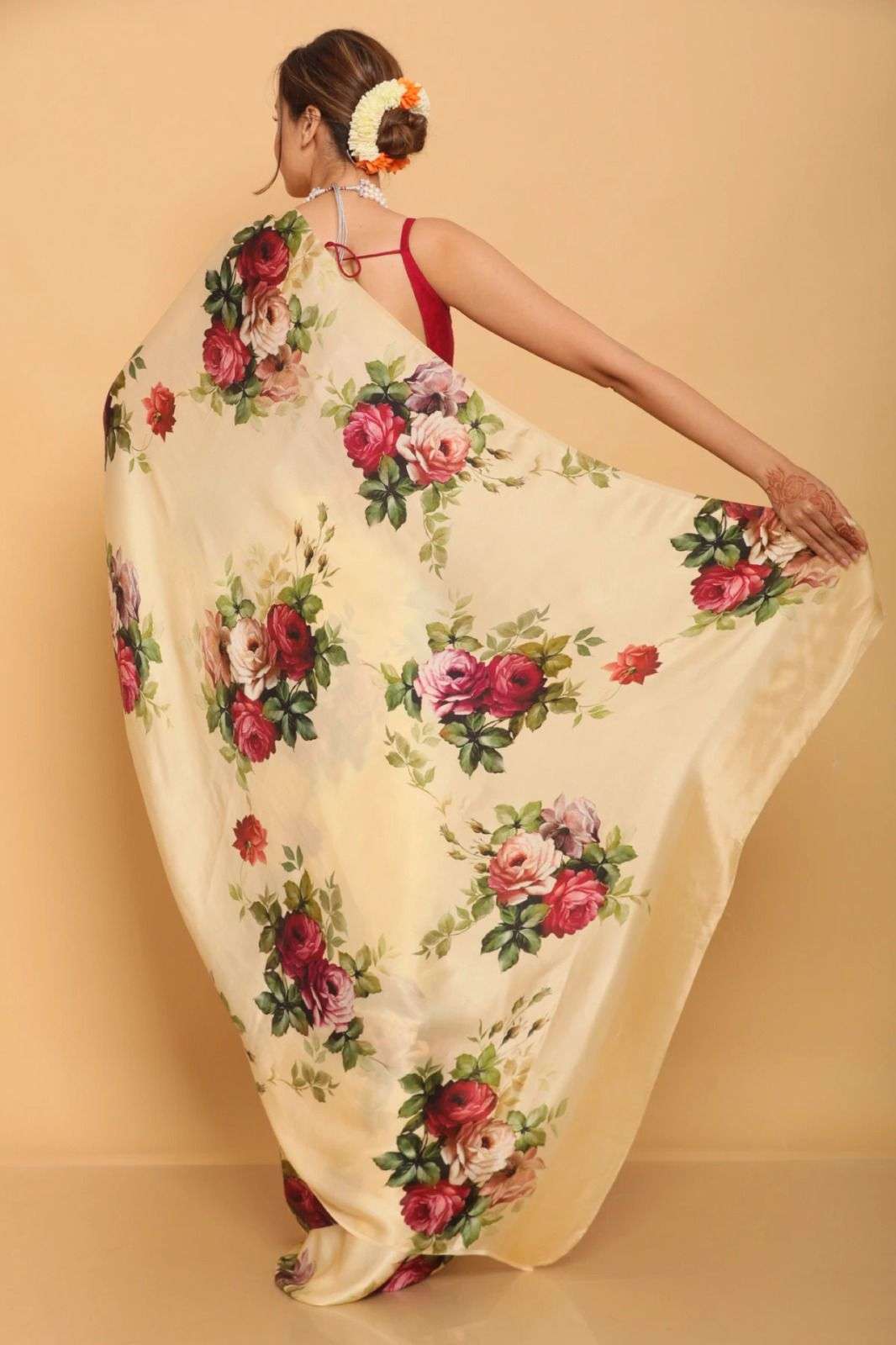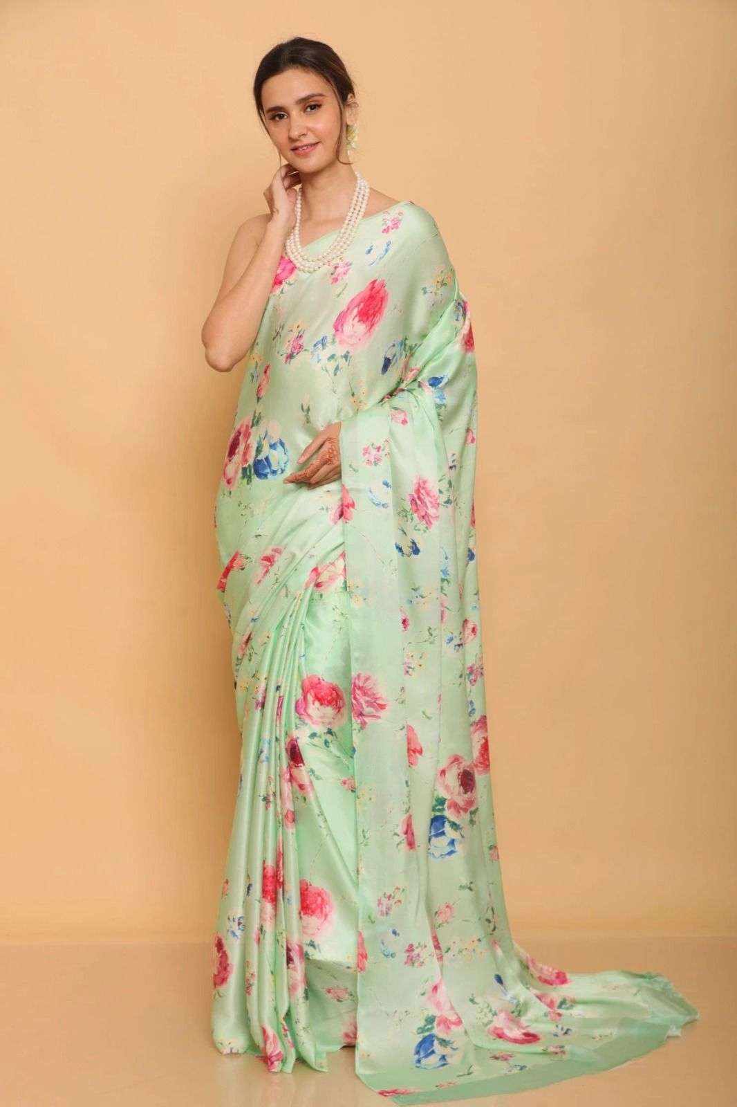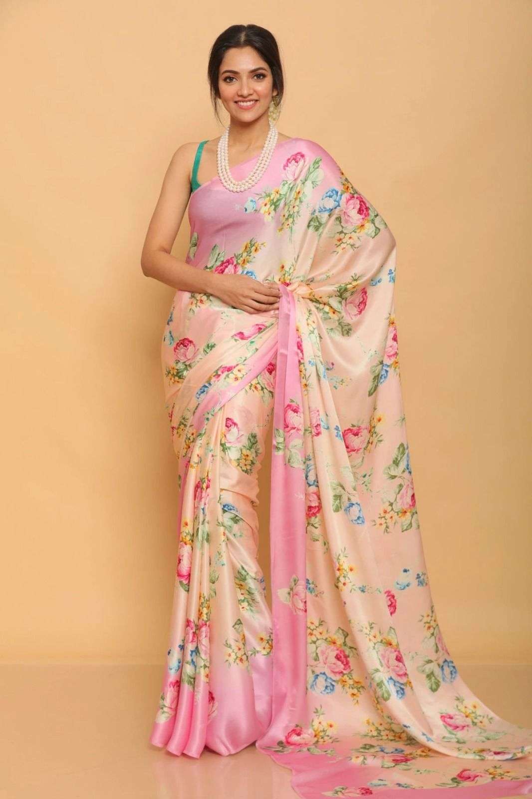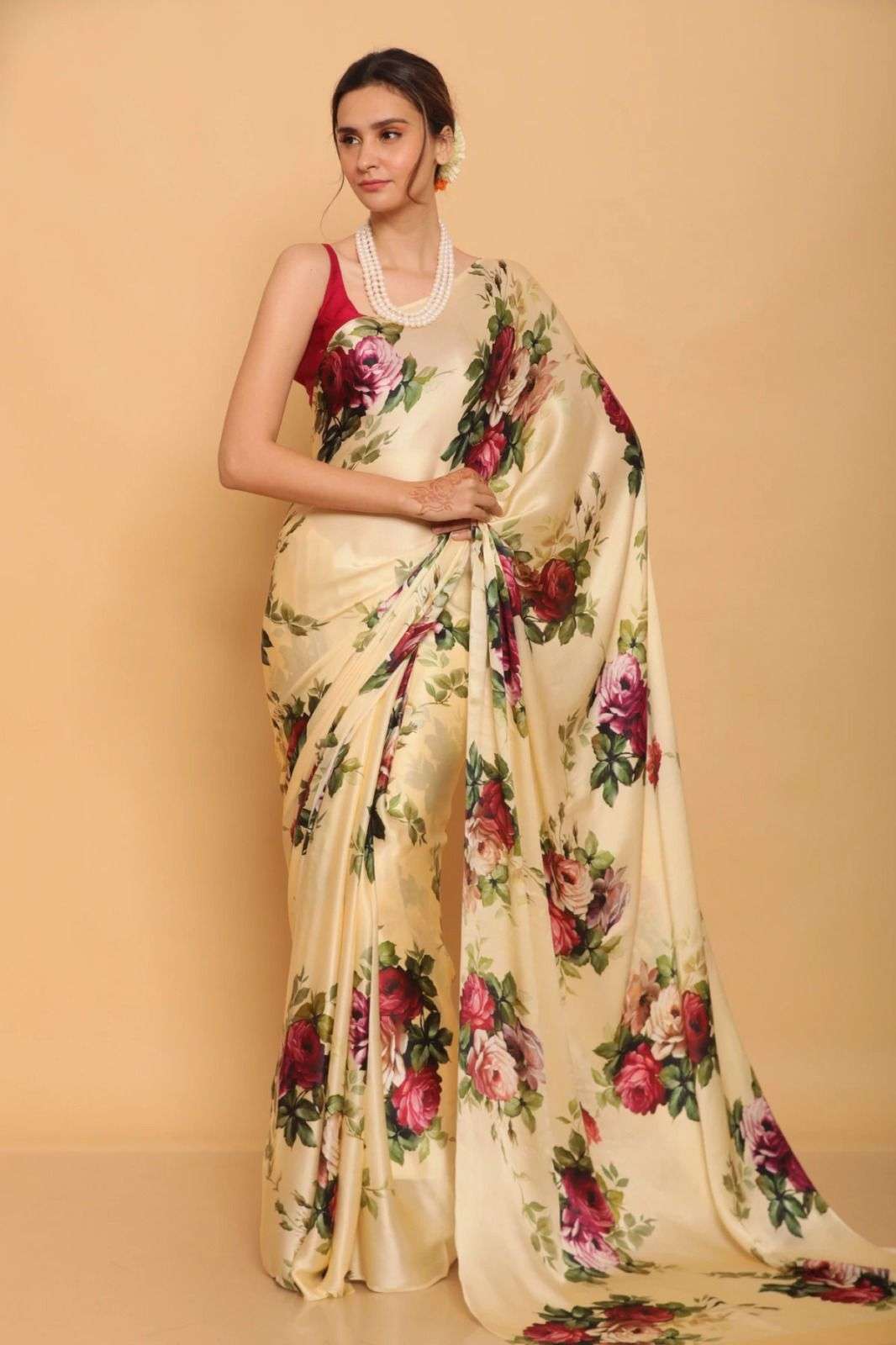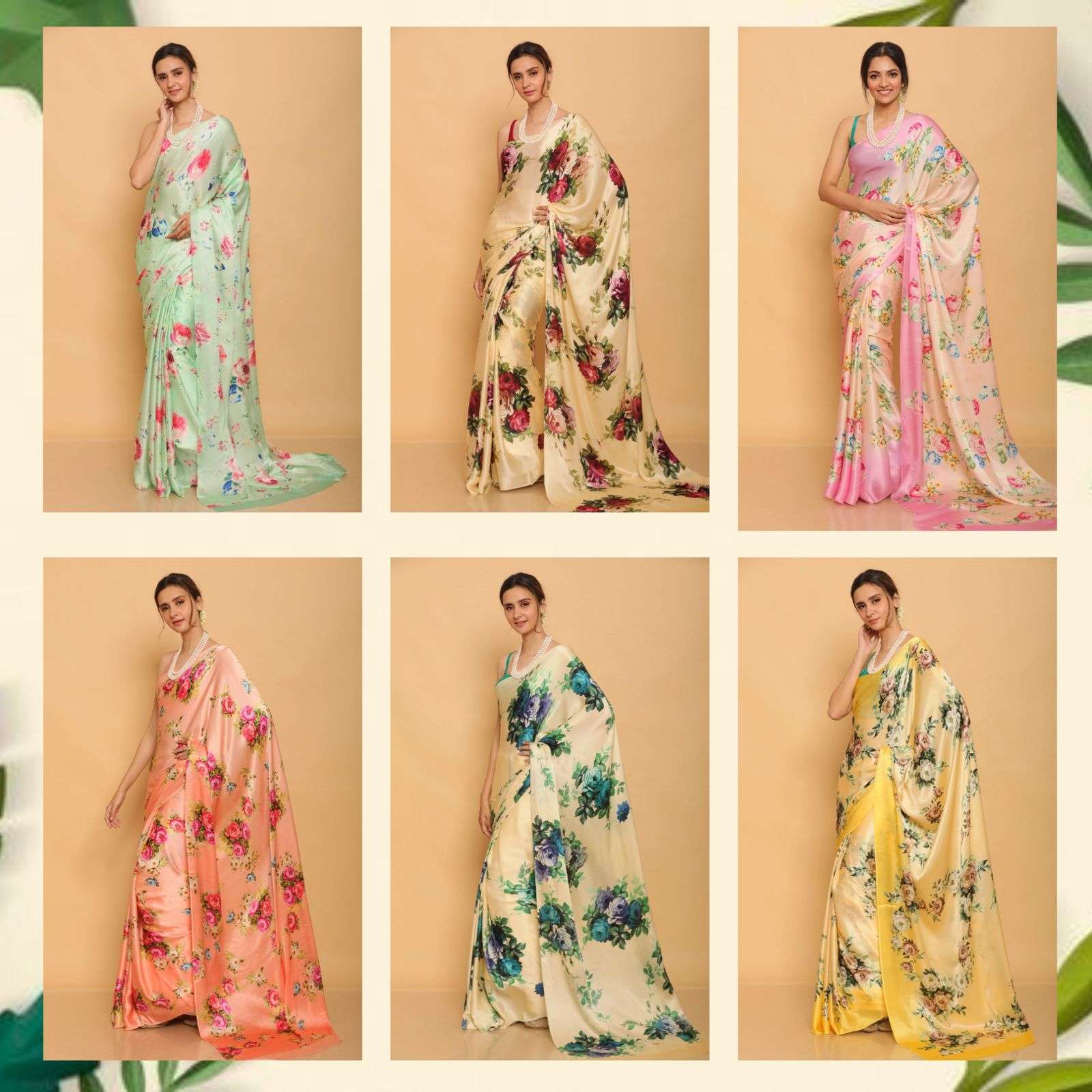 Collection of Satin,Pure Satin Sarees in Floral prints.