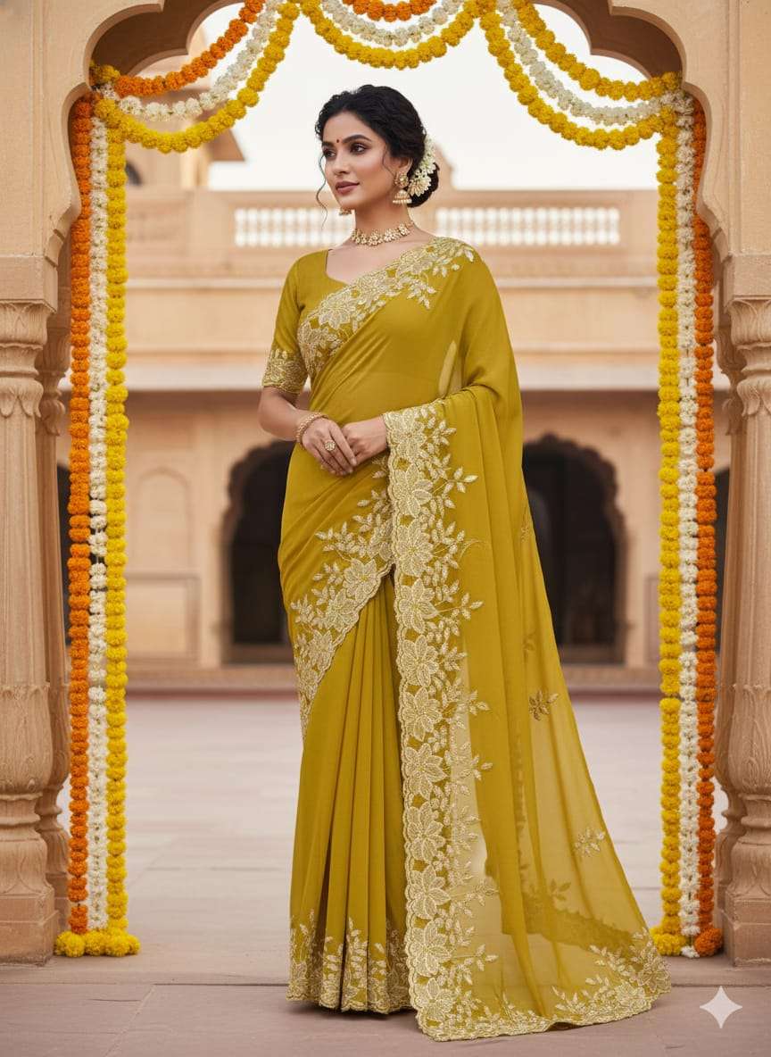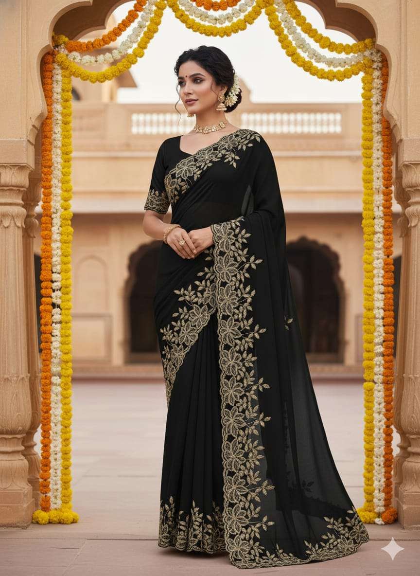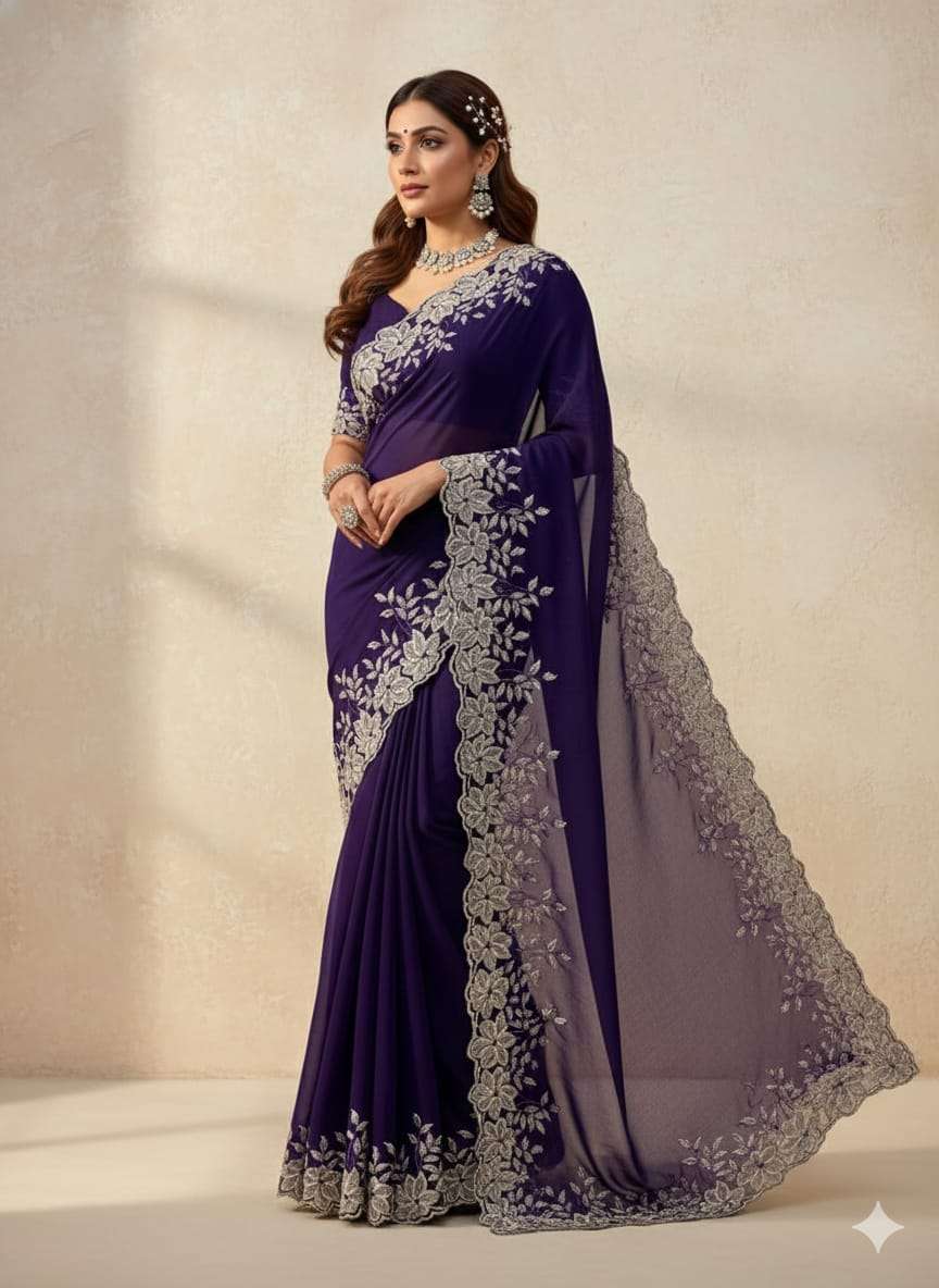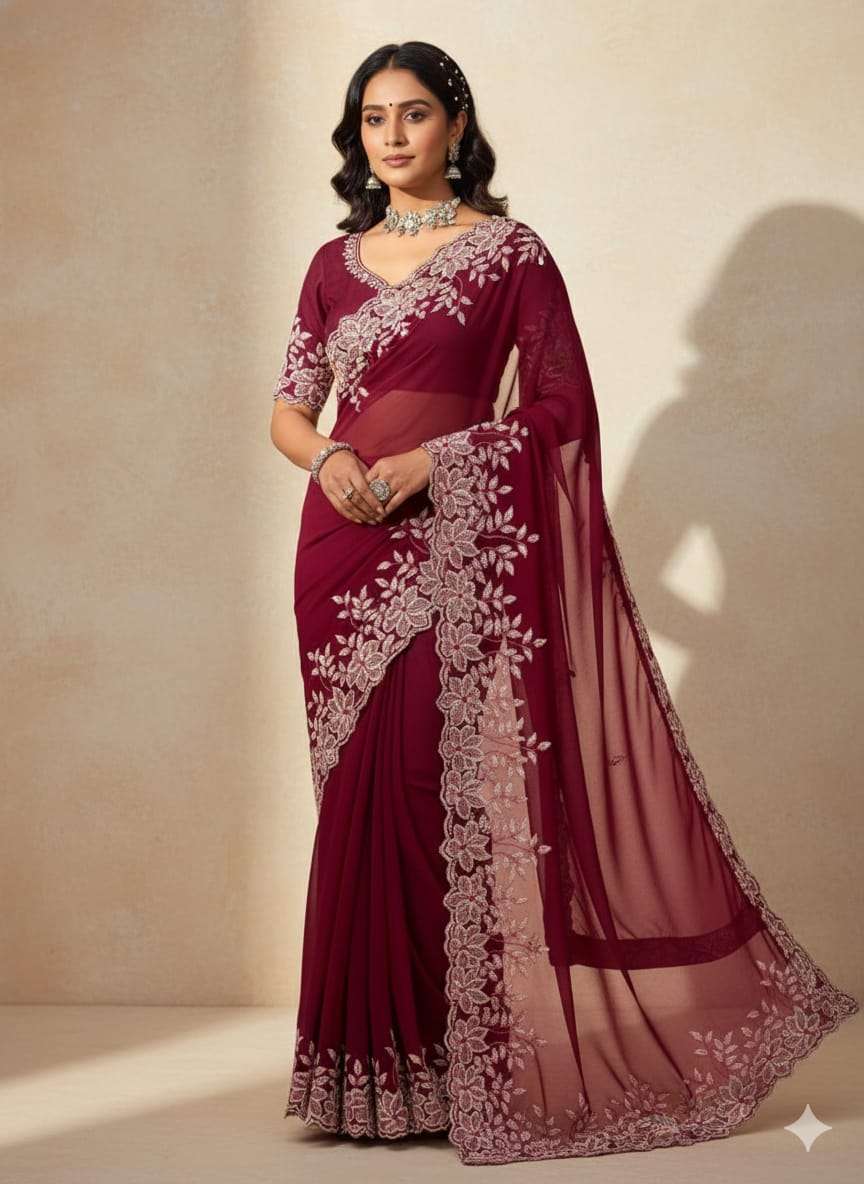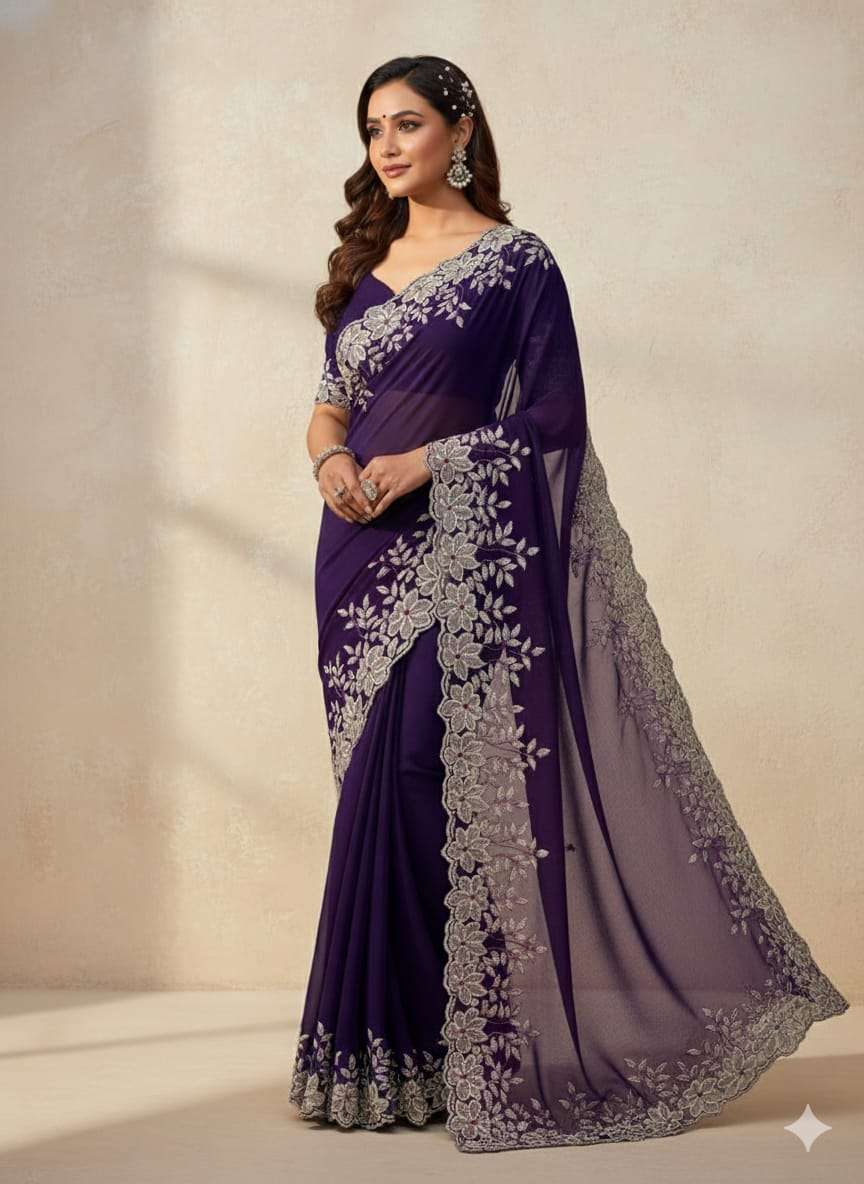 Quality-star georgett Embroidery all over saree.