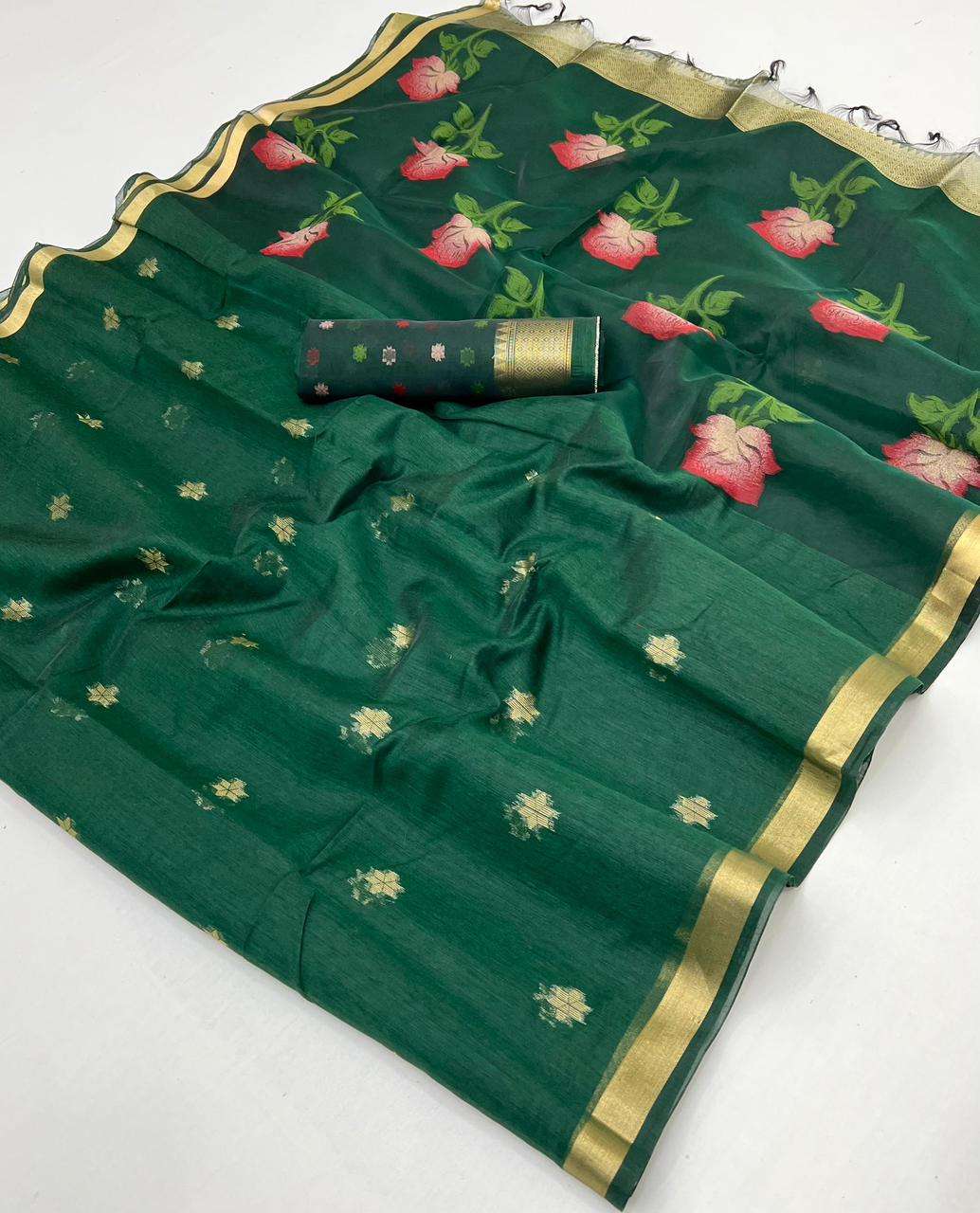Saree : Munga Cotton Handloom Weaving - Organza Weaving Pallu