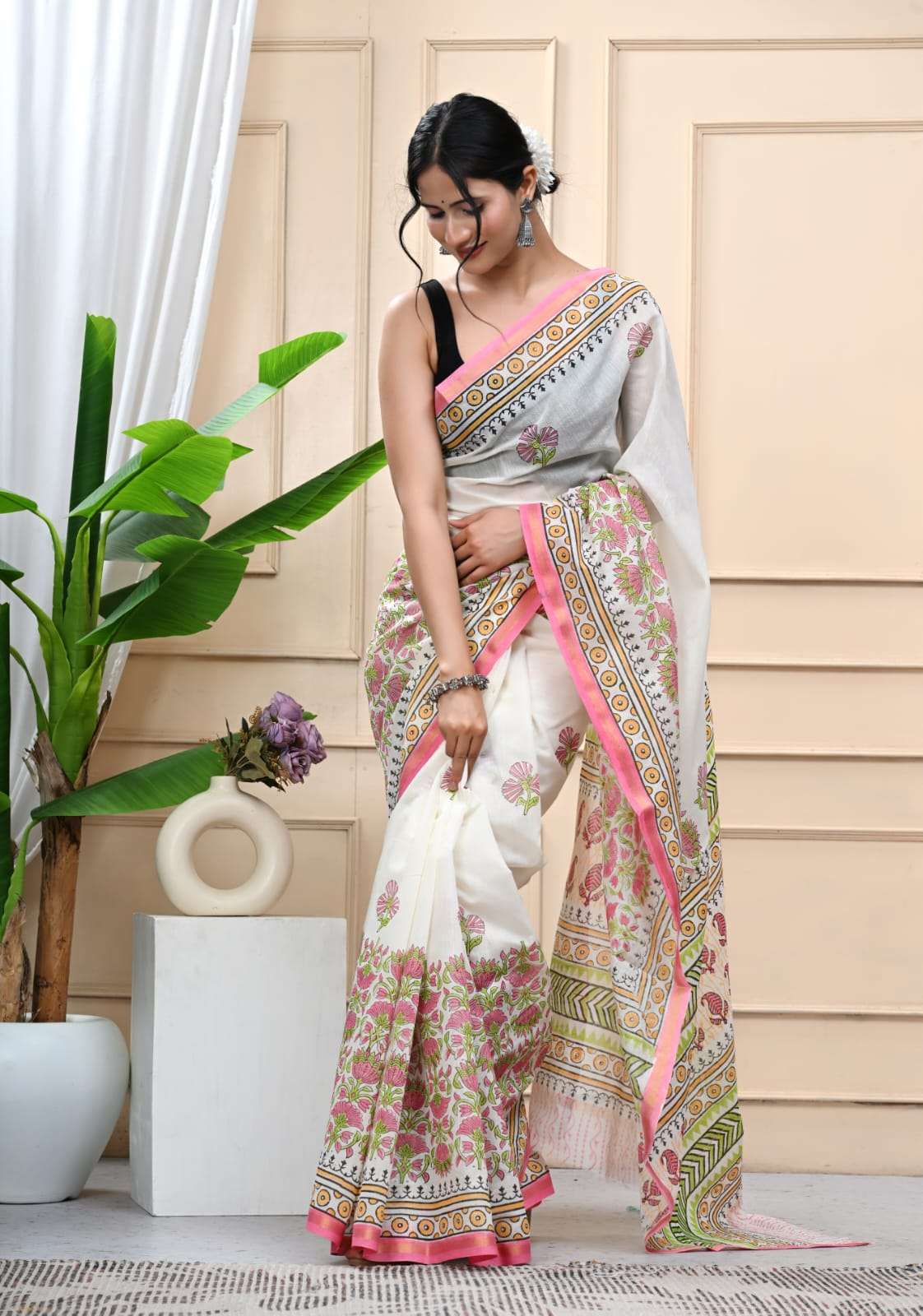 | Catalogue: | Shri Balaji Emporium RF 14105 Hand Block Printed Chanderi Silk Saree |