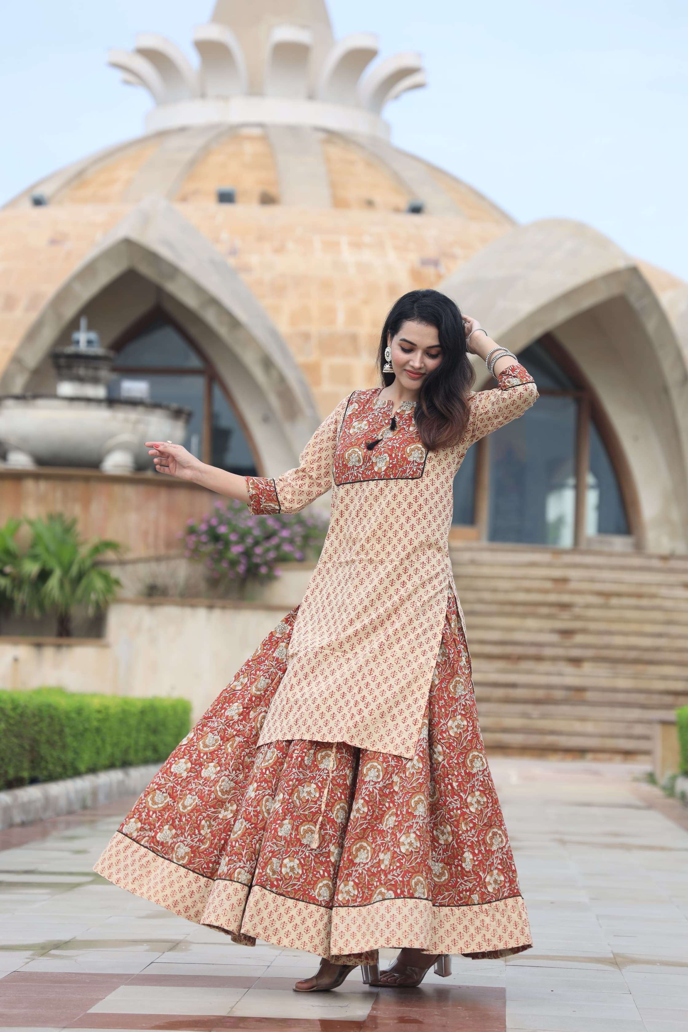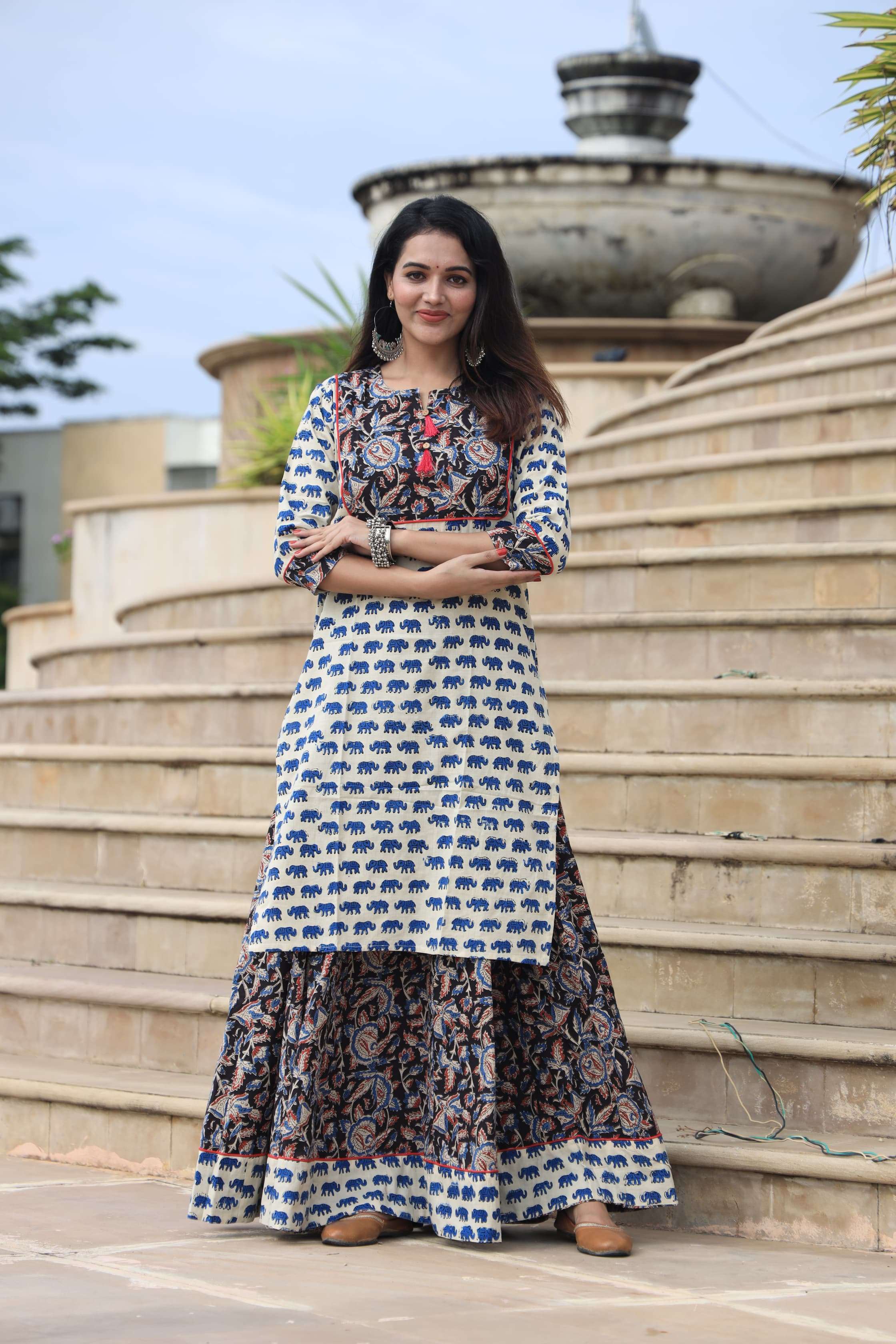 | Catalogue: | Shri Balaji Emporium RF 17851 Handblock Printed Pure Cottom Kurti with Skirt |