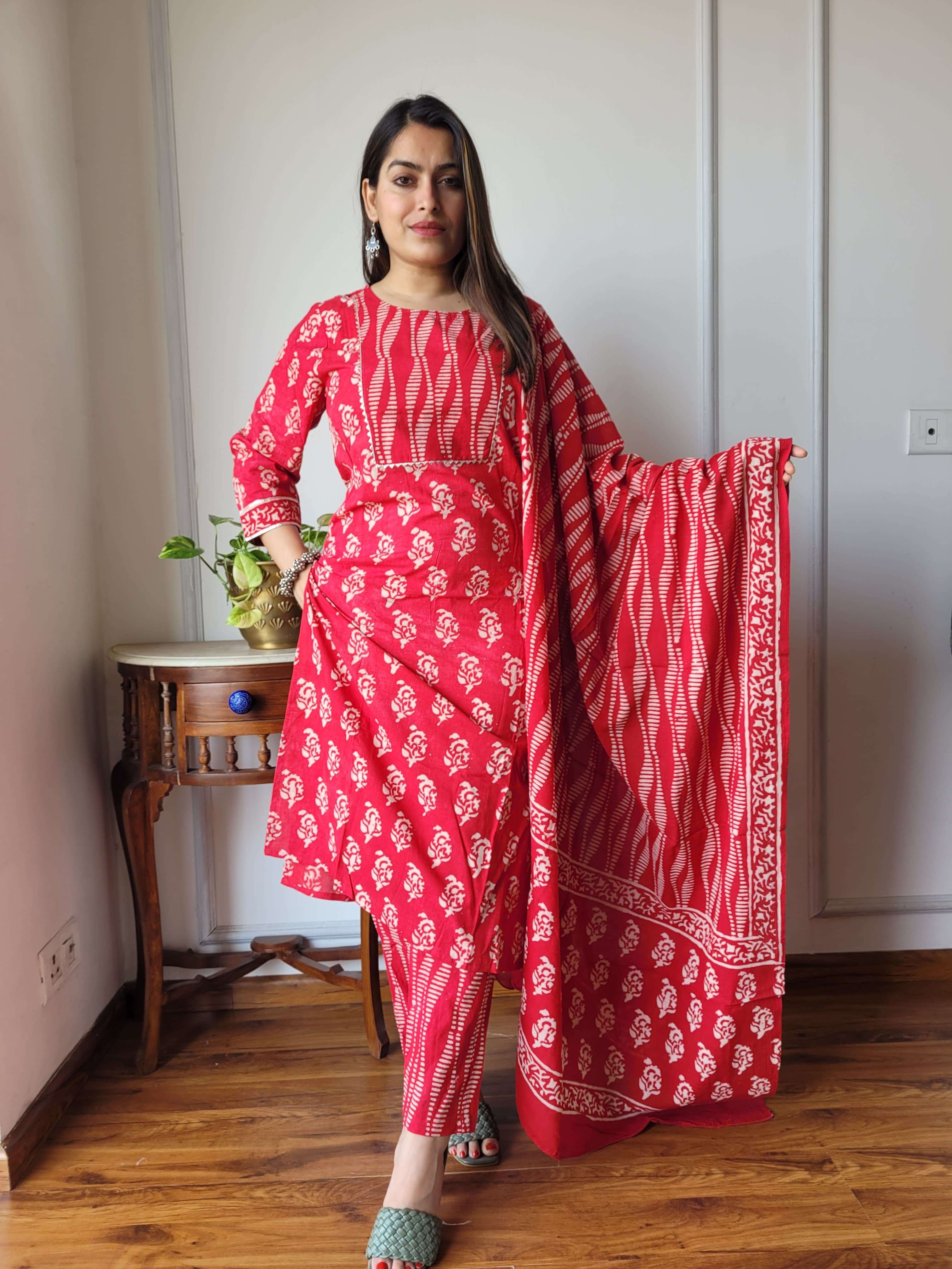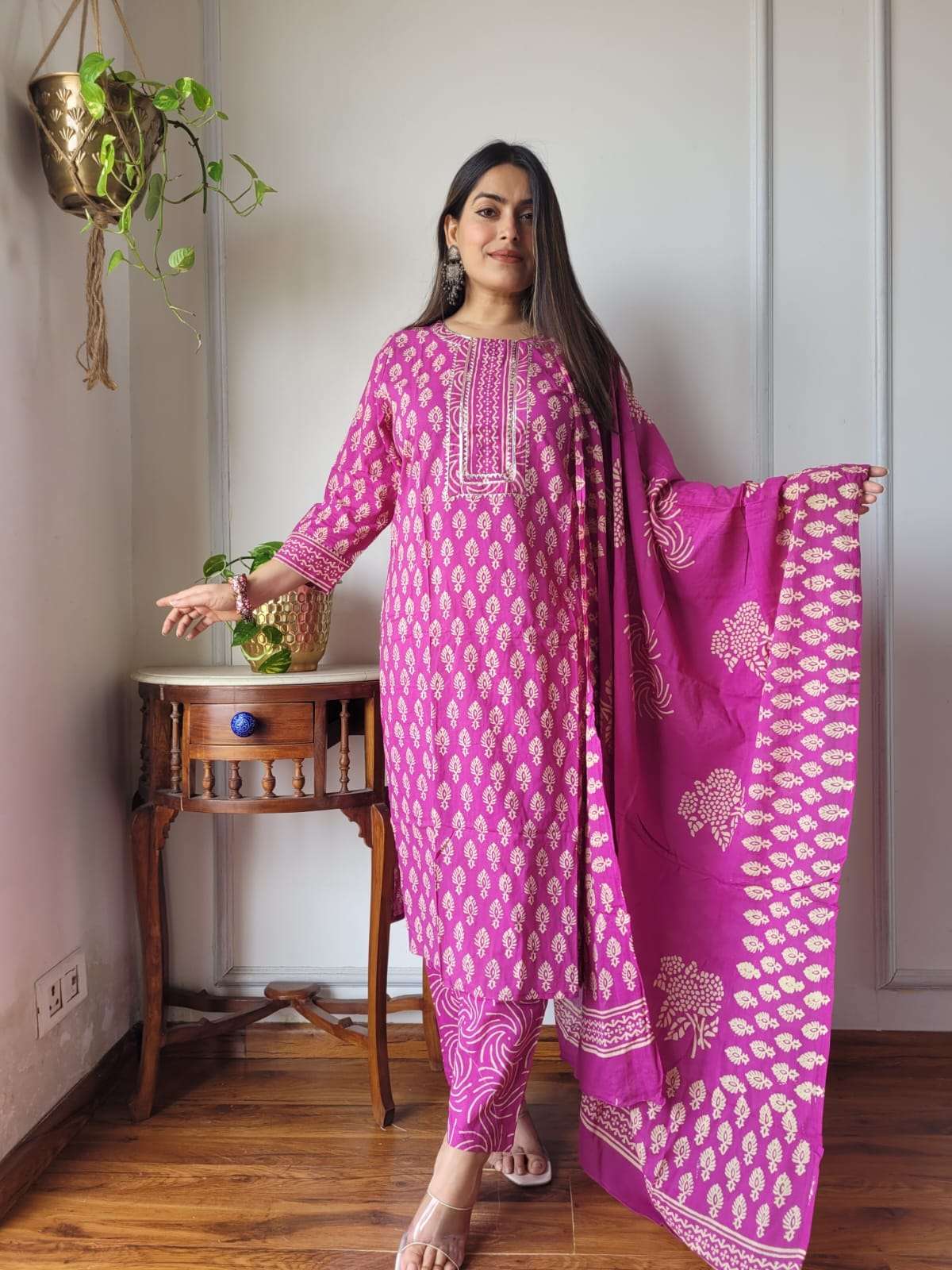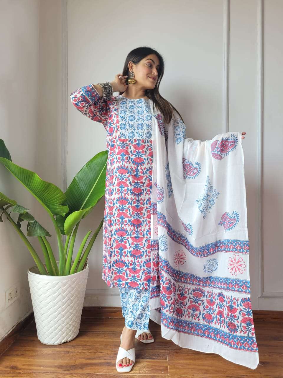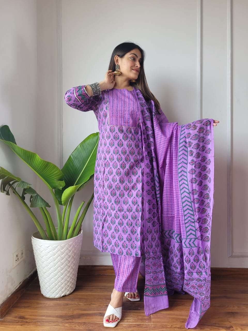 All New Exclusive Collection of Hand Block Printed "Stitched" Cotton Suits With Cotton Dupatta in Beautiful Colours