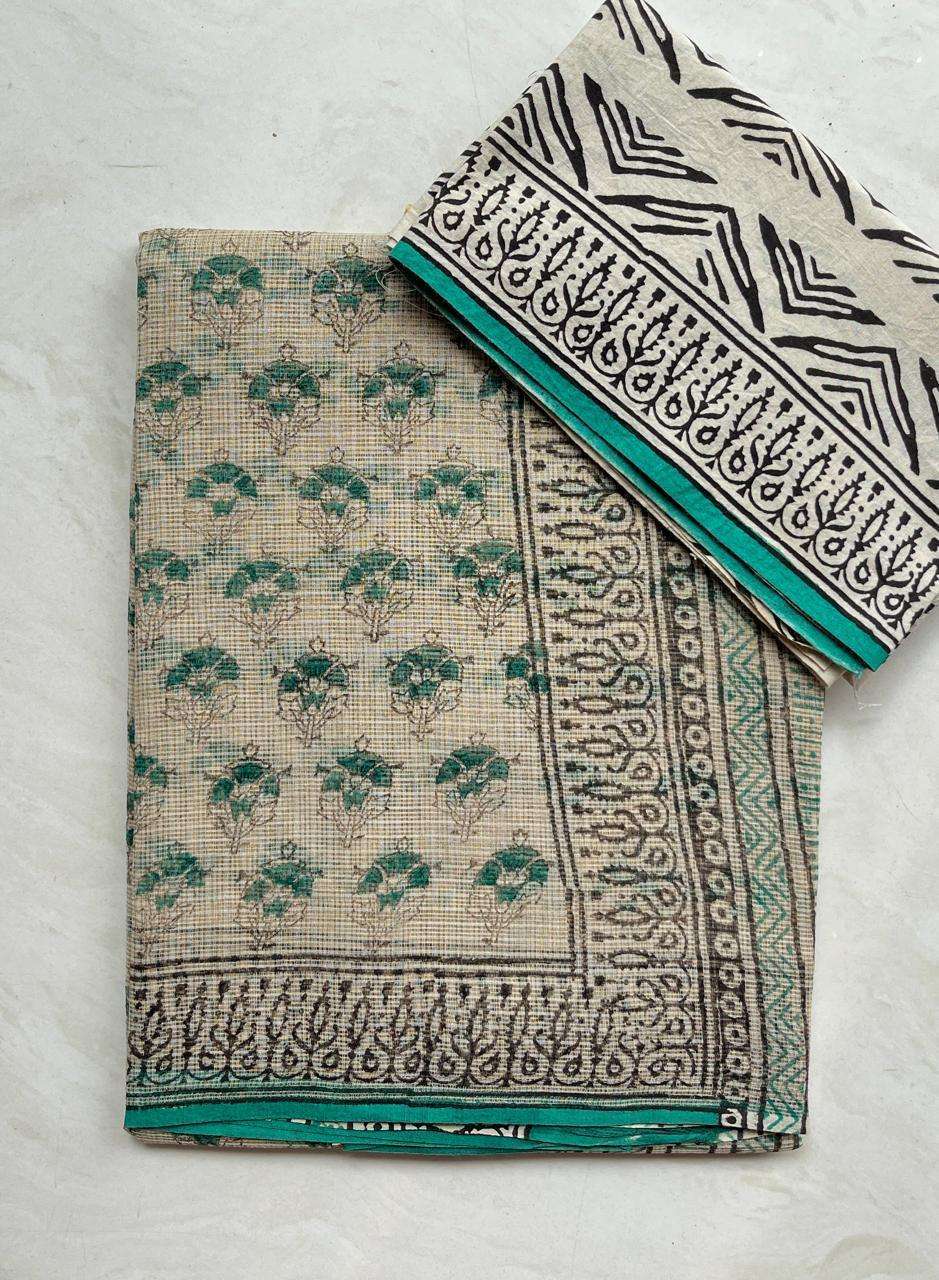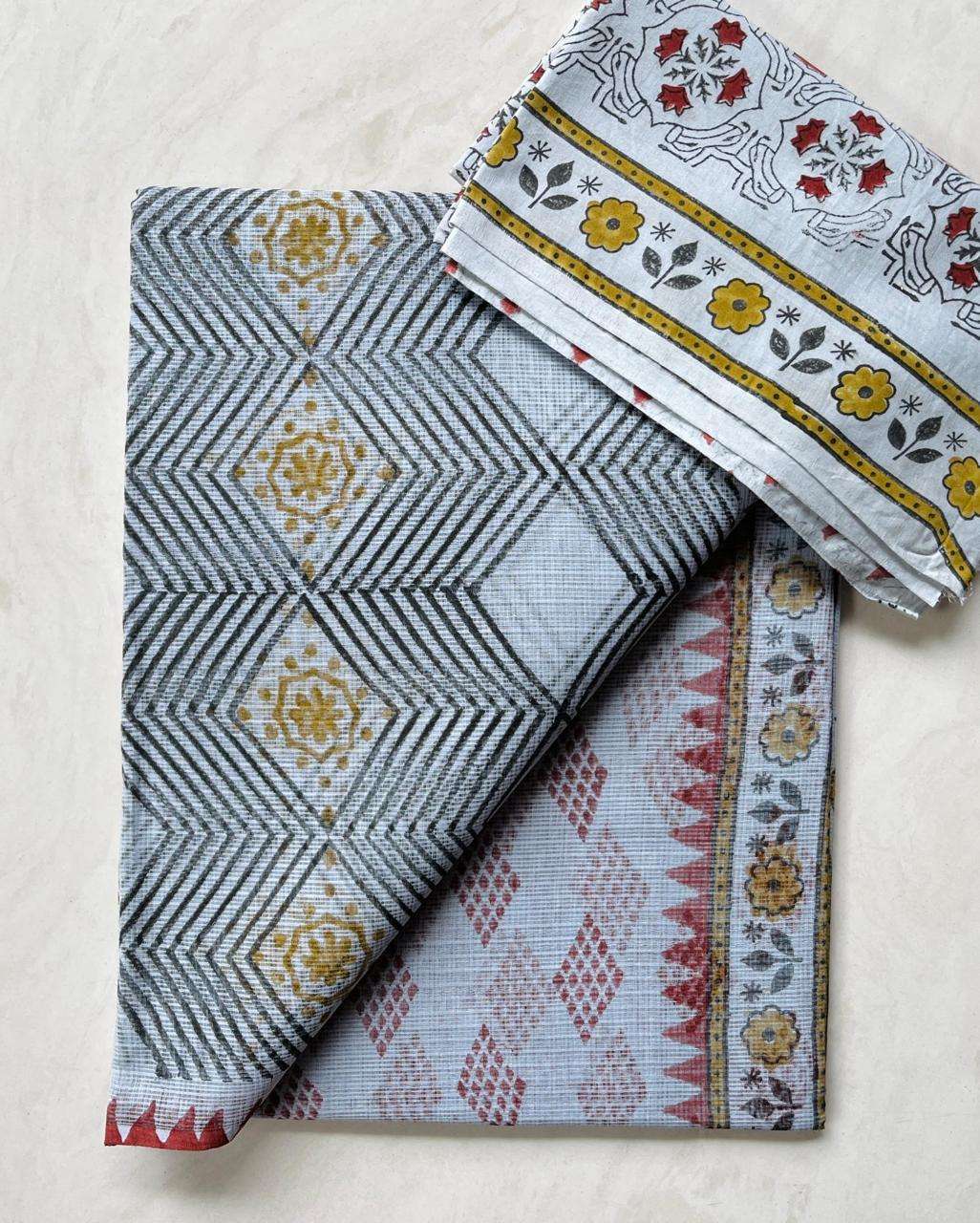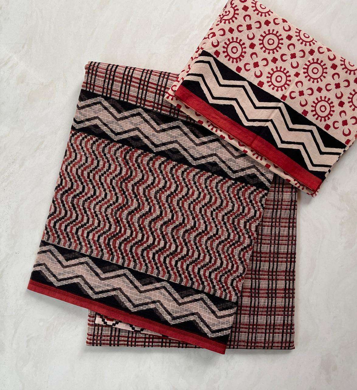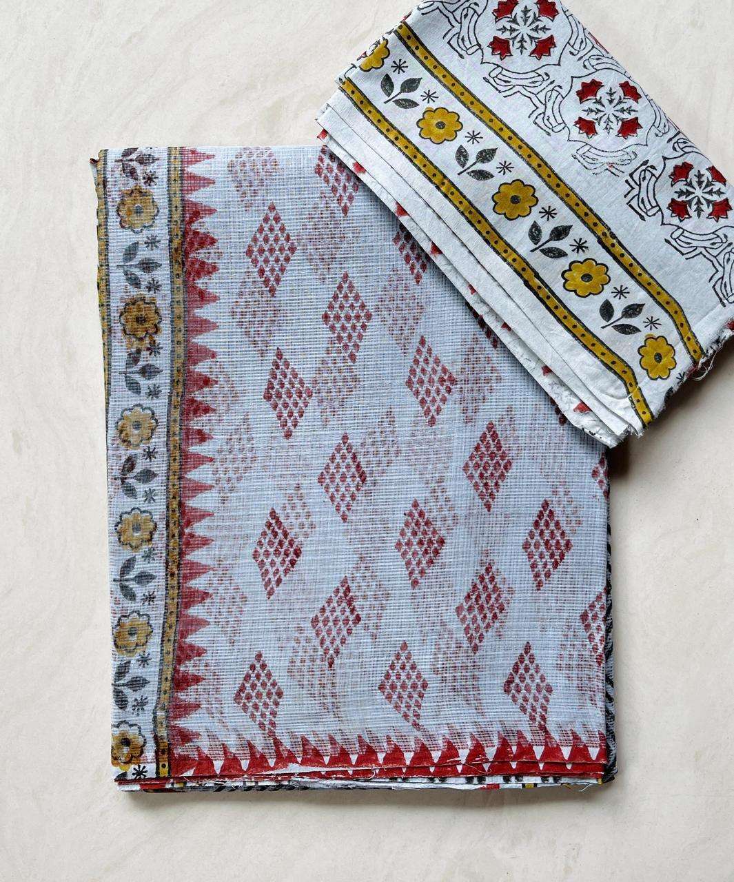 Hand block printed traditional designs n multi colour combination kota Doria sarees with blouse