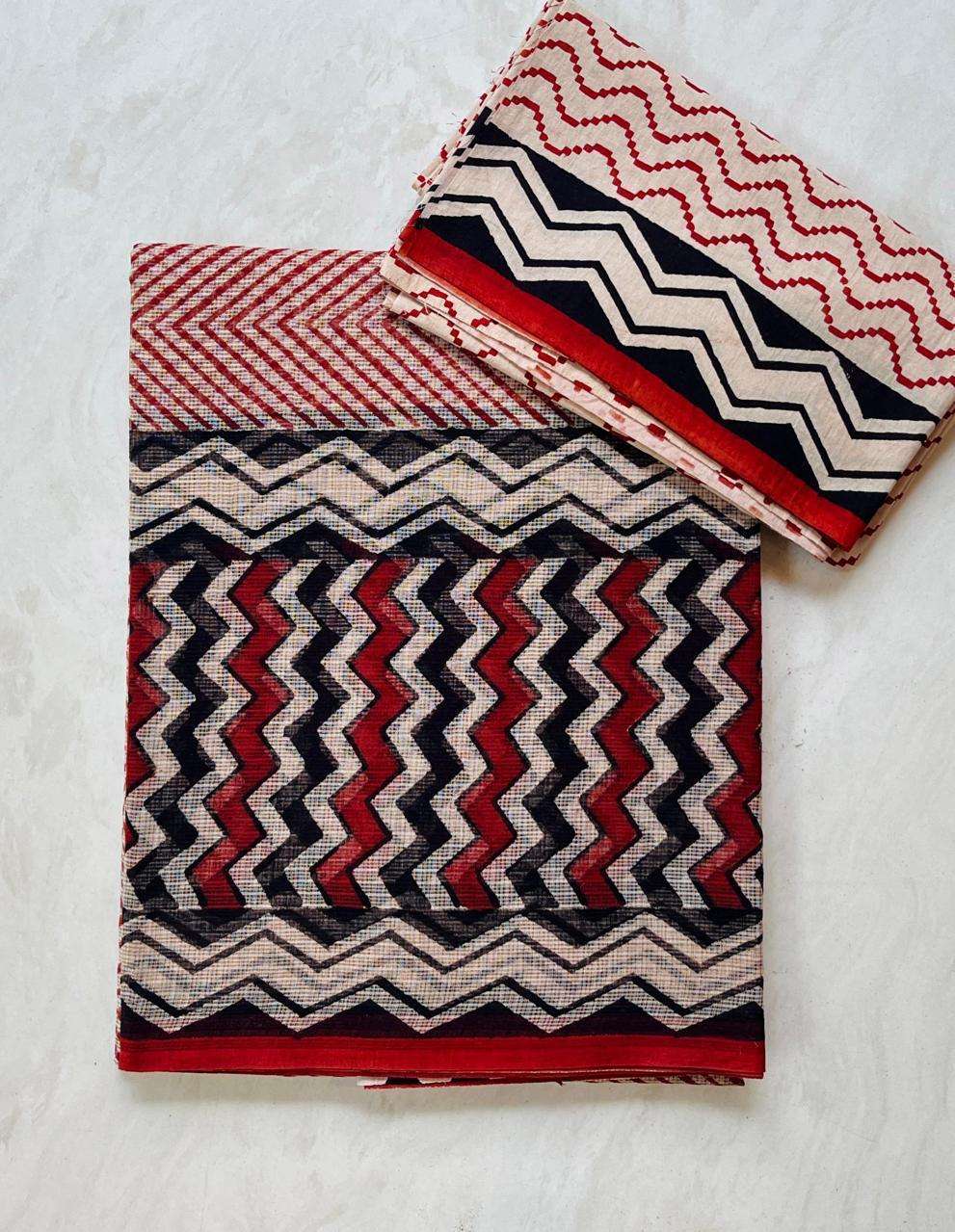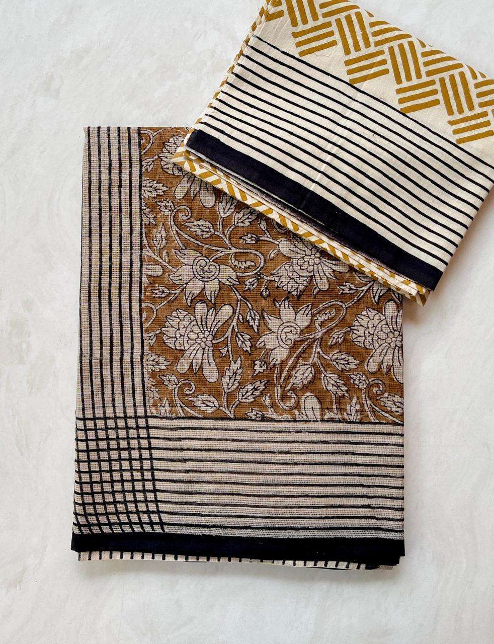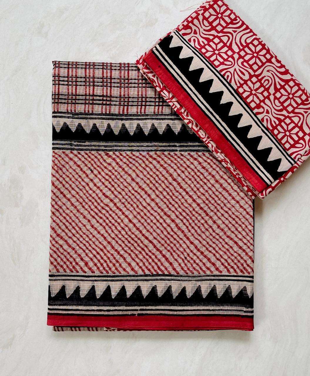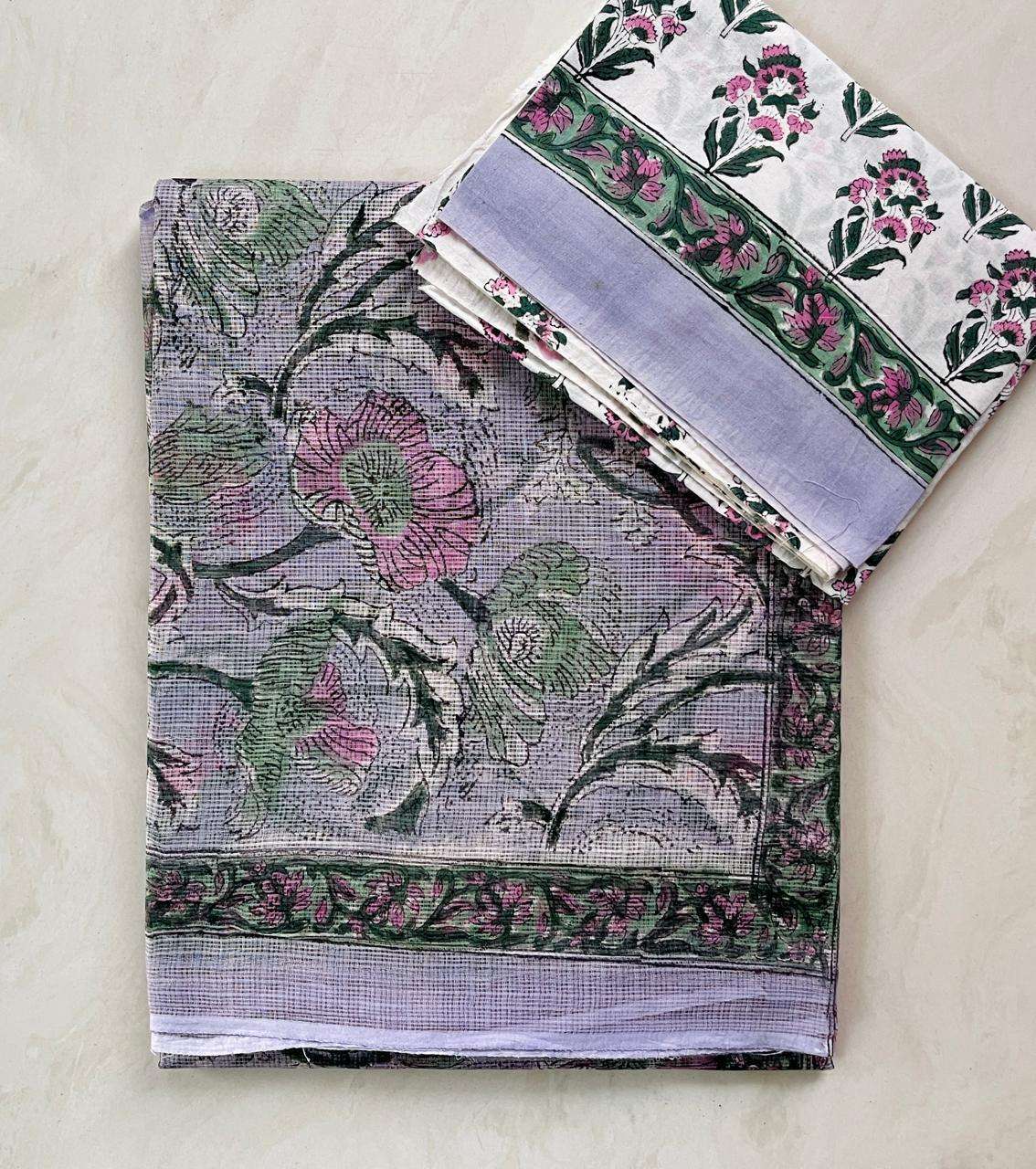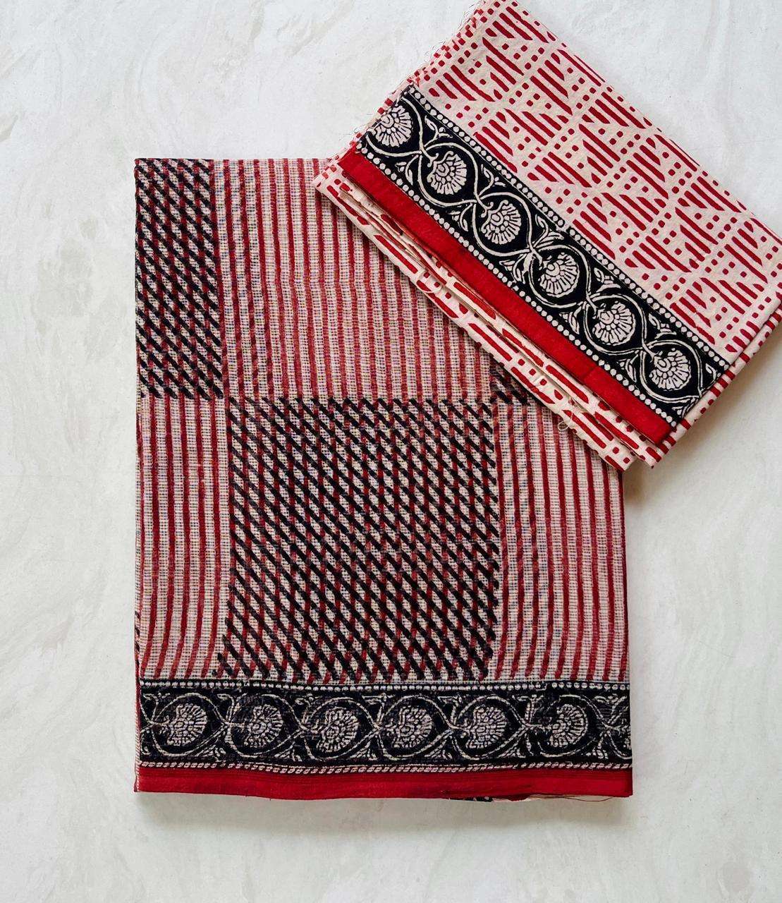 Hand block printed traditional designs n multi colour combination kota Doria sarees with blouse
