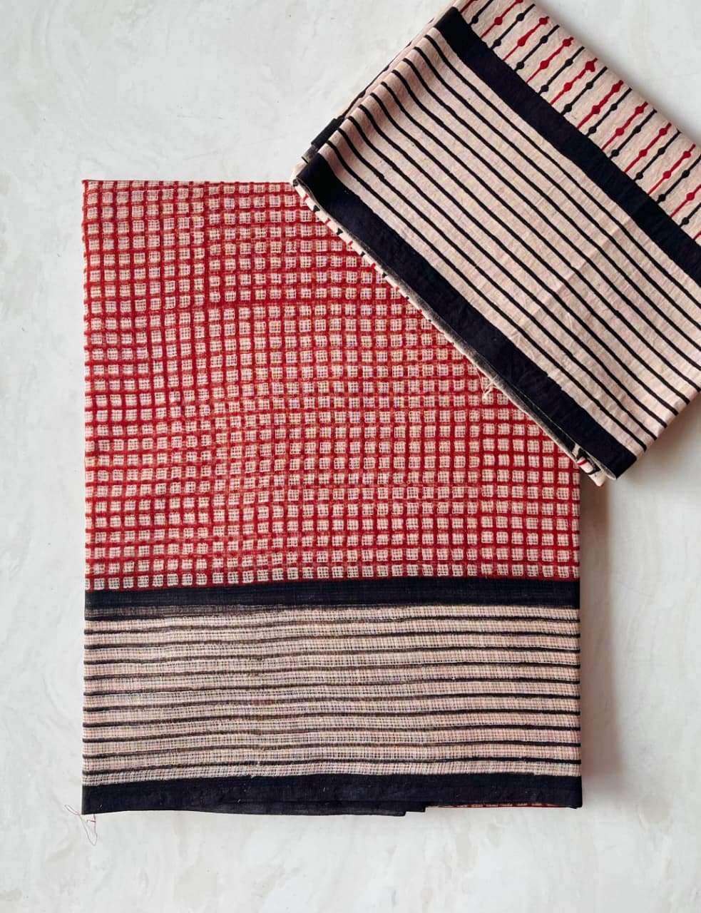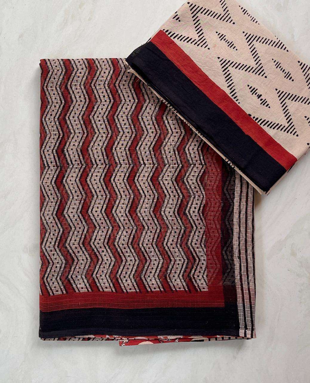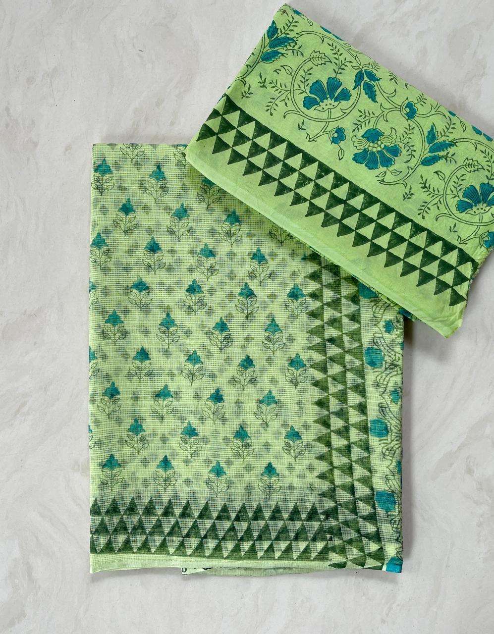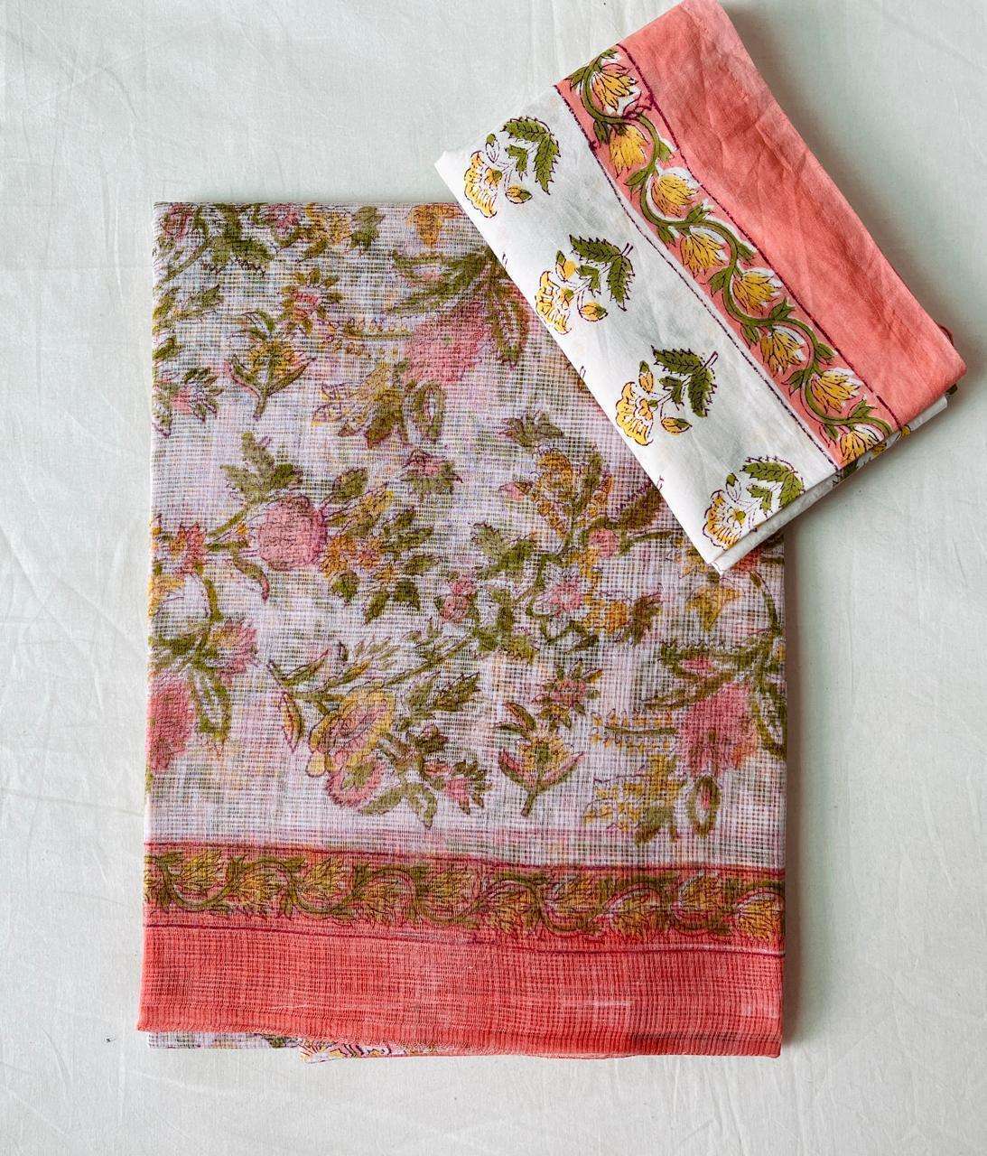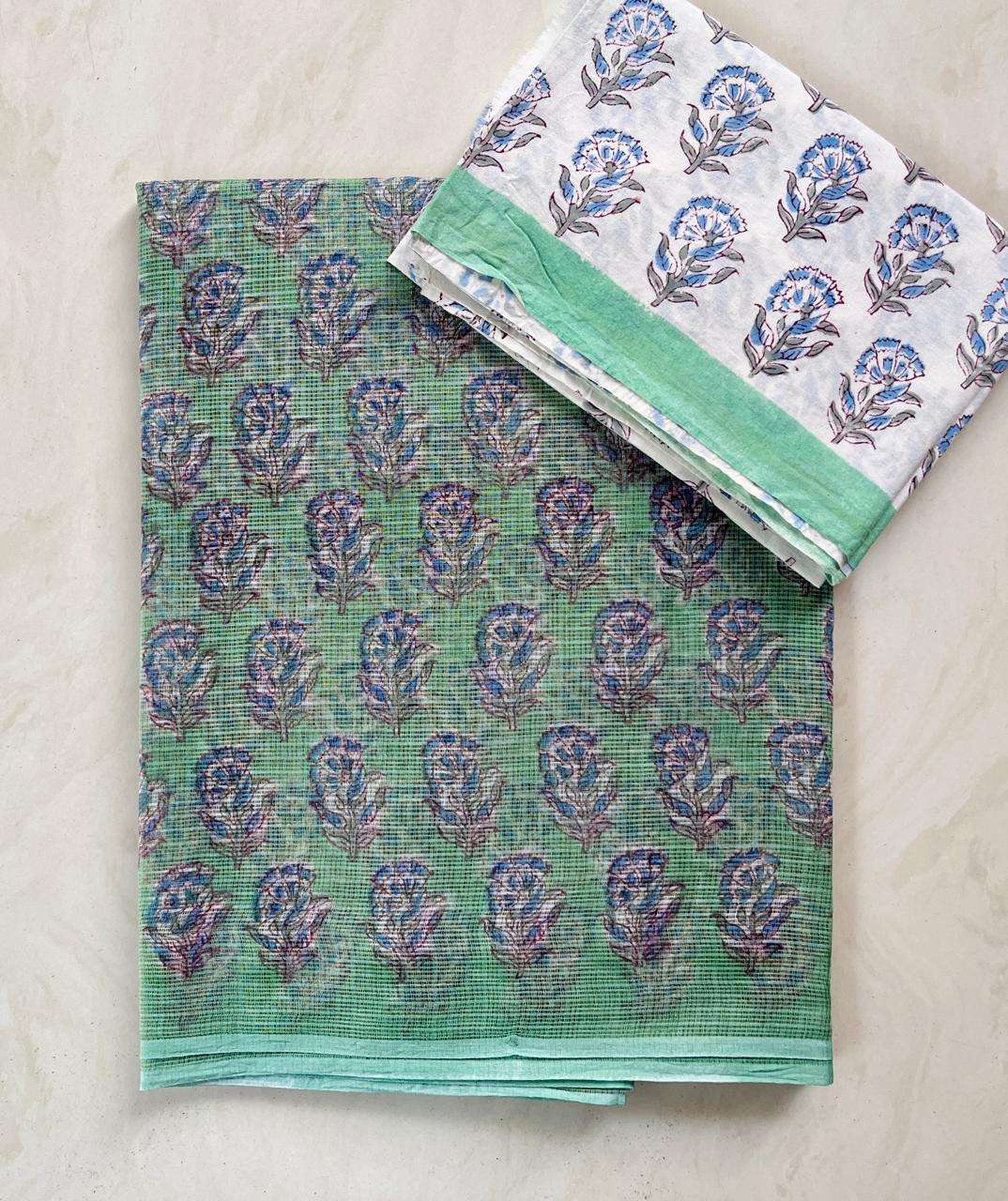 Hand block printed traditional designs n multi colour combination kota Doria sarees with blouse