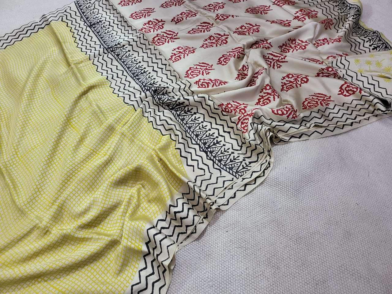 | Catalogue: | Shri Balaji Emporium RF 17896 Bagru Hand Block Printed Modal Silk Saree |