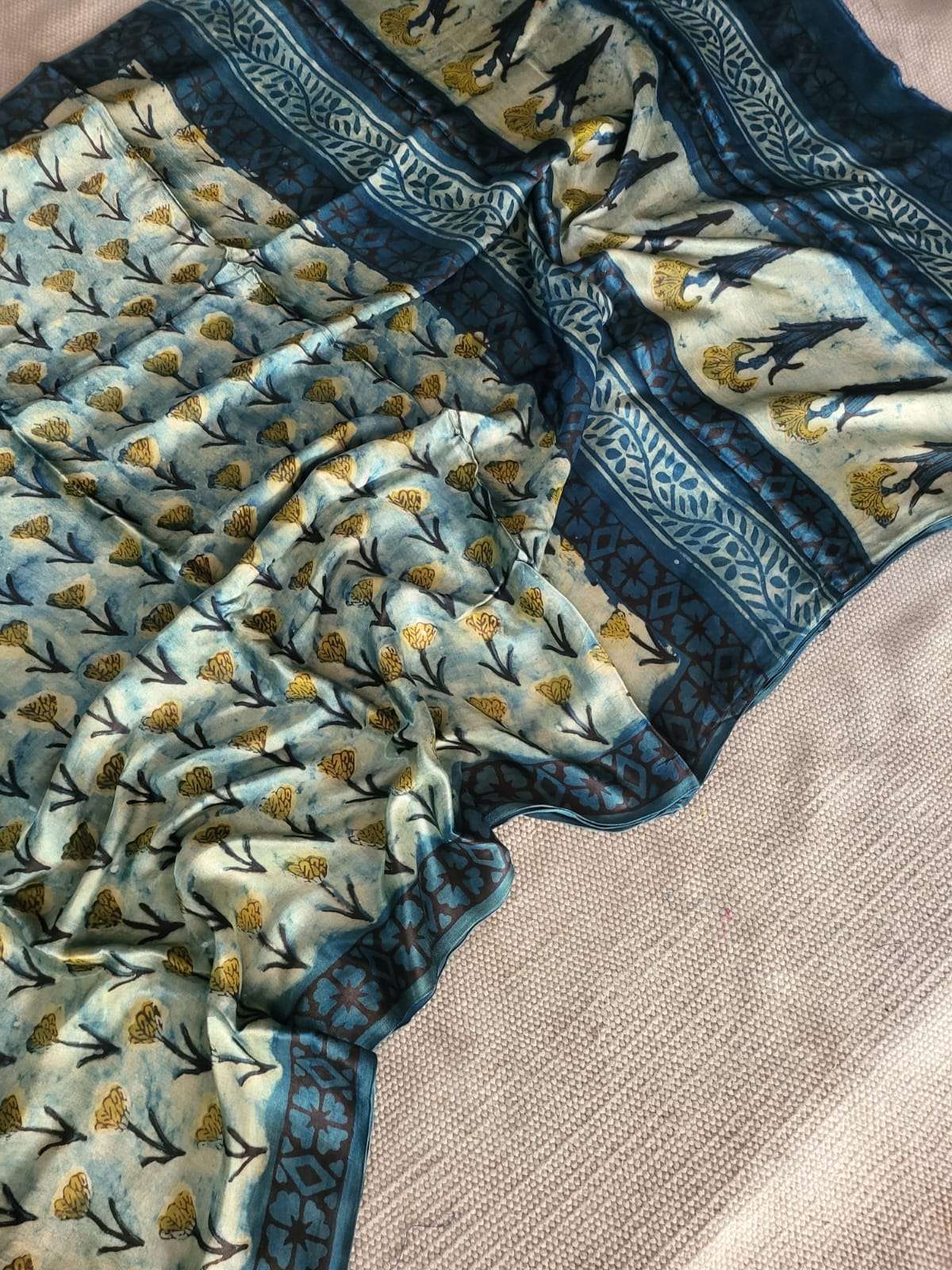 Exlcusives - natural dye vegetable hand block print ajrk vanaspati PURE MODAL SILK SAREE