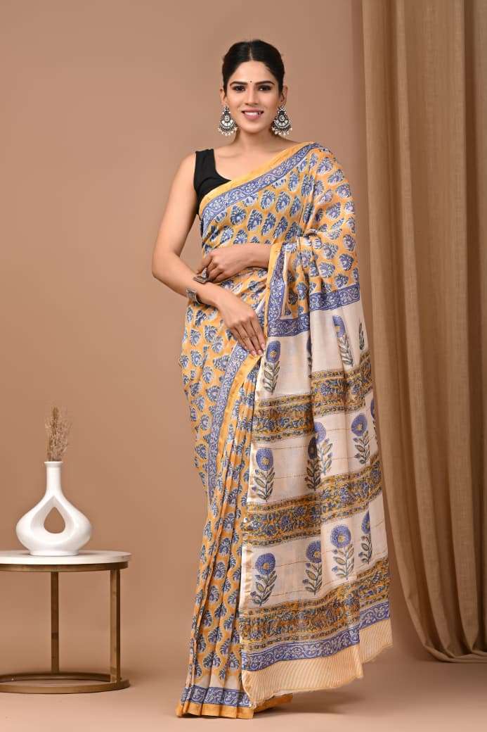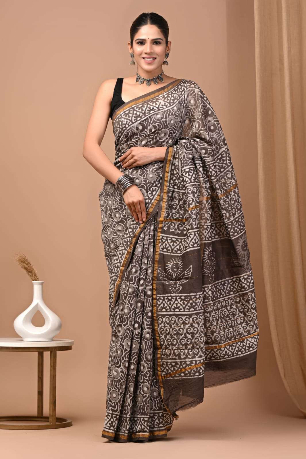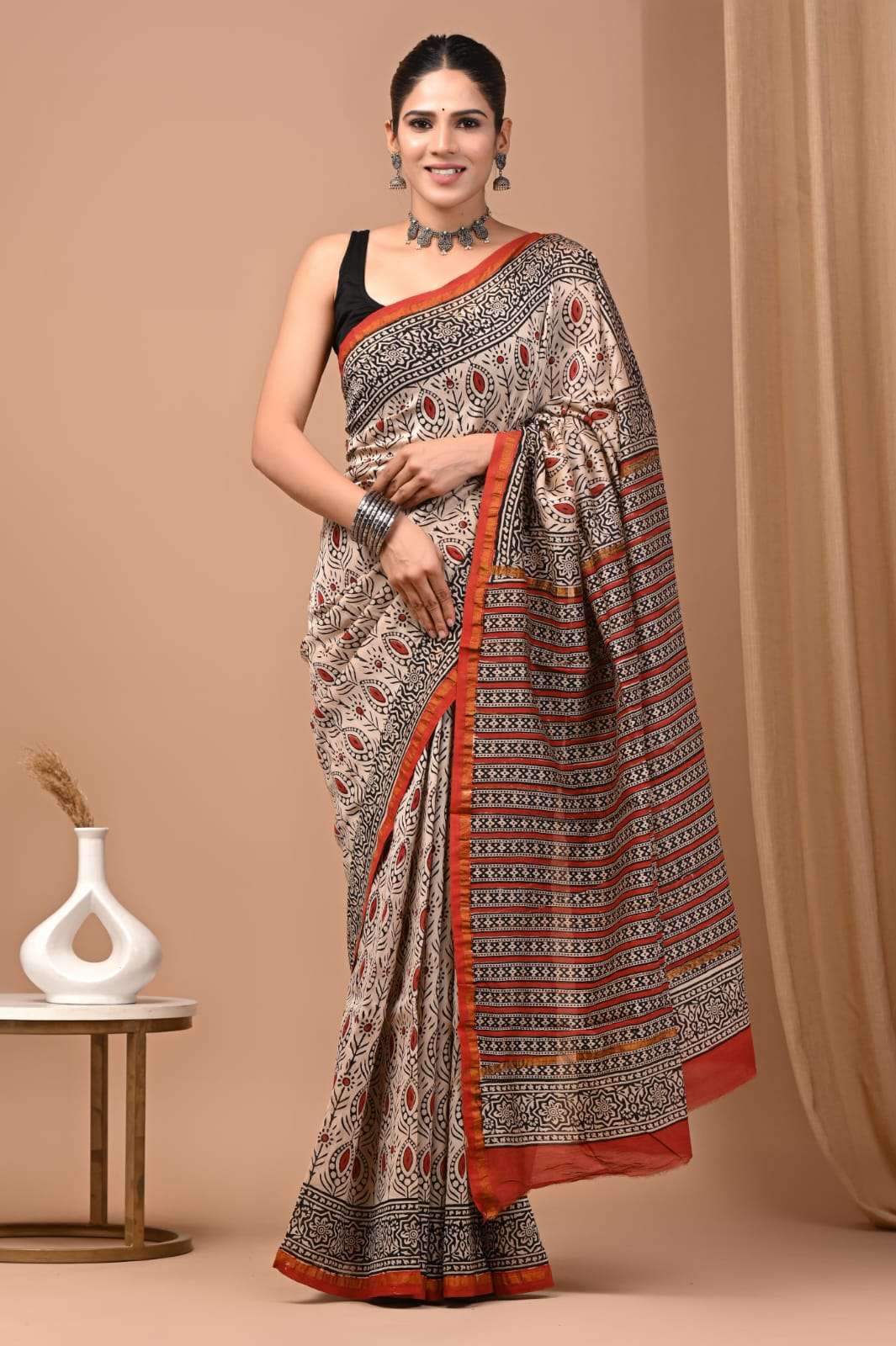 Traditional Hand block printed chanderi silk Sarees with blouse
