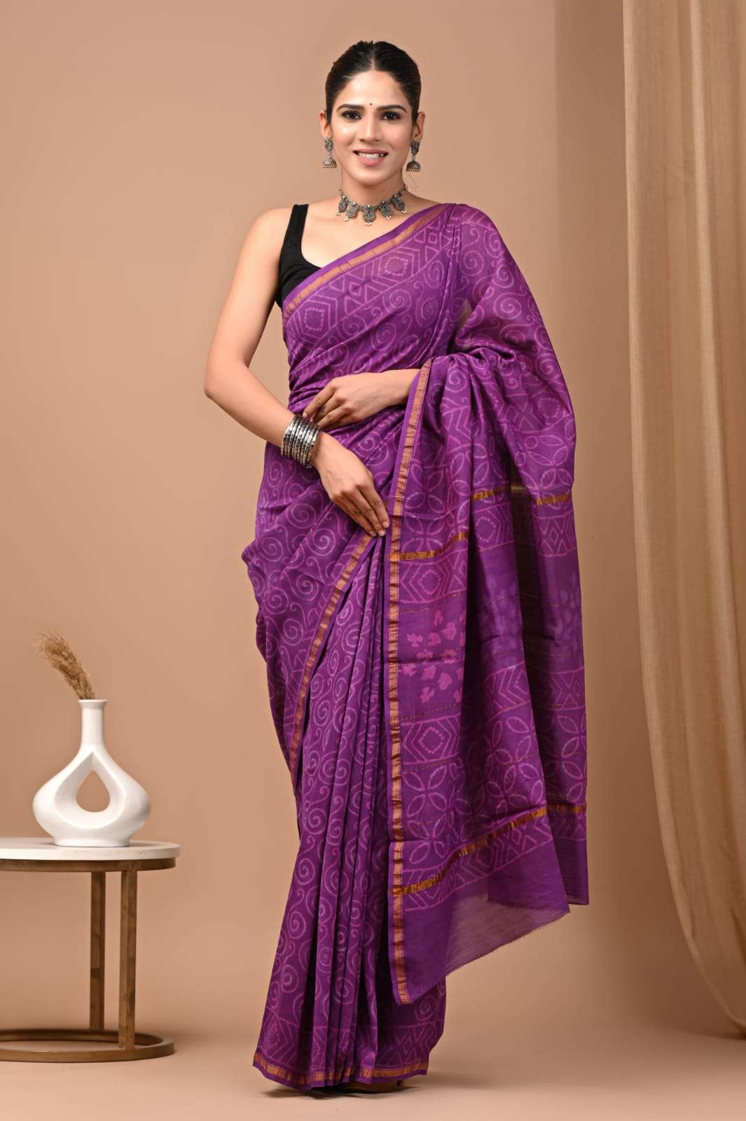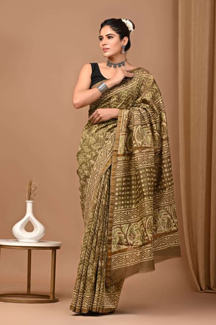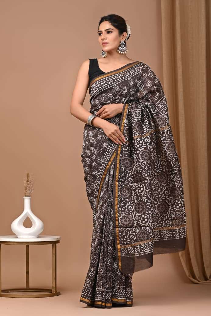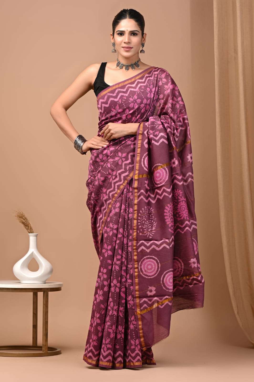 Traditional Hand block printed chanderi silk Sarees with blouse