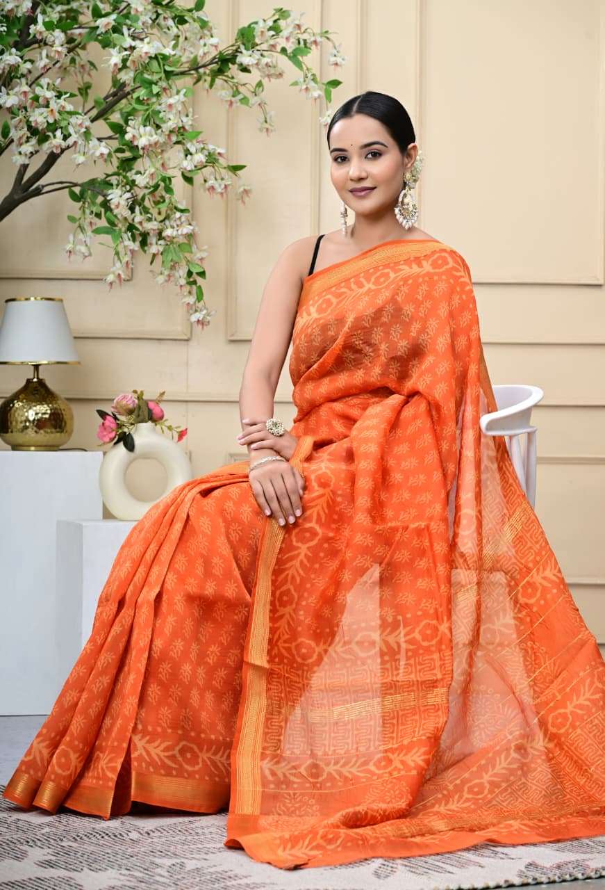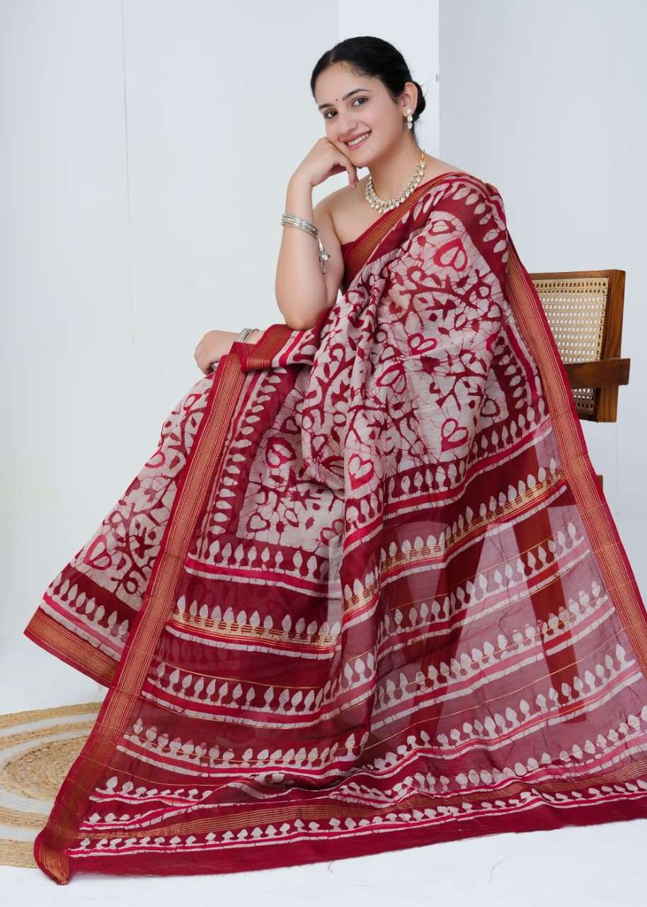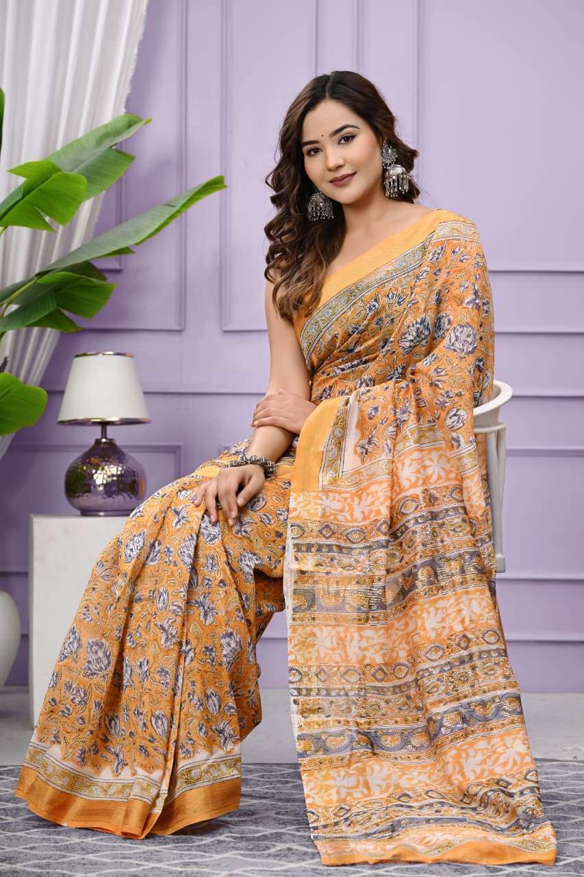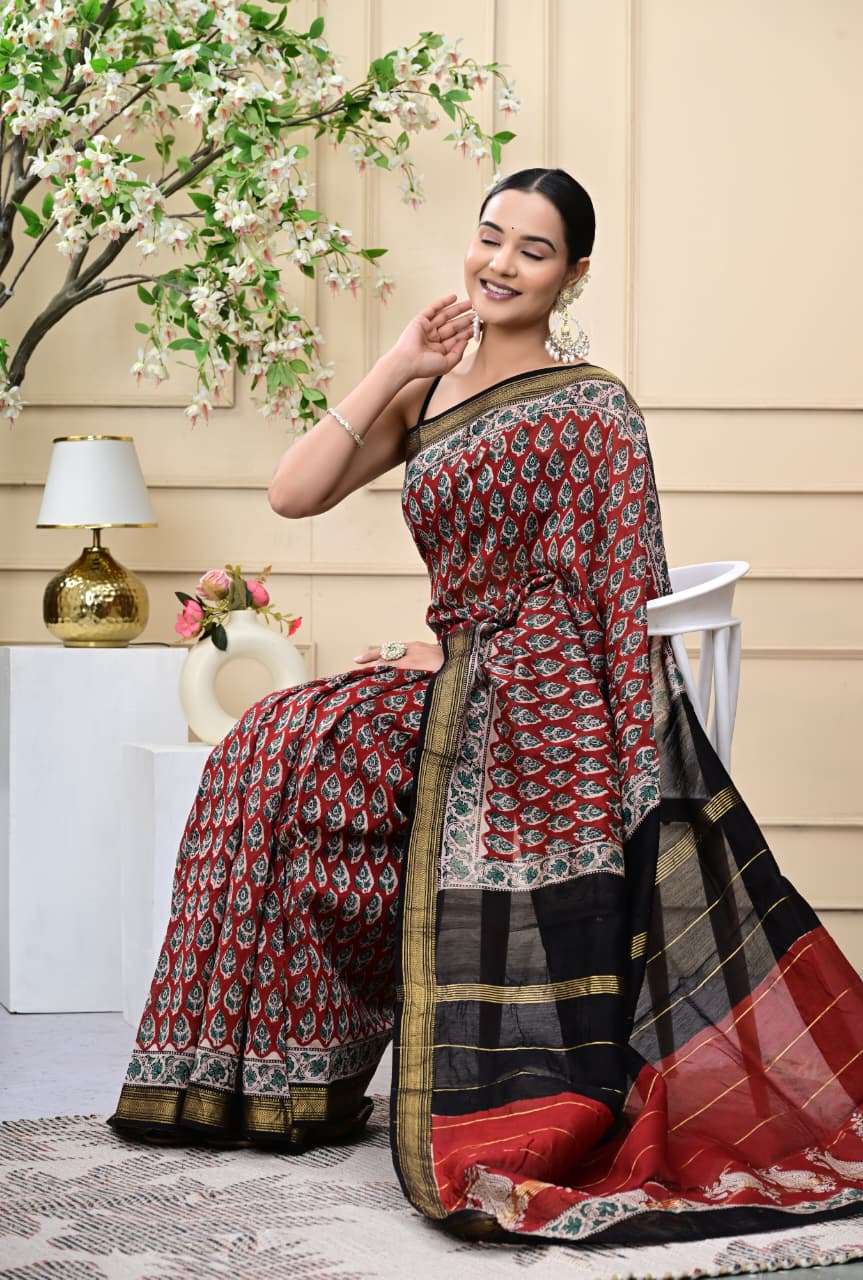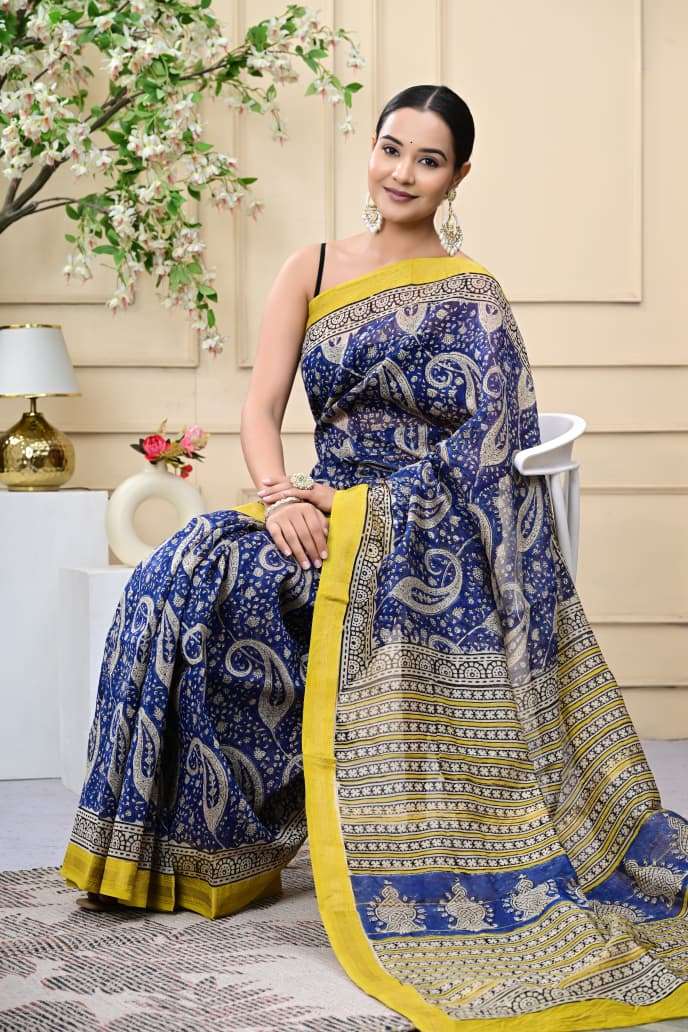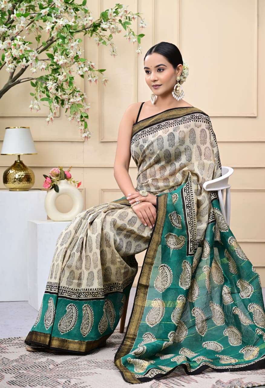 | Catalogue: | Shri Balaji Emporium RF 18379 Hand Block Printed Maheshwari Silk Saree |