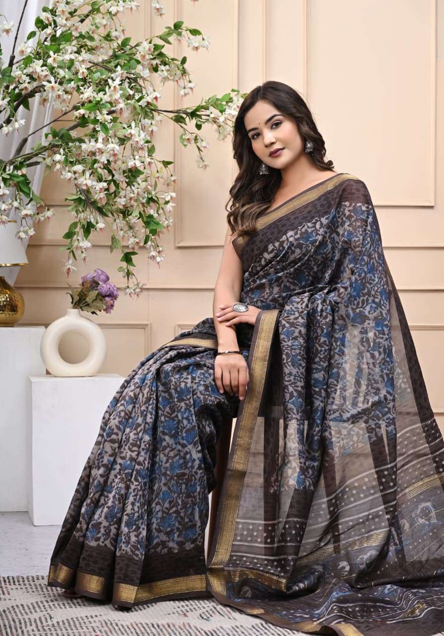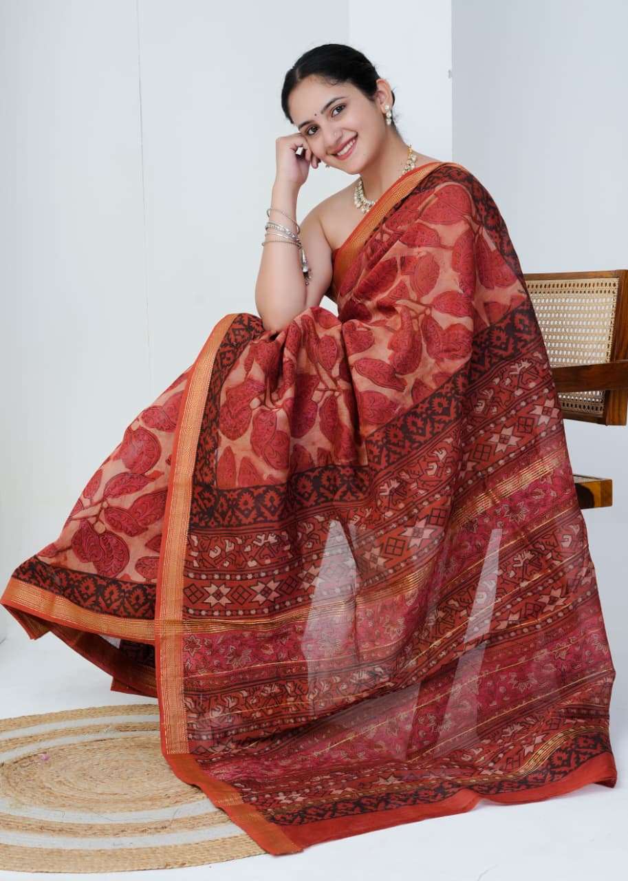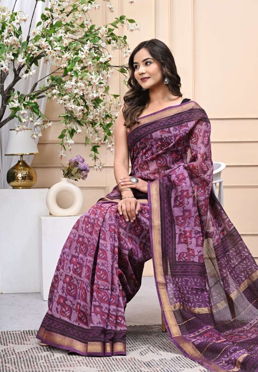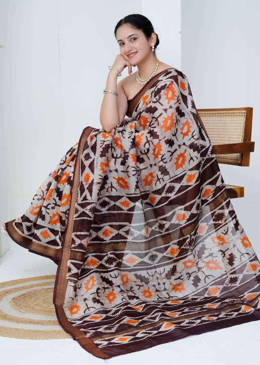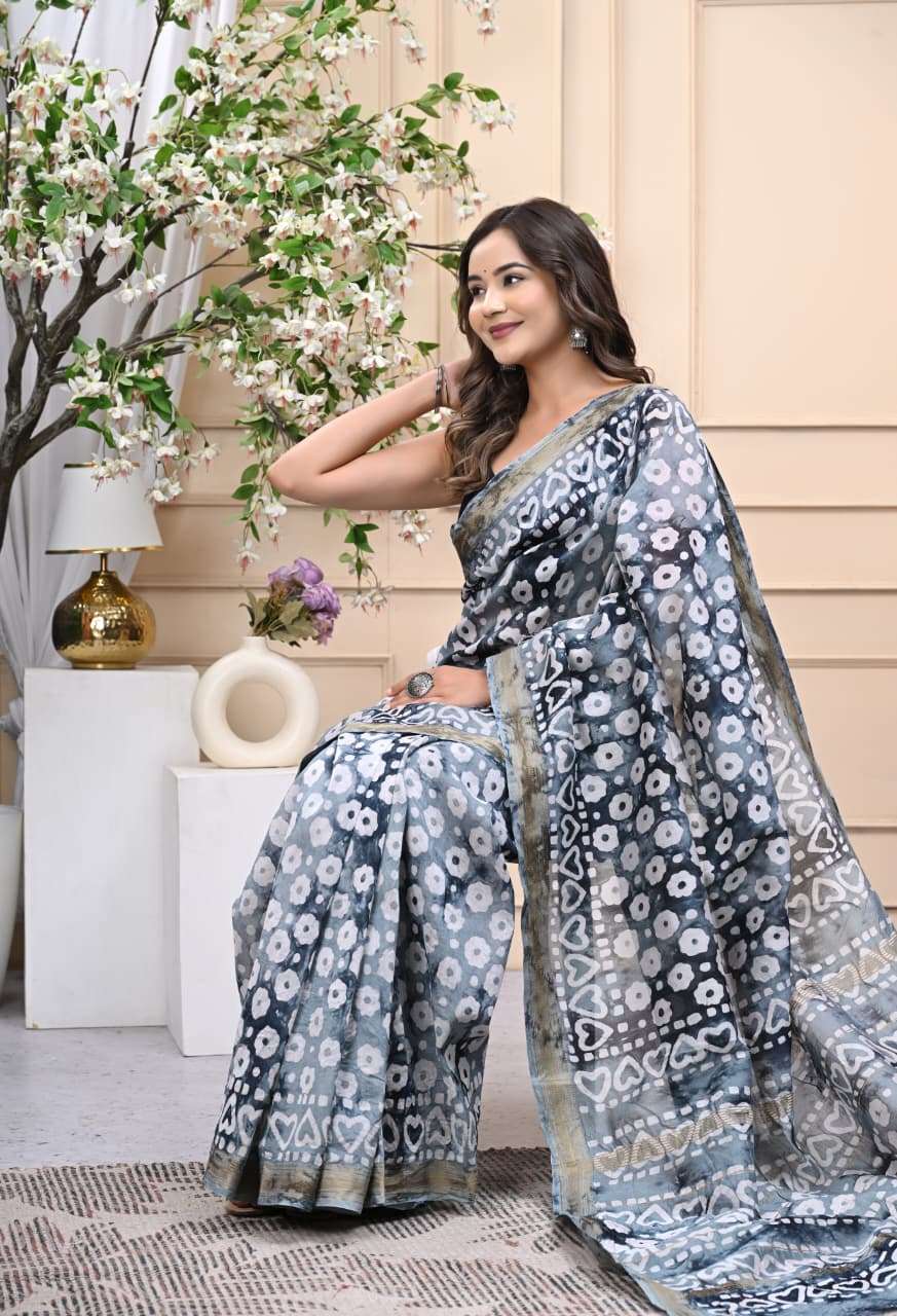 | Catalogue: | Shri Balaji Emporium RF 18379 Hand Block Printed Maheshwari Silk Saree |