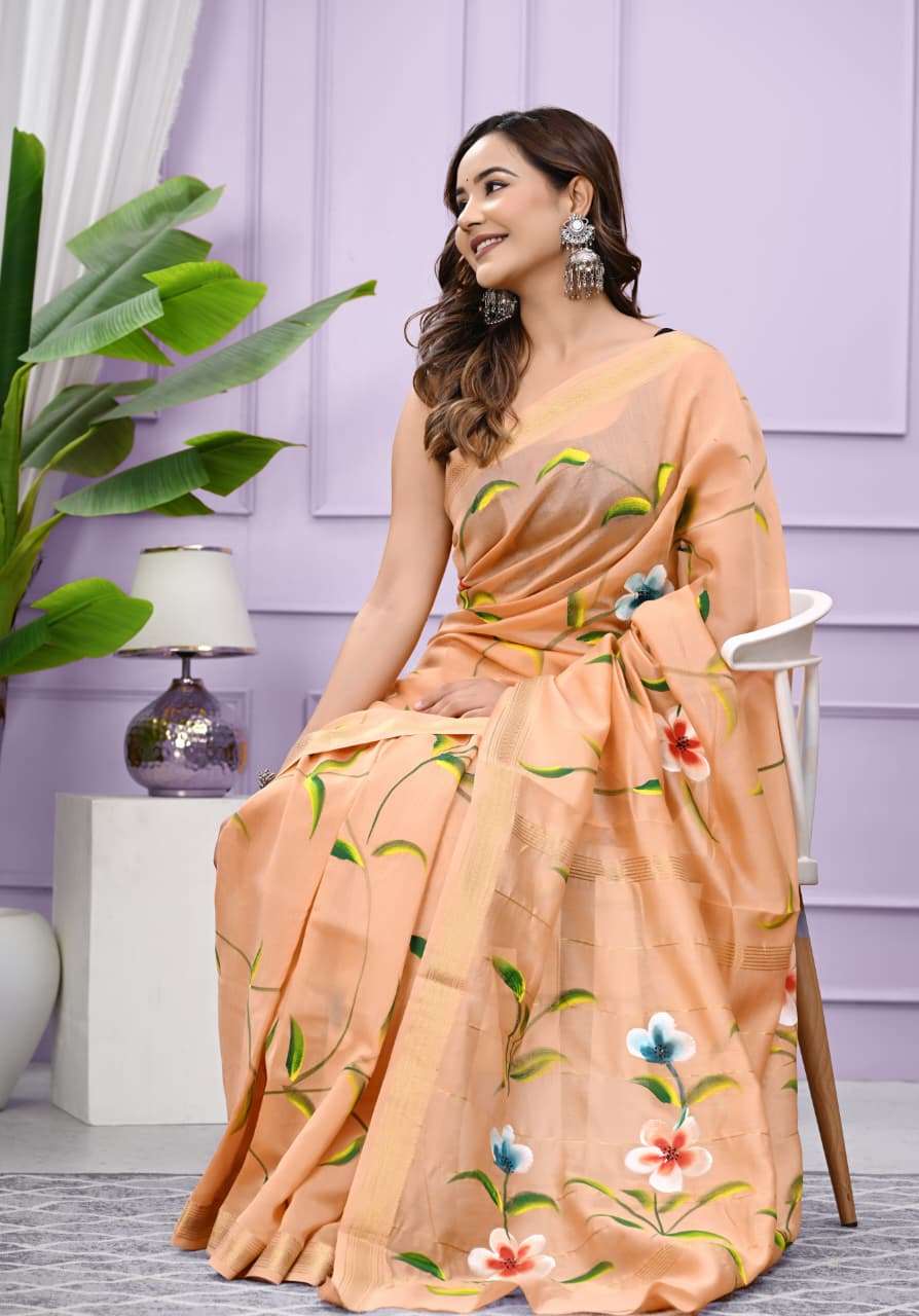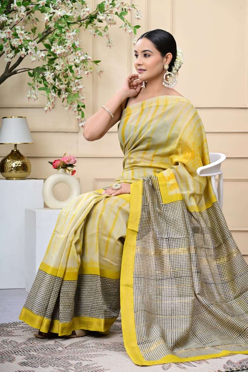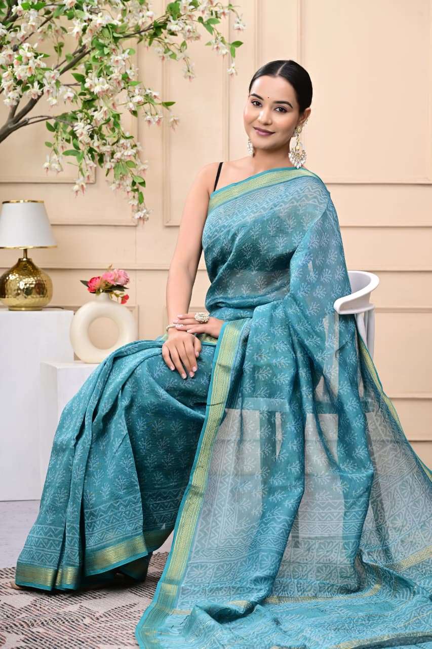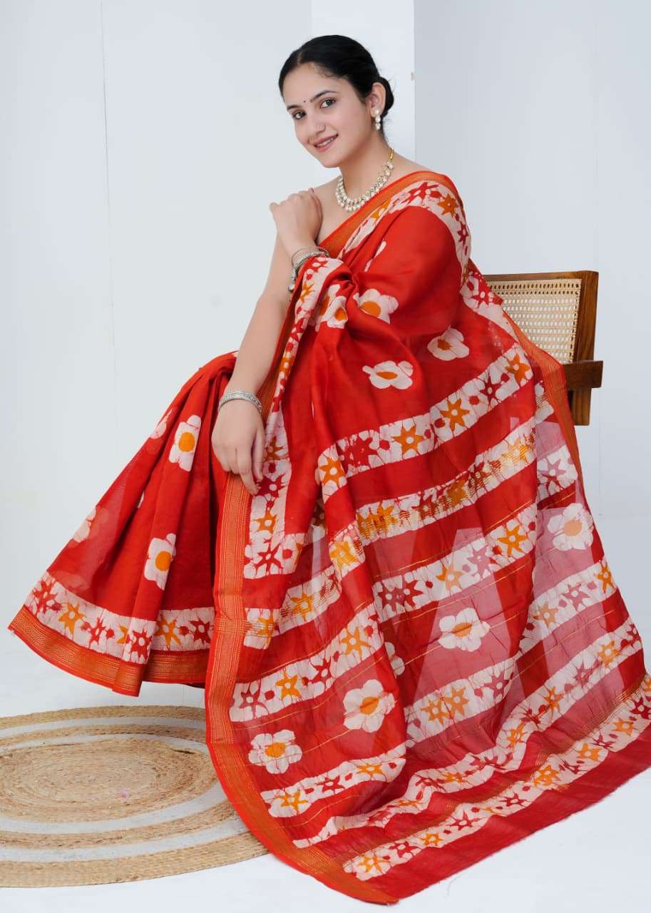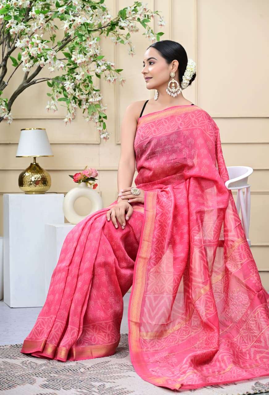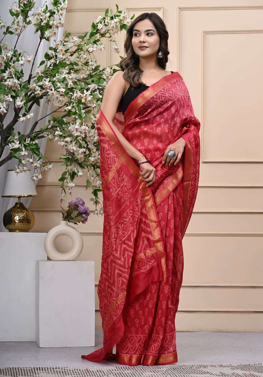 | Catalogue: | Shri Balaji Emporium RF 18379 Hand Block Printed Maheshwari Silk Saree |