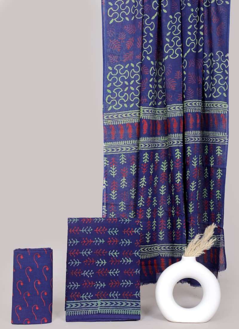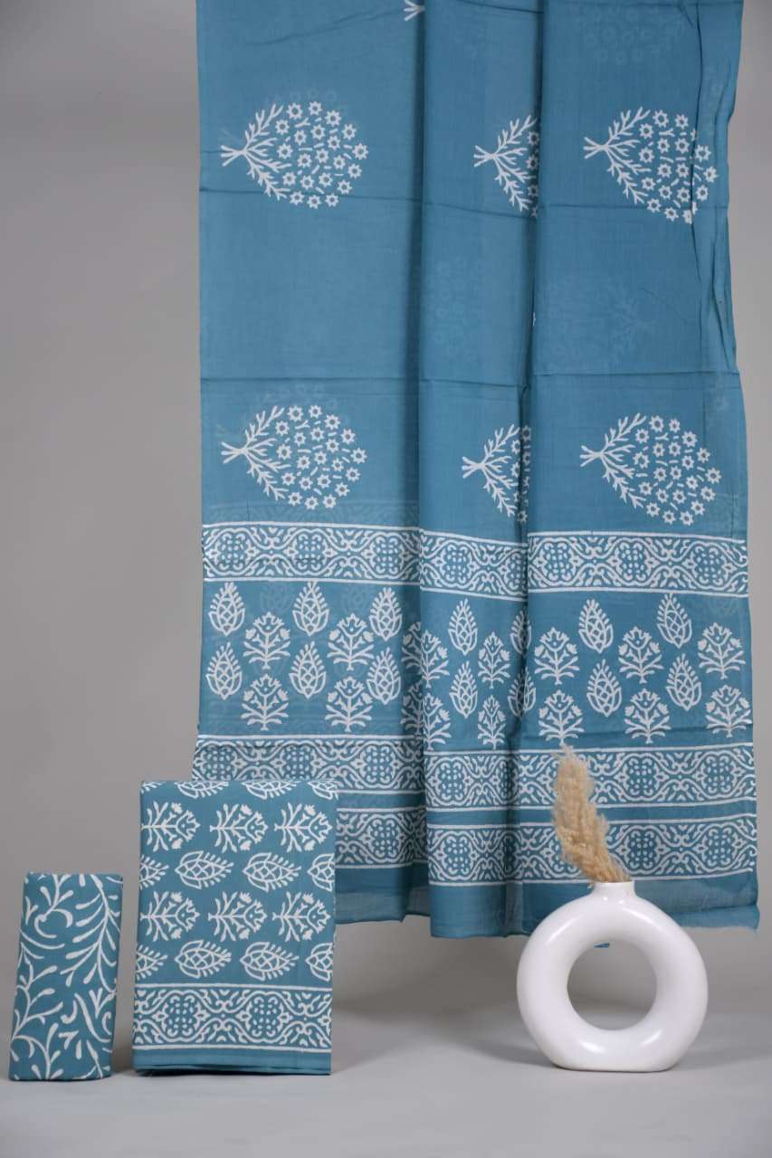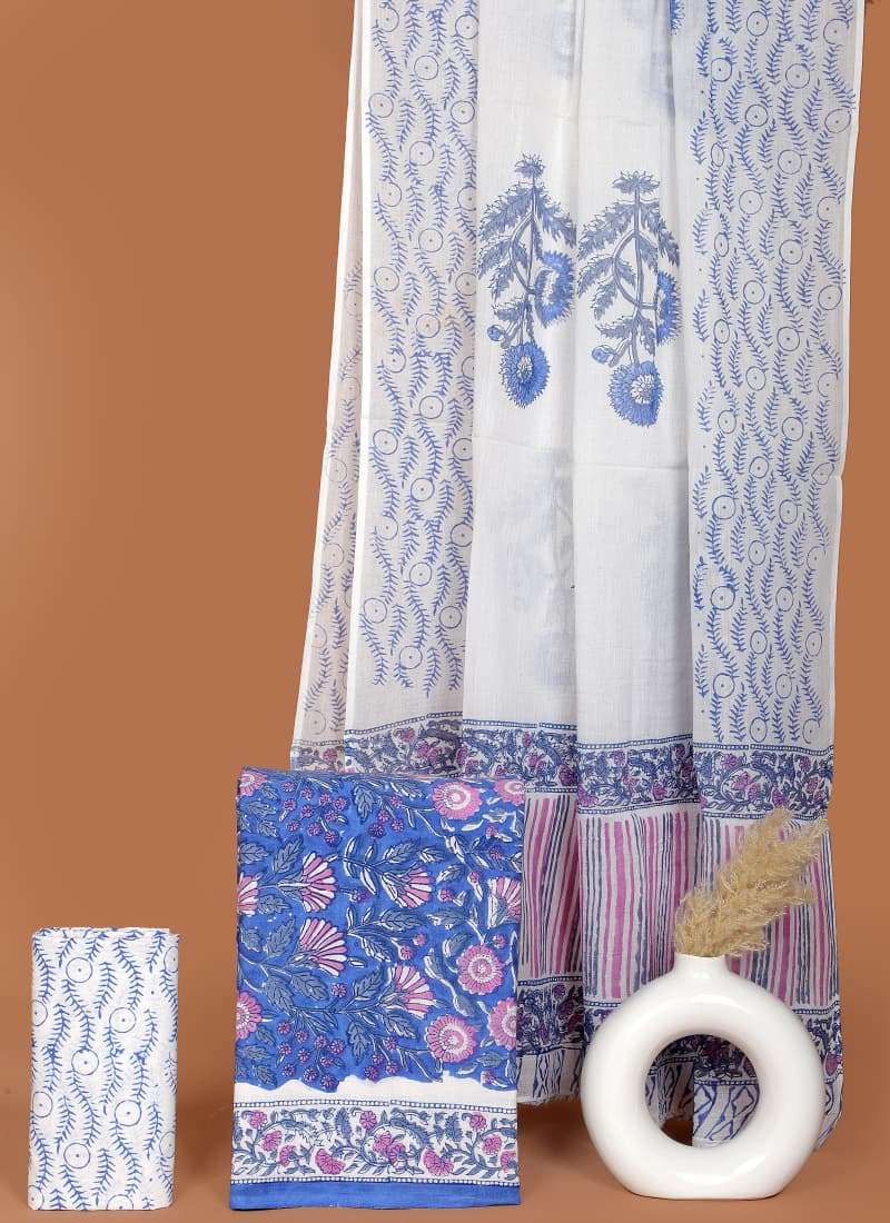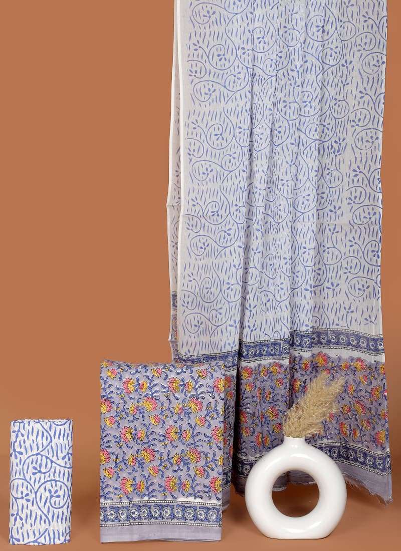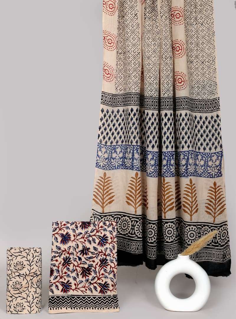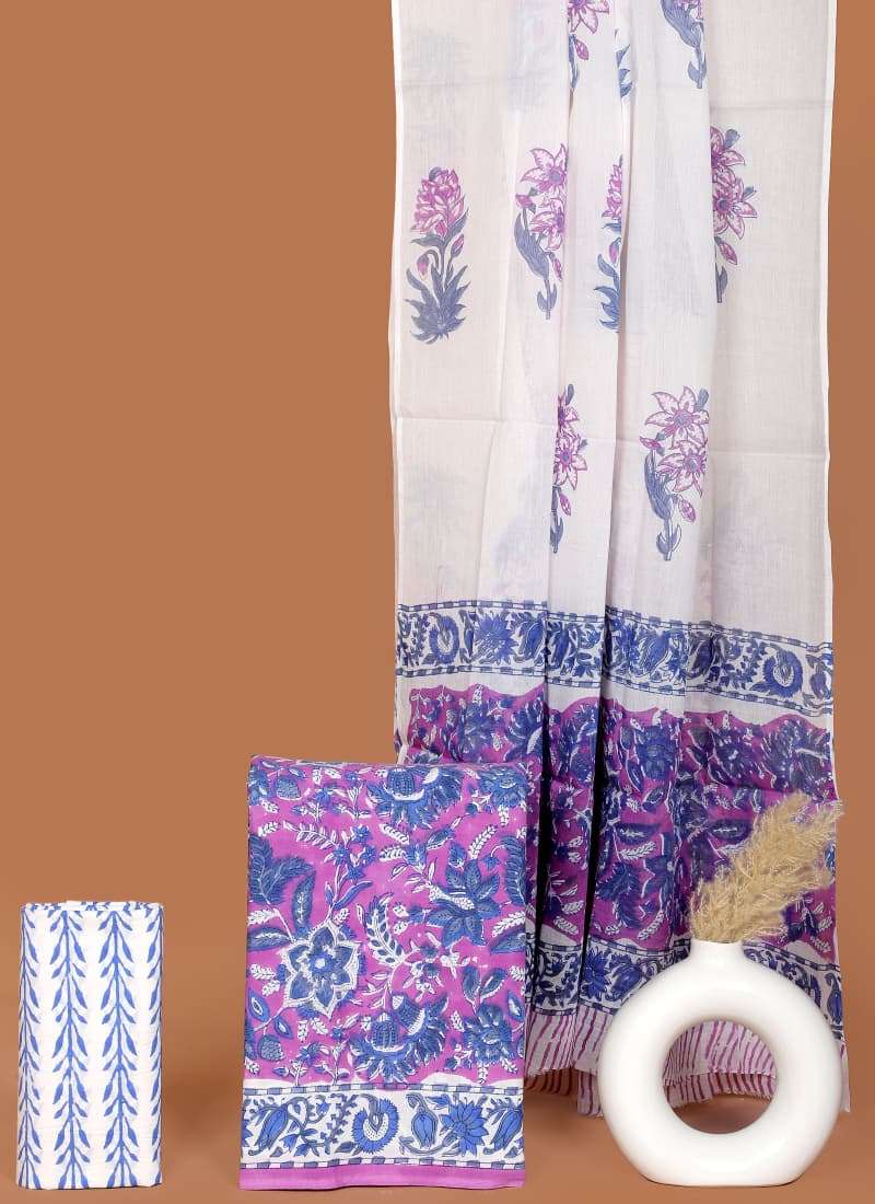 Beautiful Hand block Printed Cotton suits with mulmul cotton Dupatta