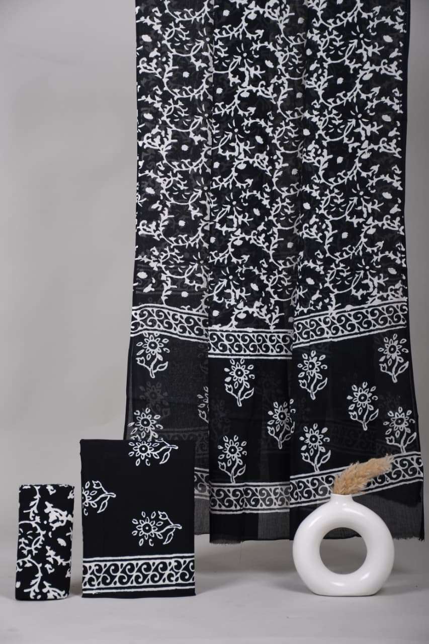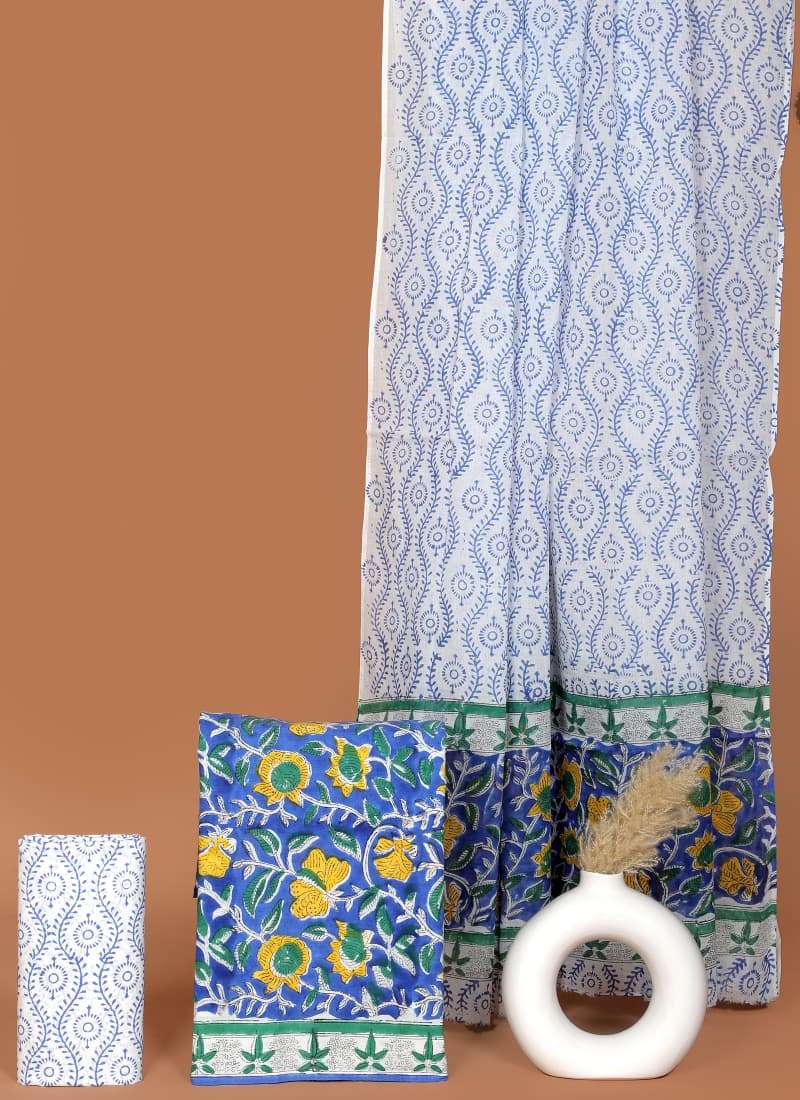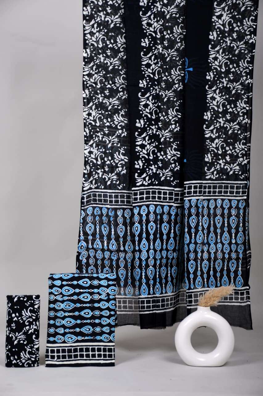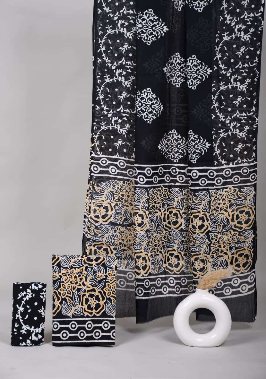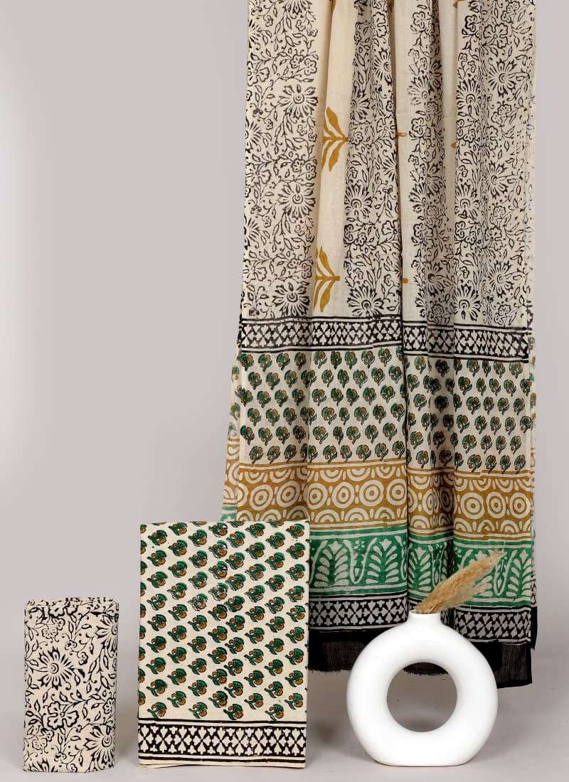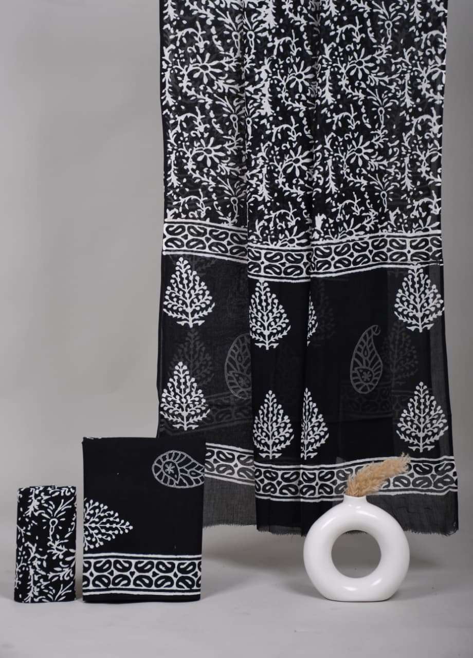Beautiful Hand block Printed Cotton suits with mulmul cotton Dupatta