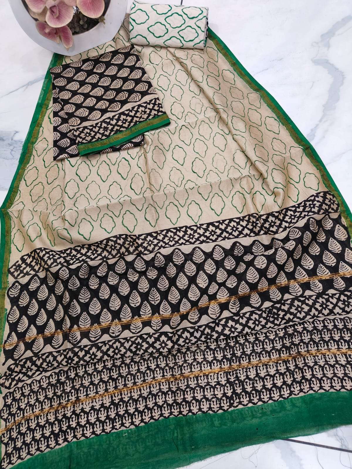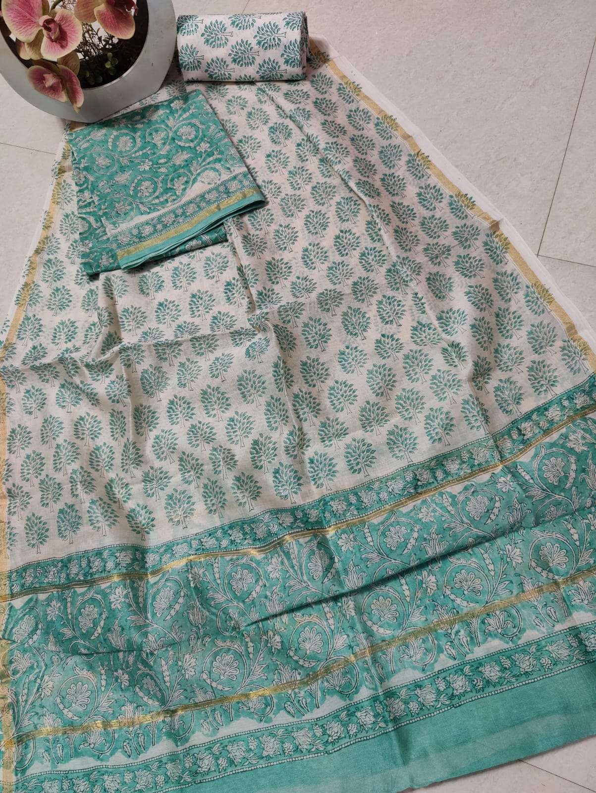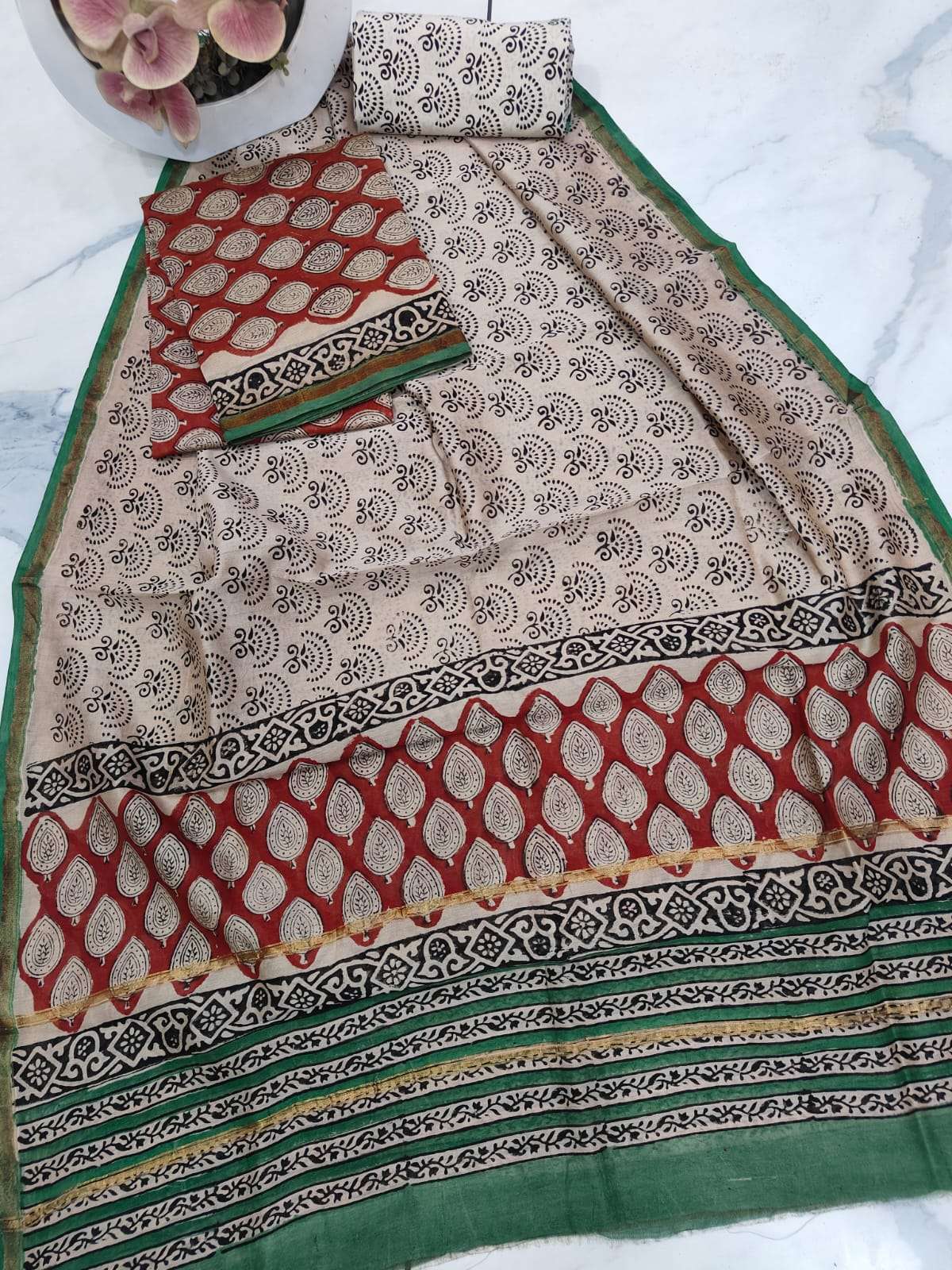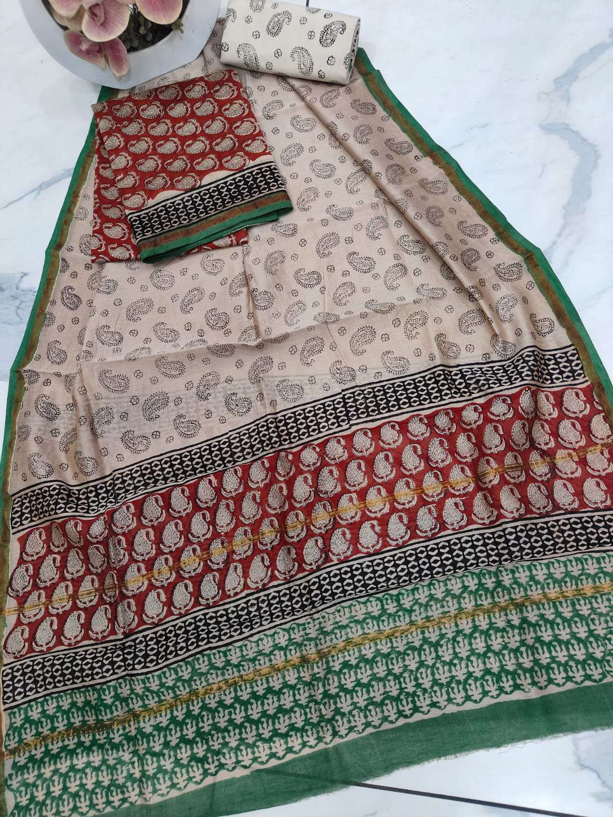 New Hand block chanderi silk dress materials