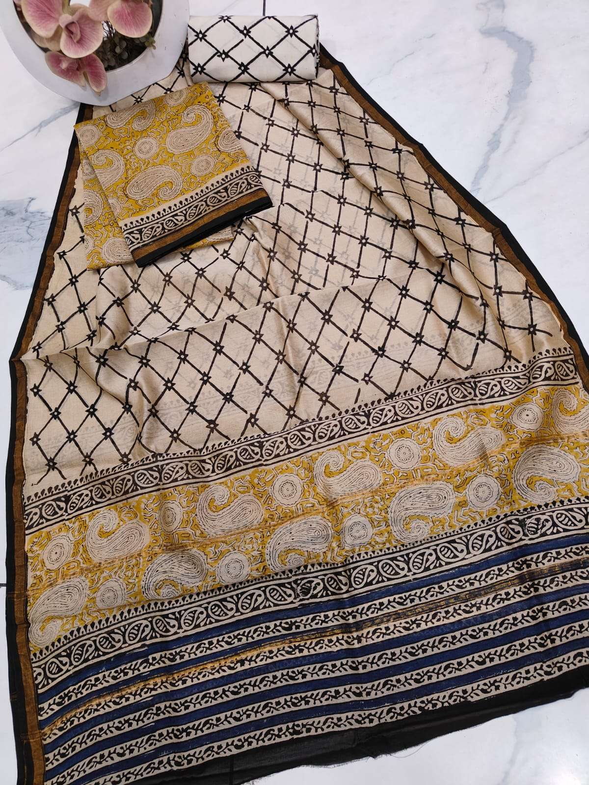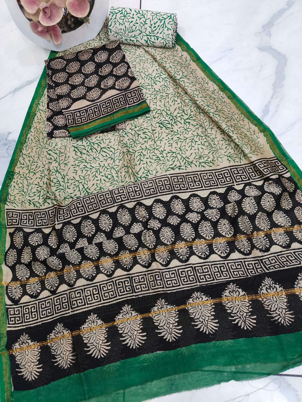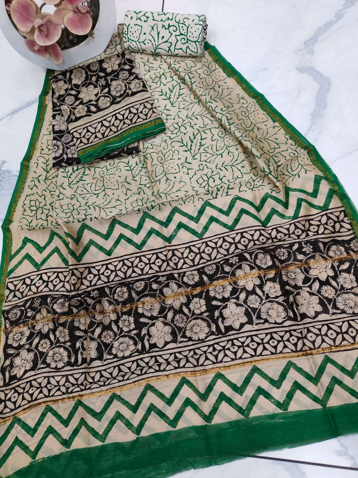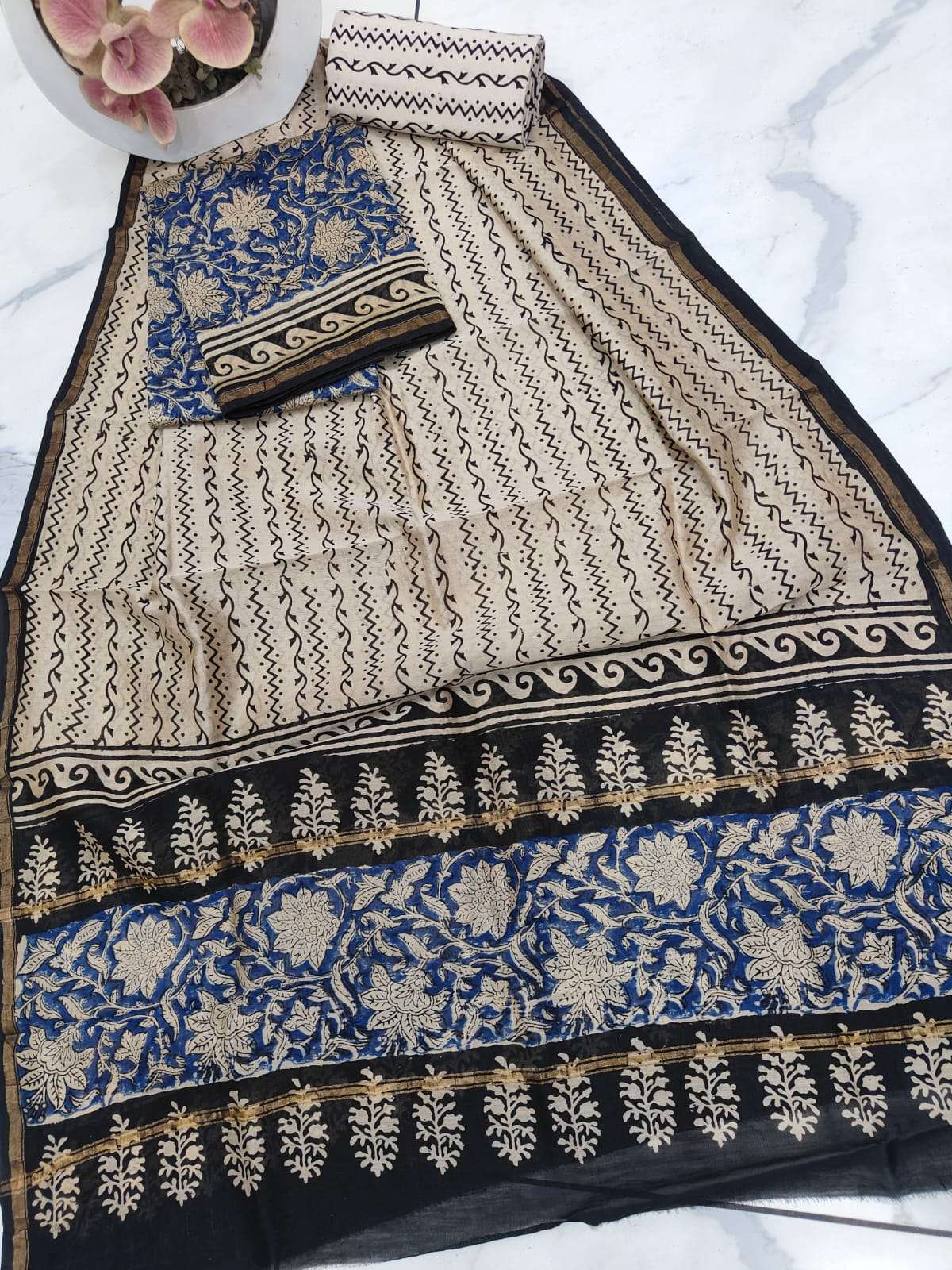 New Hand block chanderi silk dress materials