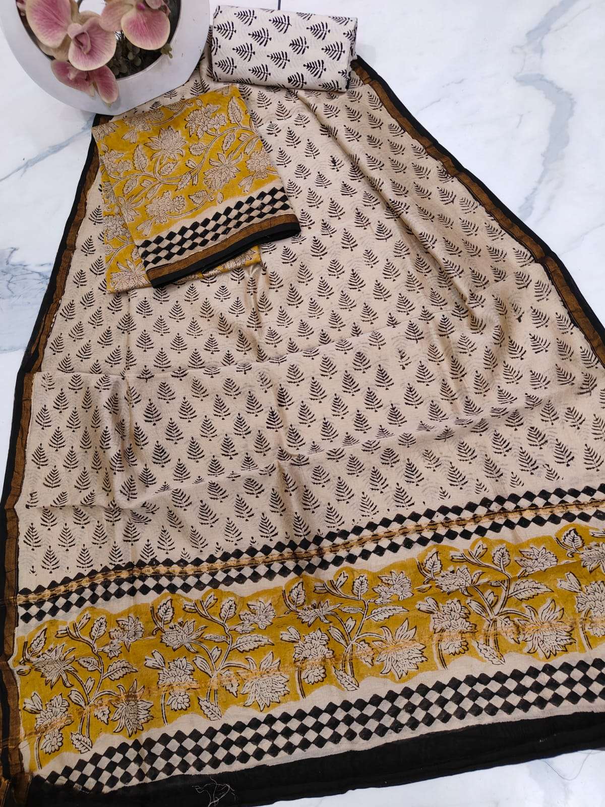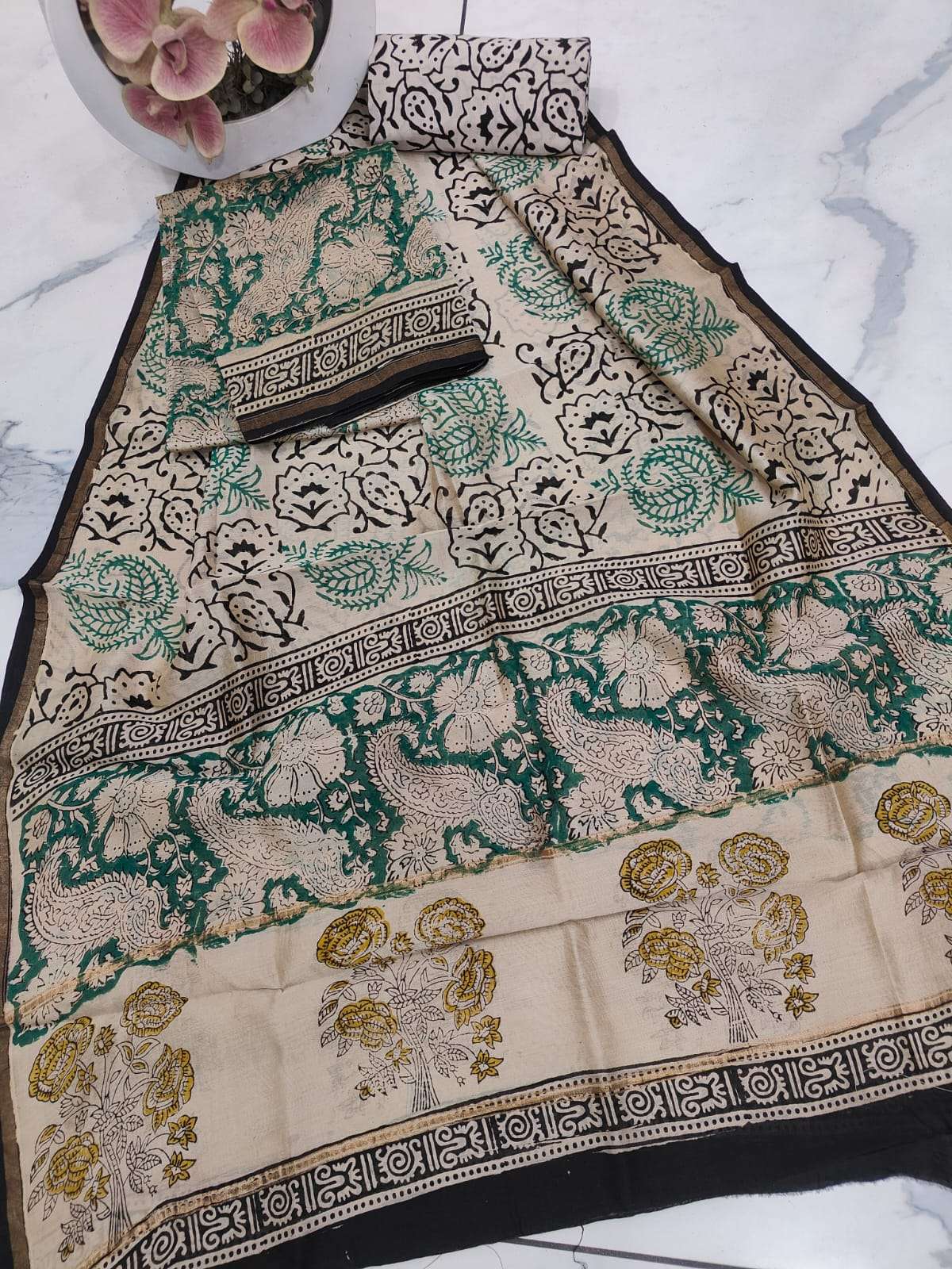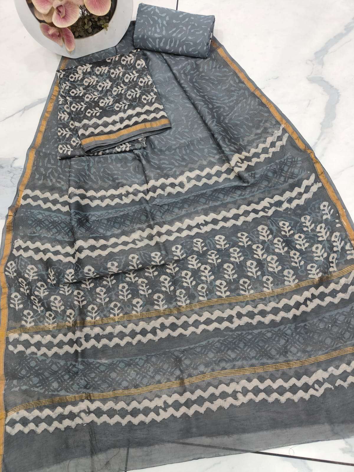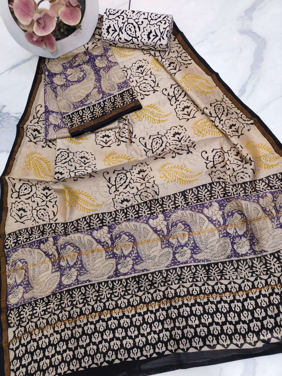 New Hand block chanderi silk dress materials