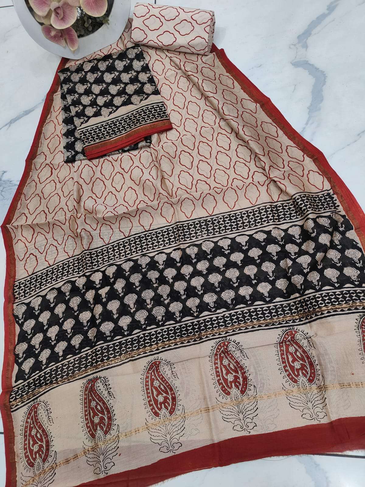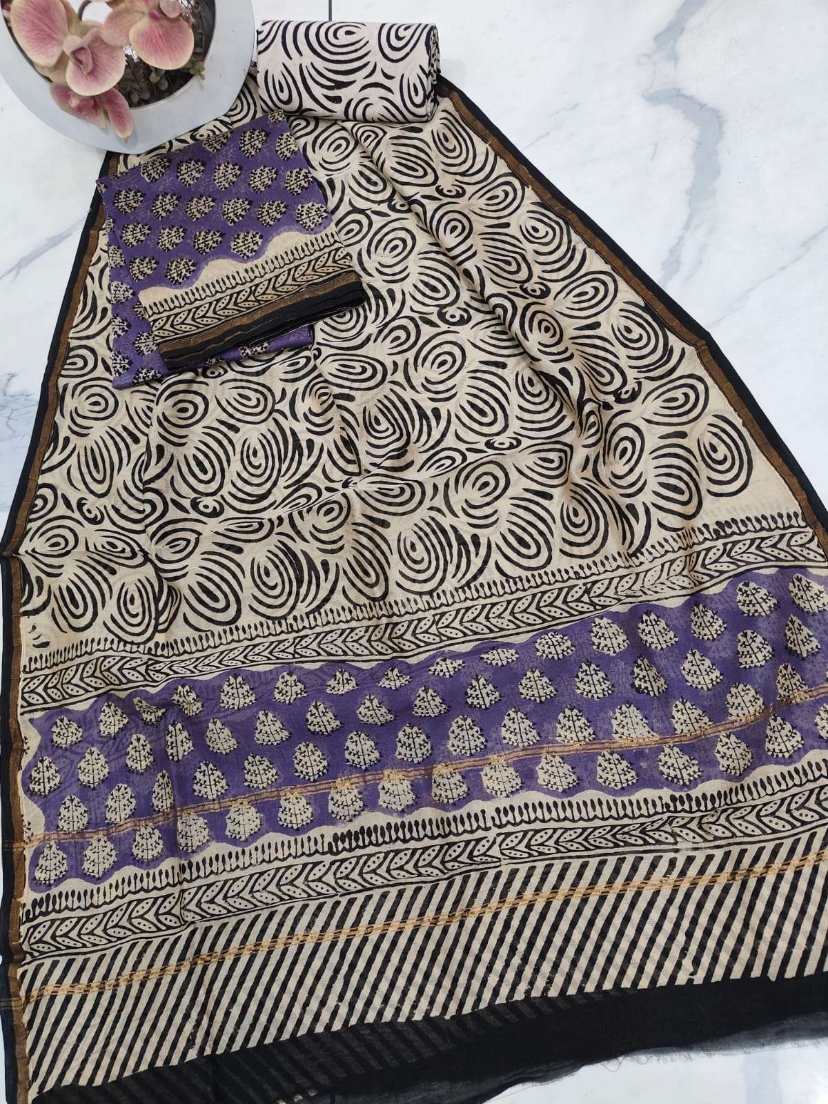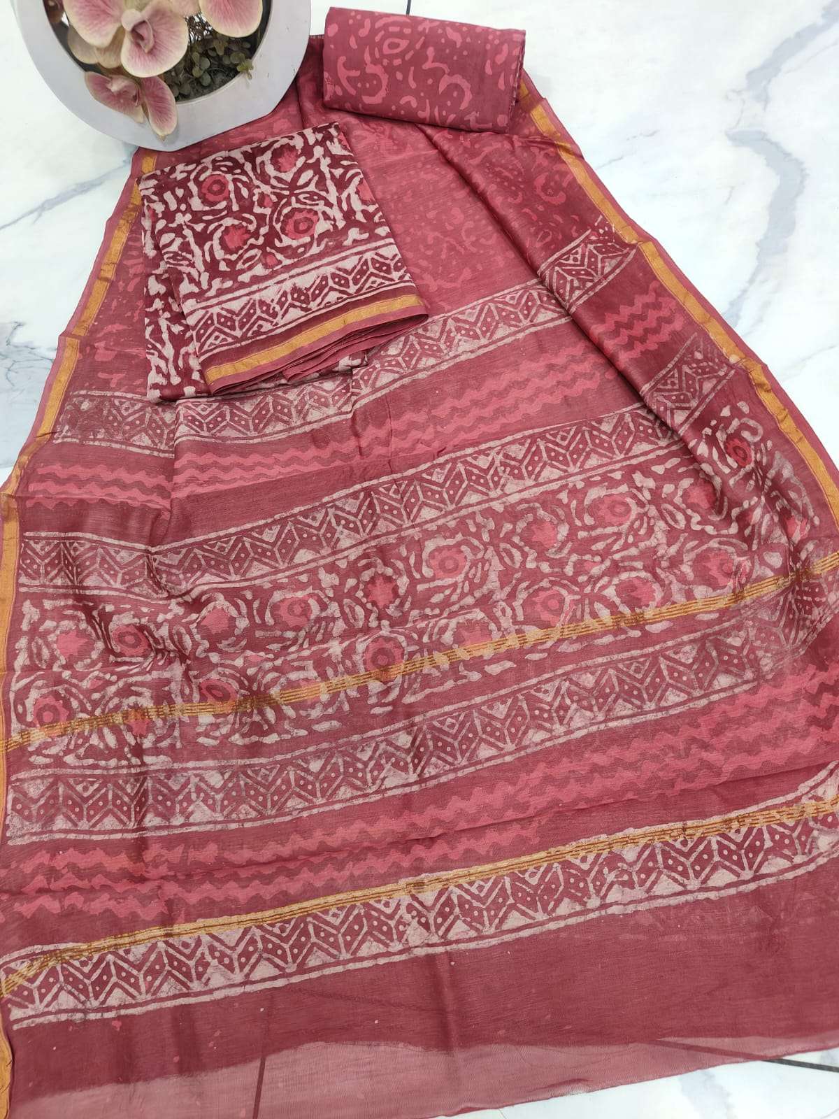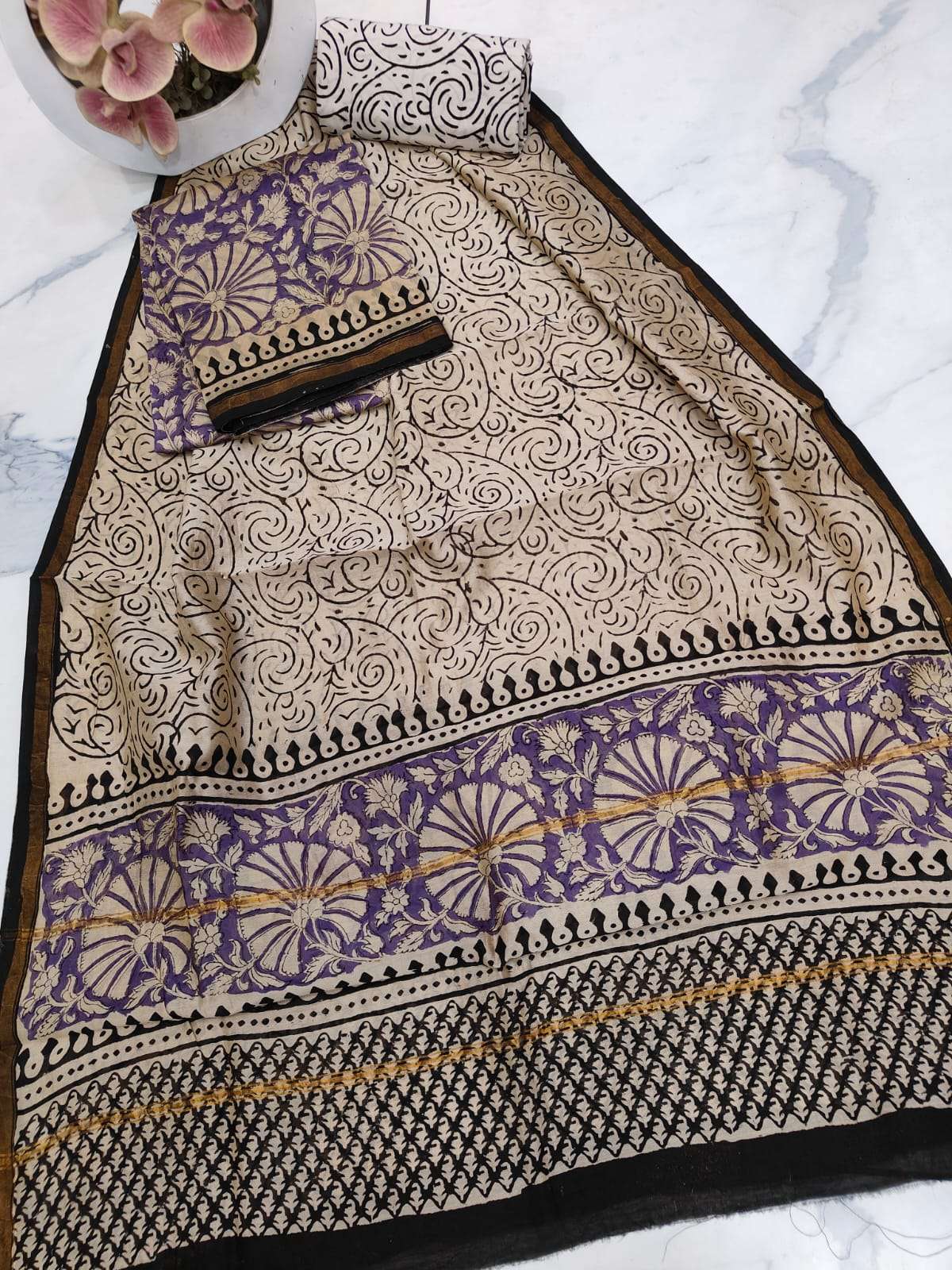New Hand block chanderi silk dress materials