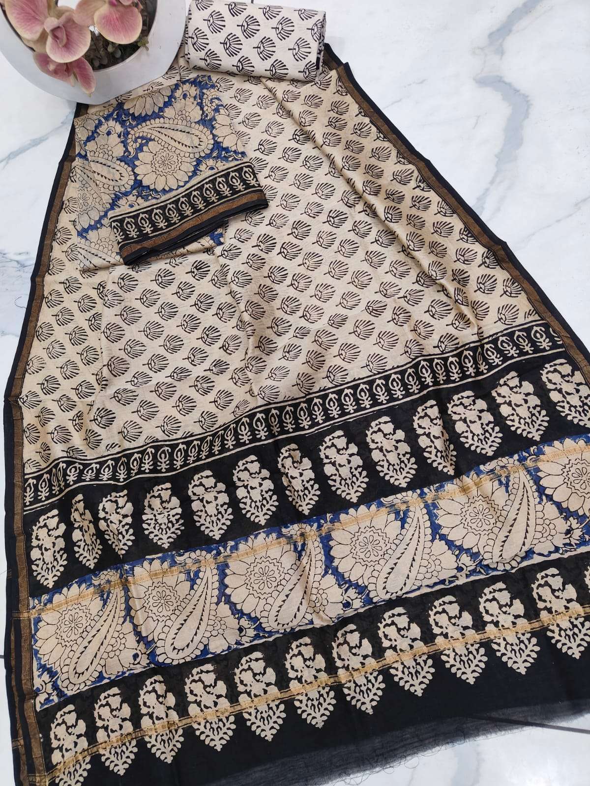 | Catalogue: | Shri Balaji Emporium RF 18850 Hand Block Printed Chanderi Silk Saree |