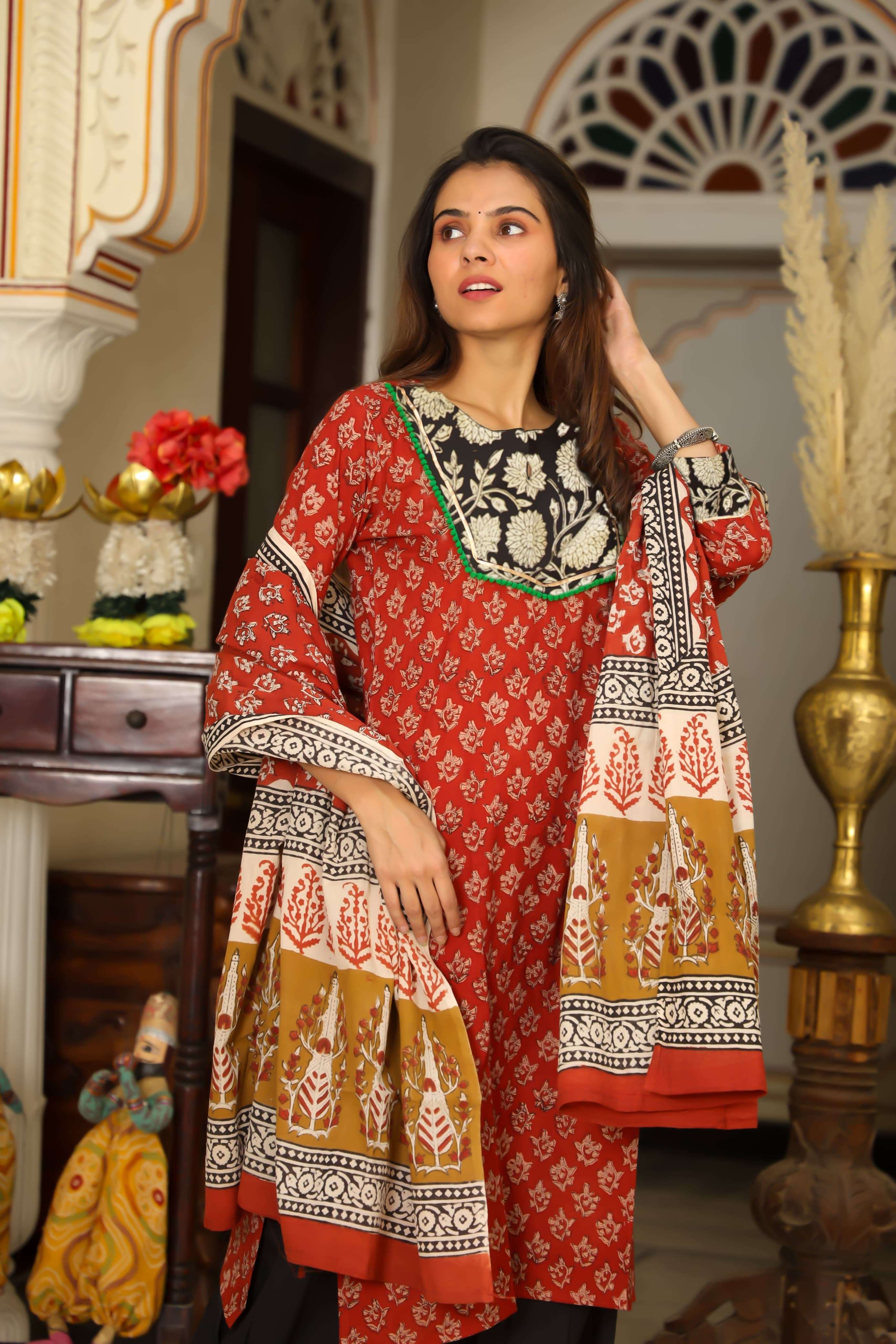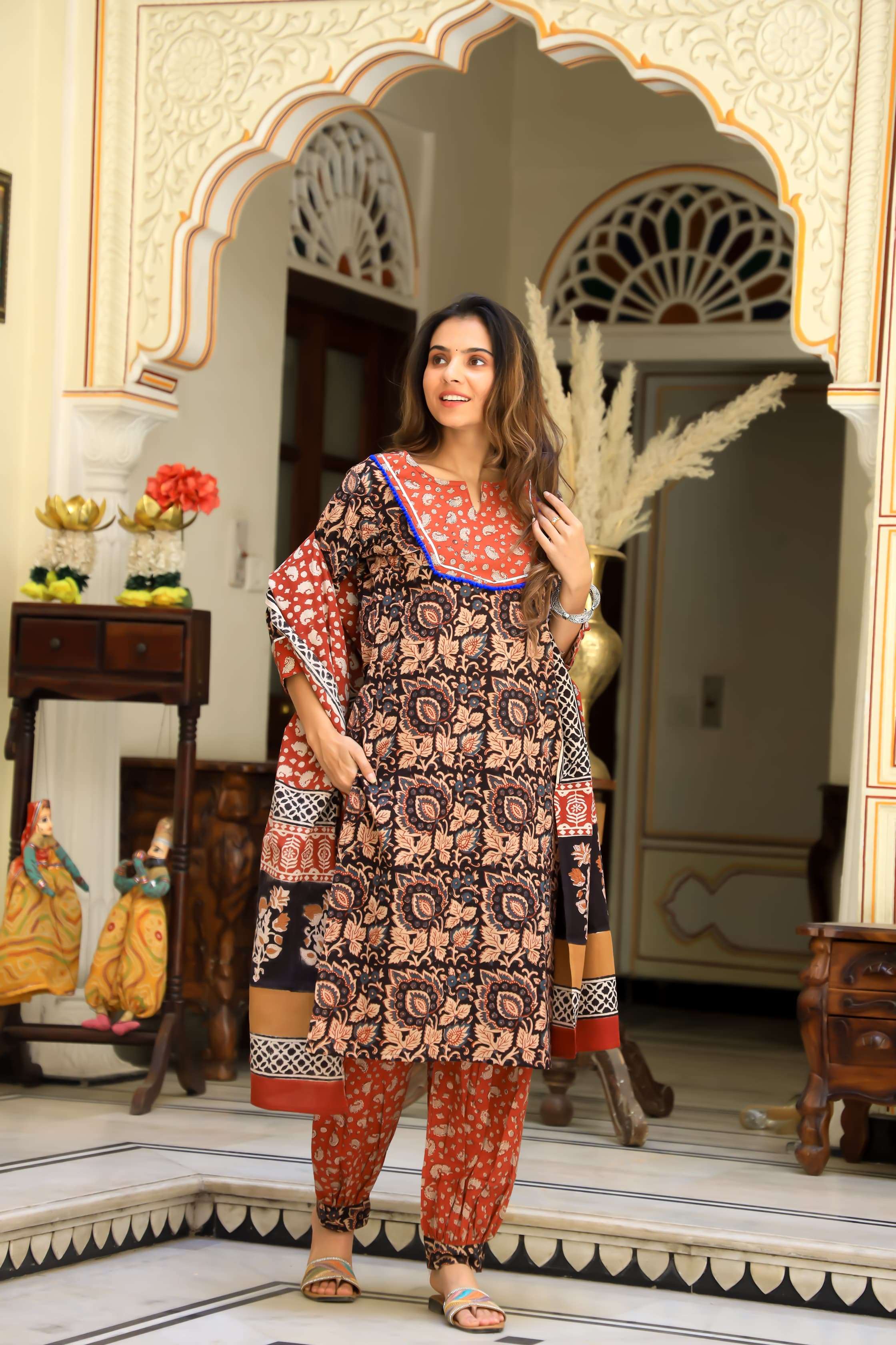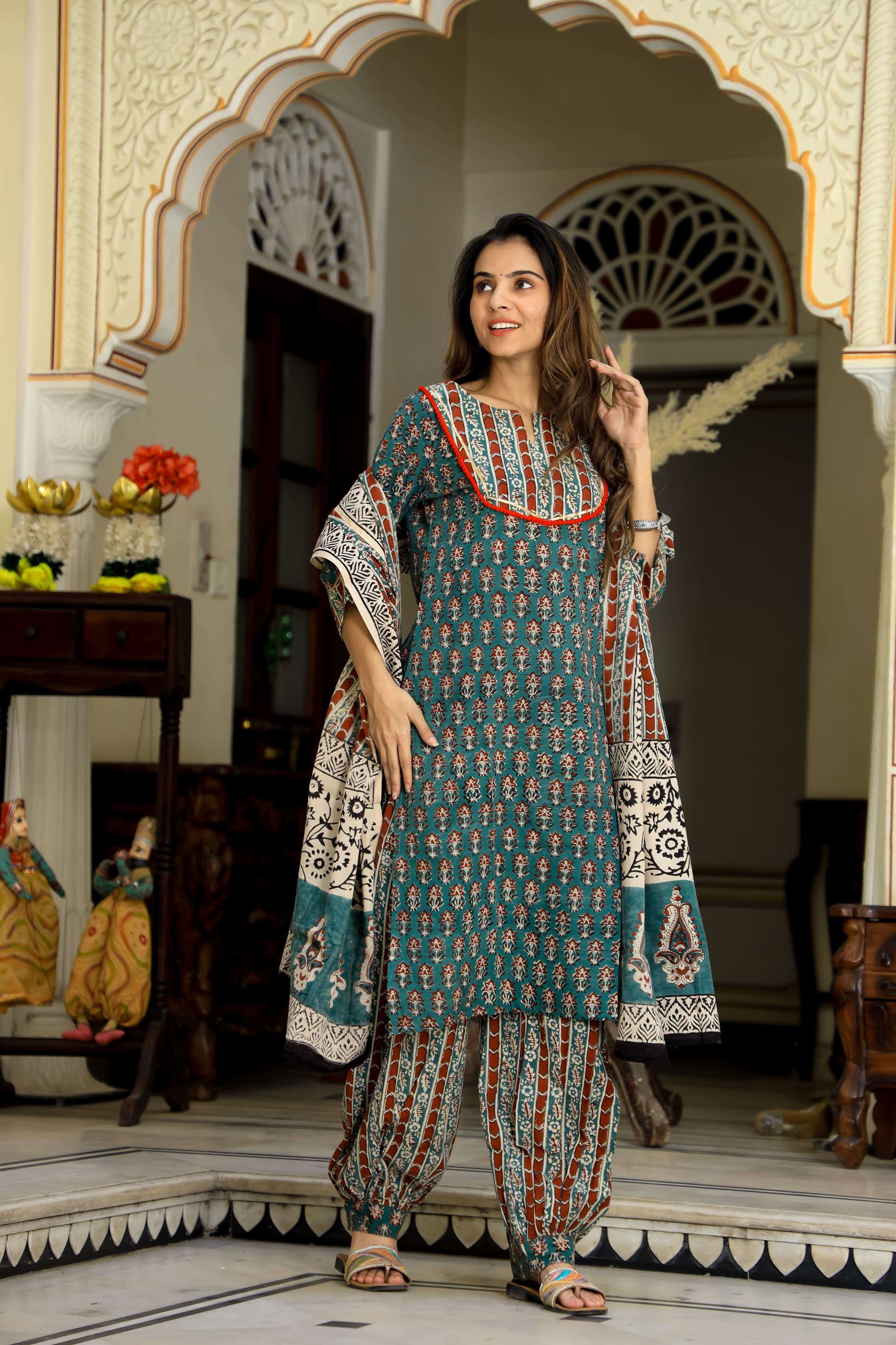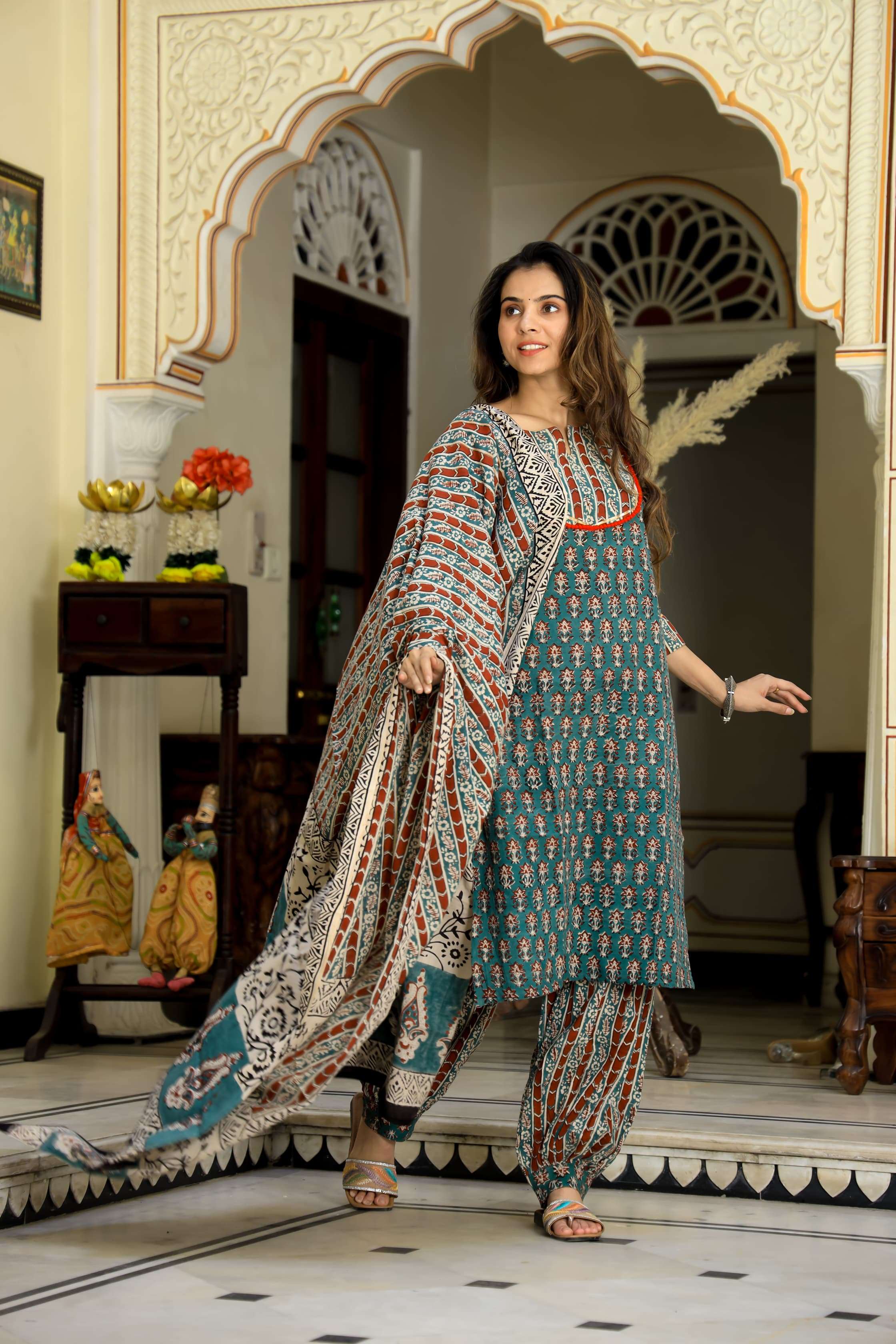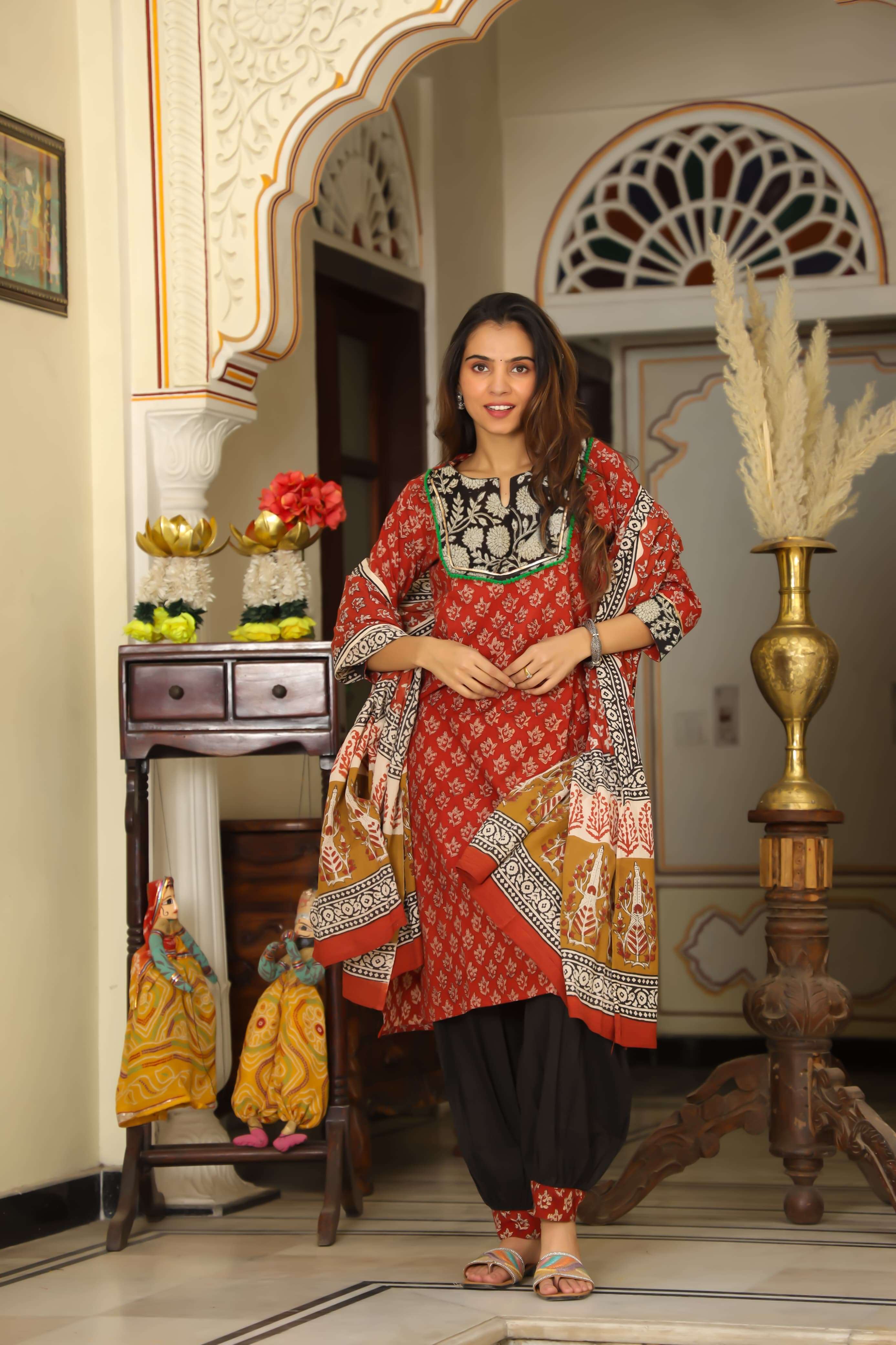 Exclusive Collection of Hand Block Printed Stitched Straight Kurti & Afgani Pant With Dupatta