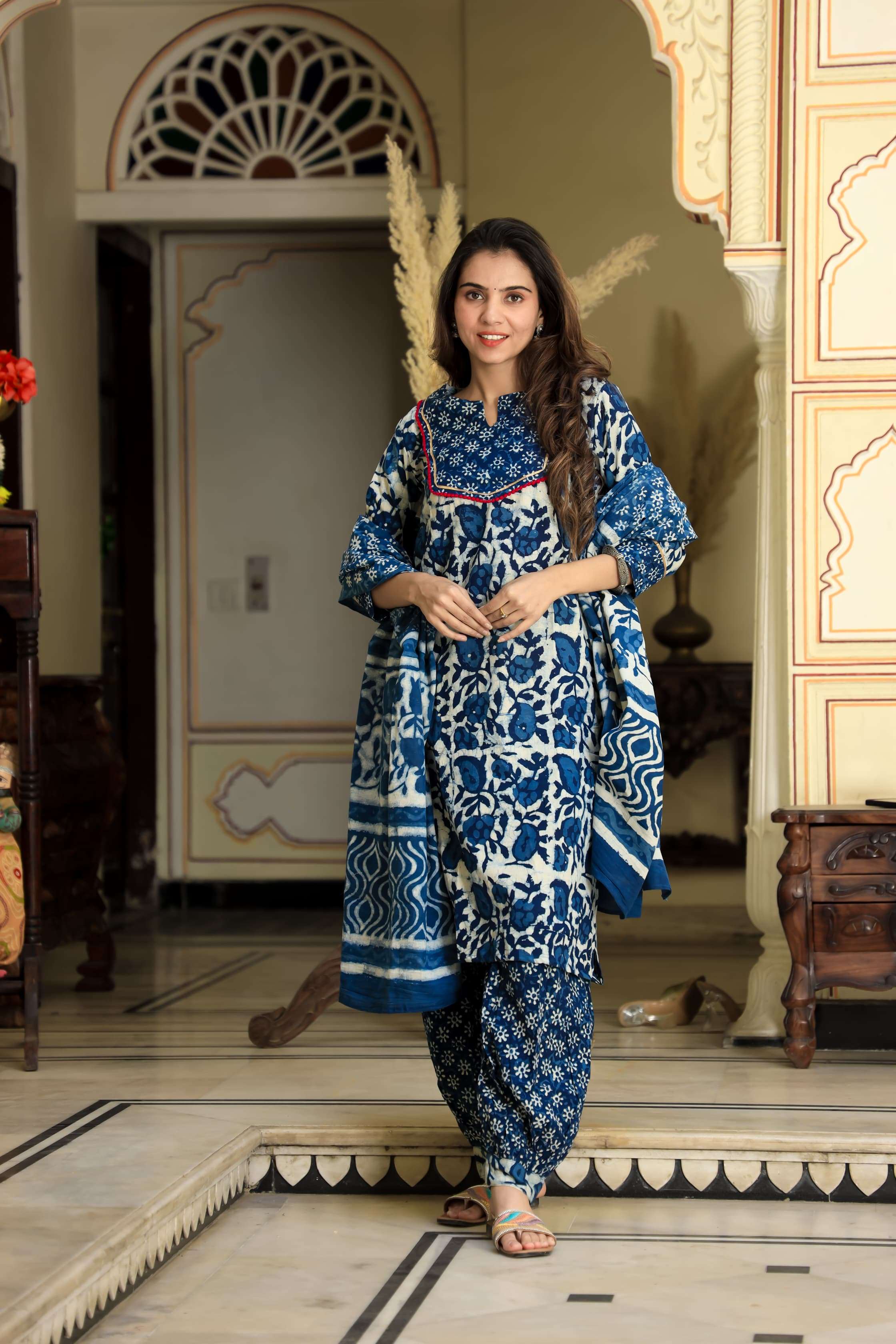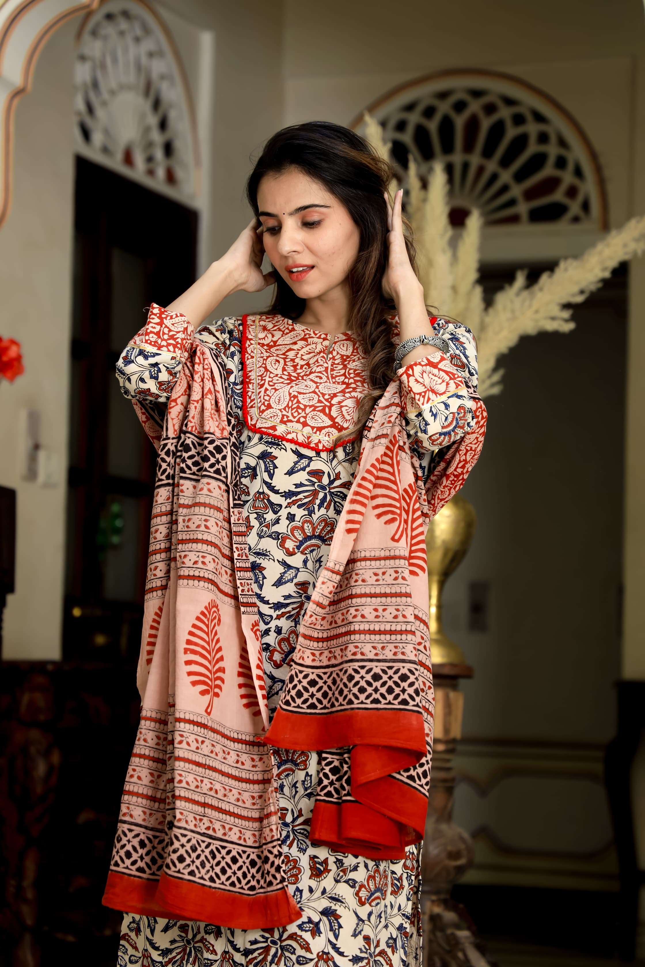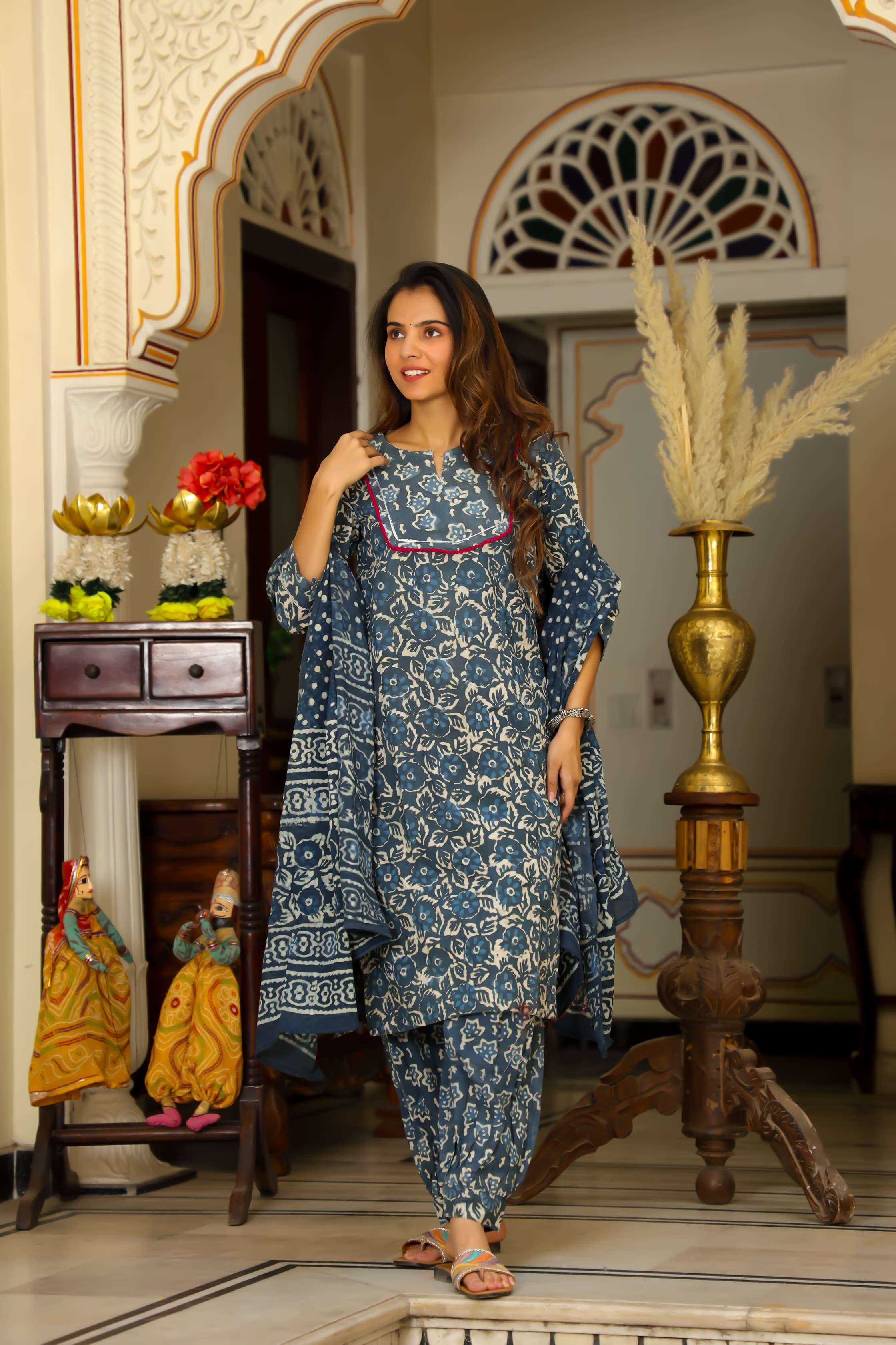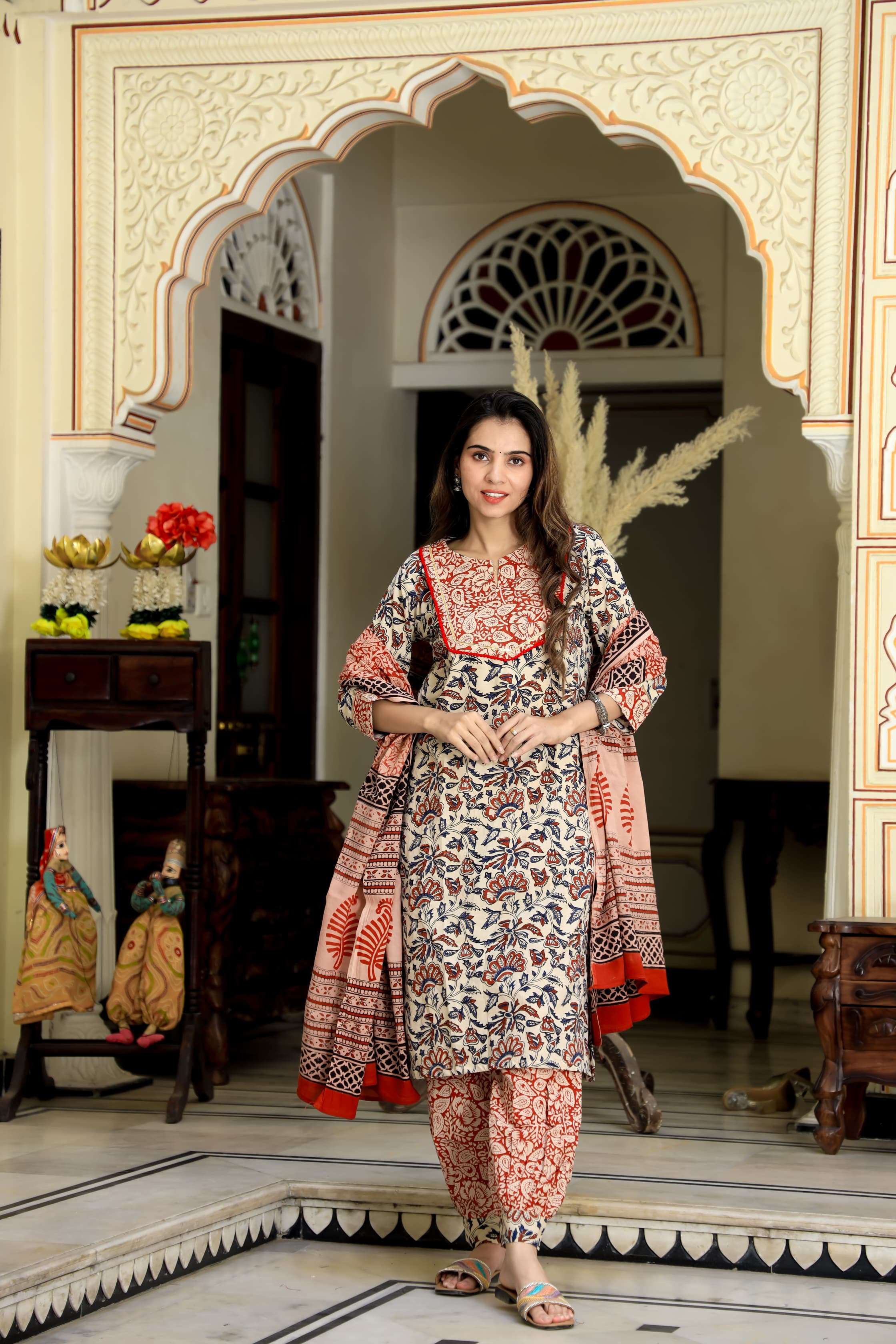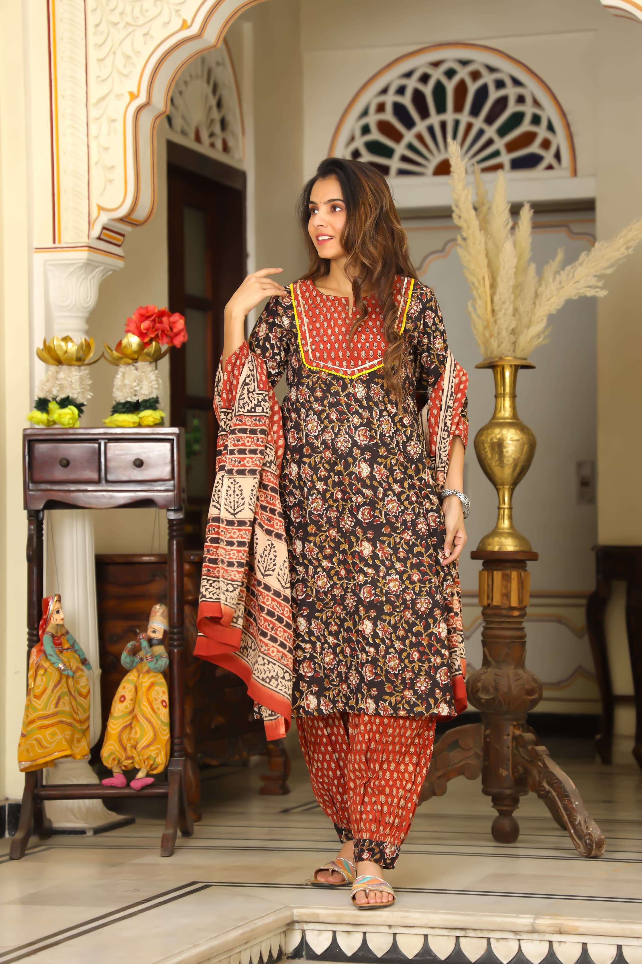 Exclusive Collection of Hand Block Printed Stitched Straight Kurti & Afgani Pant With Dupatta