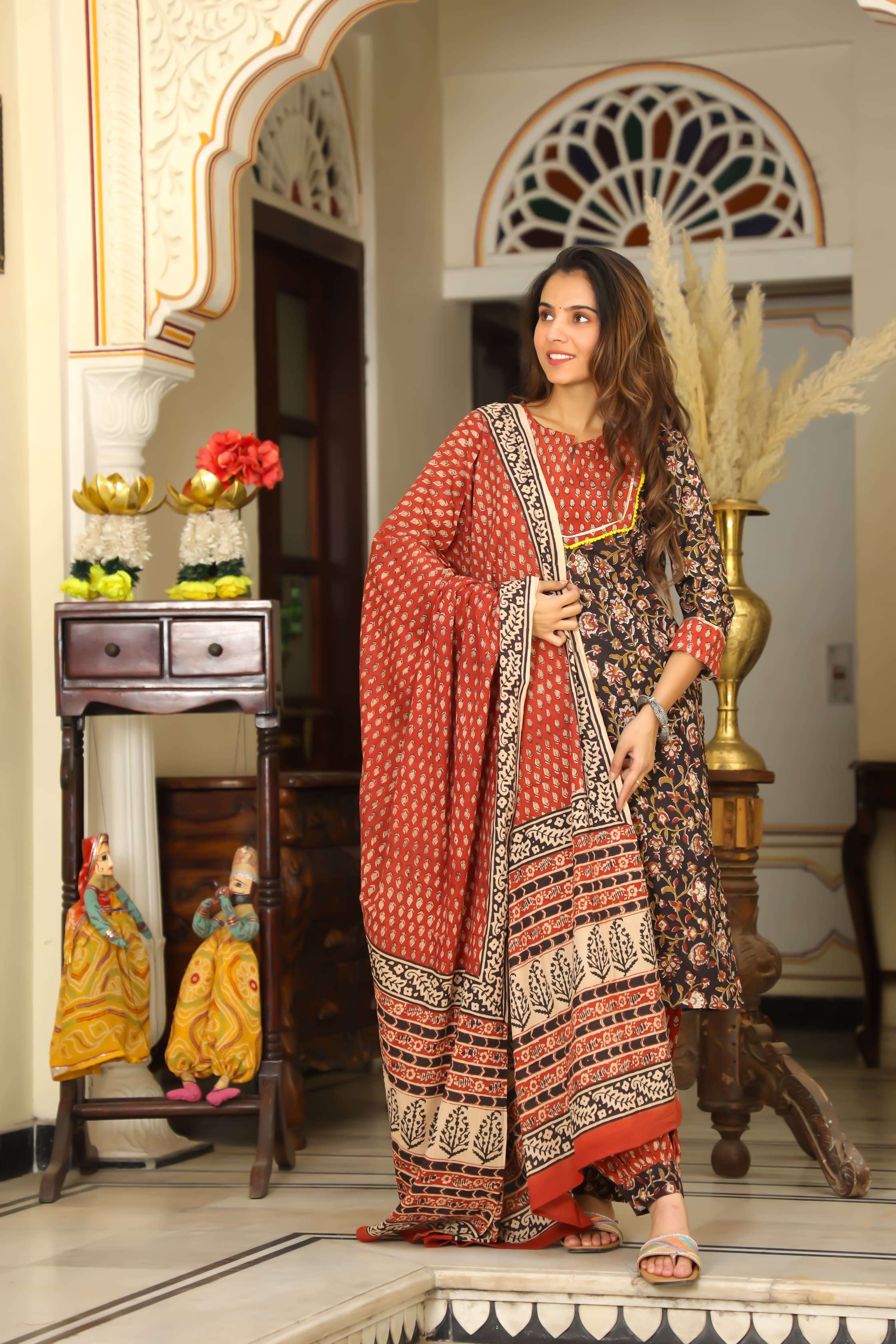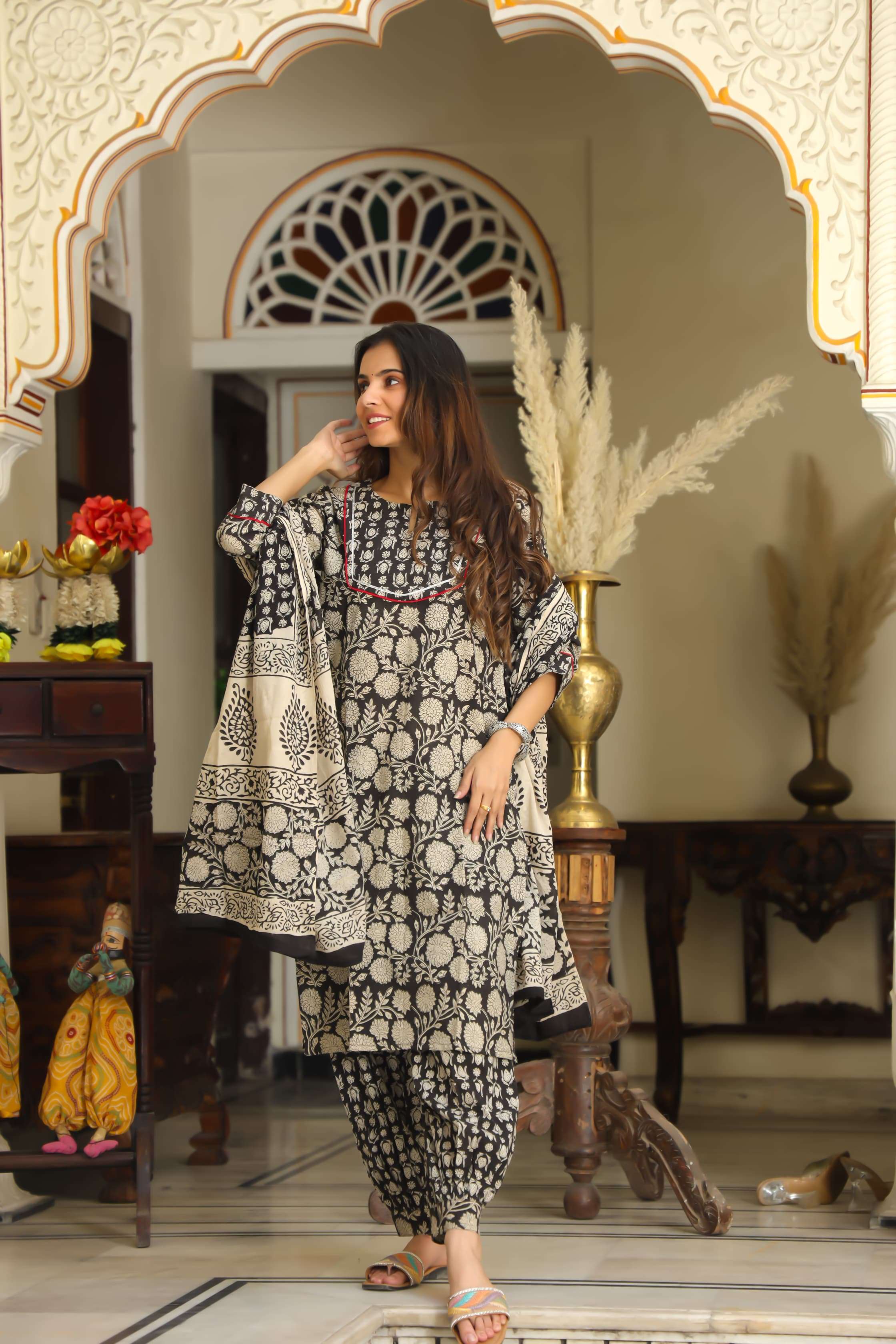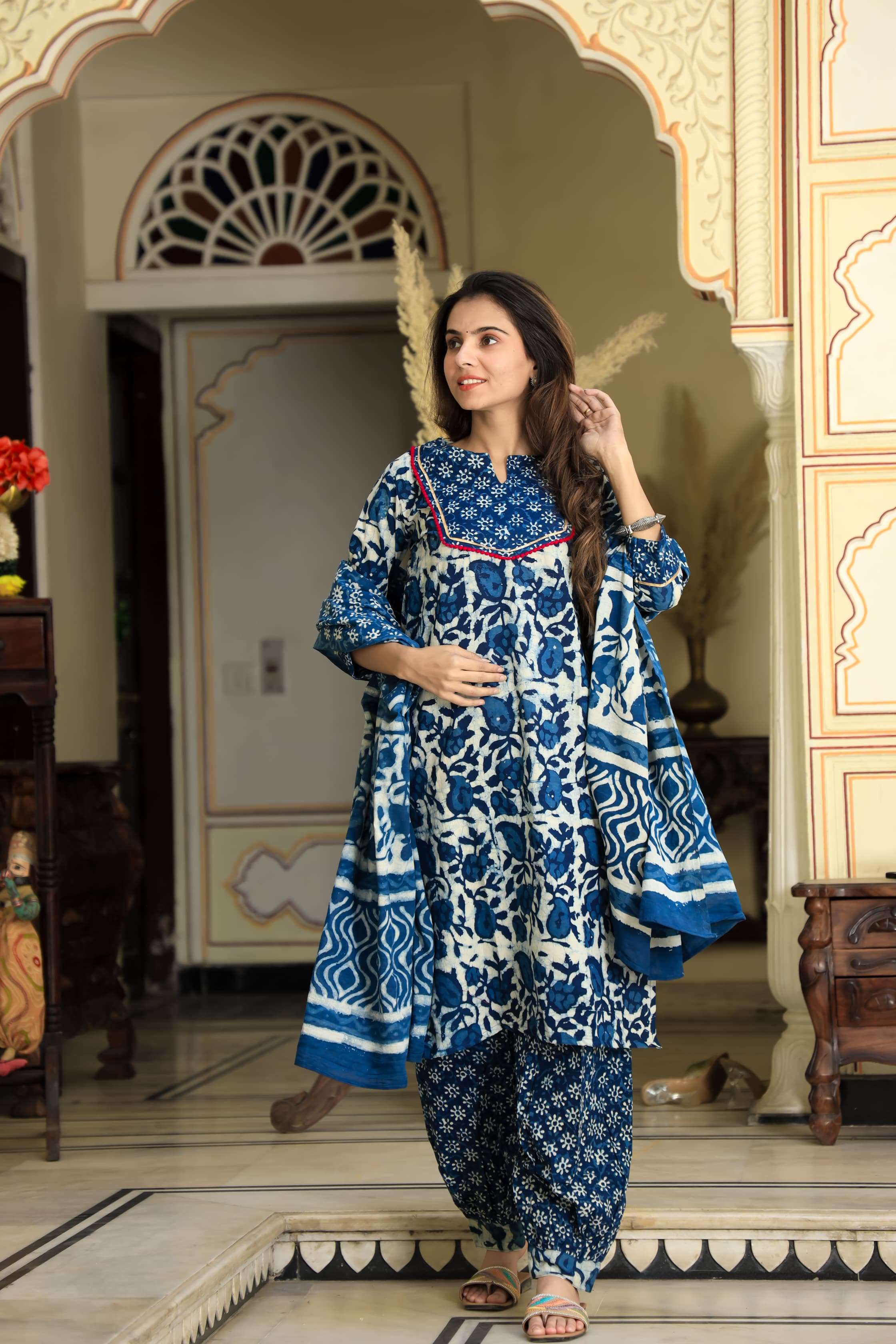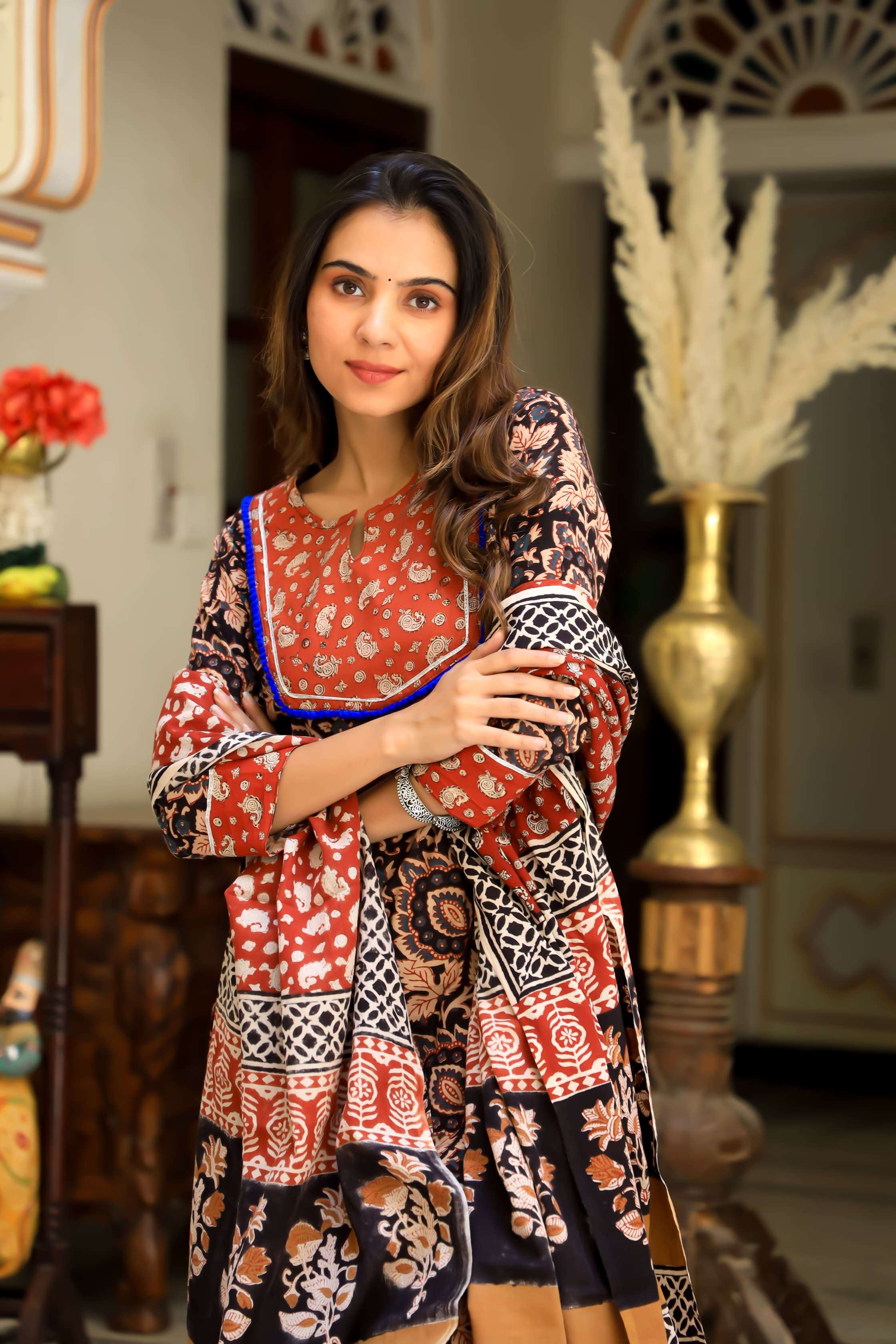 Exclusive Collection of Hand Block Printed Stitched Straight Kurti & Afgani Pant With Dupatta