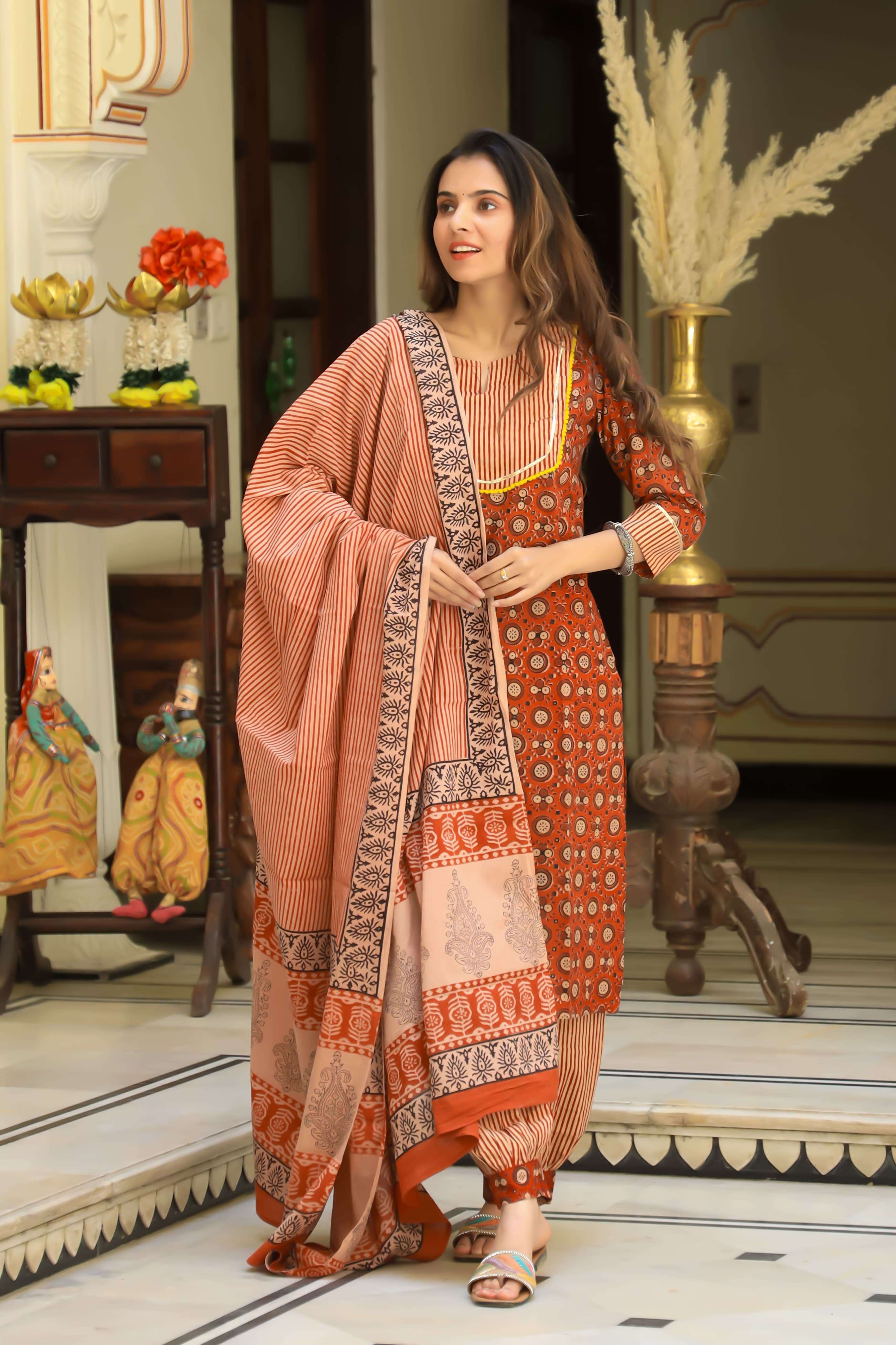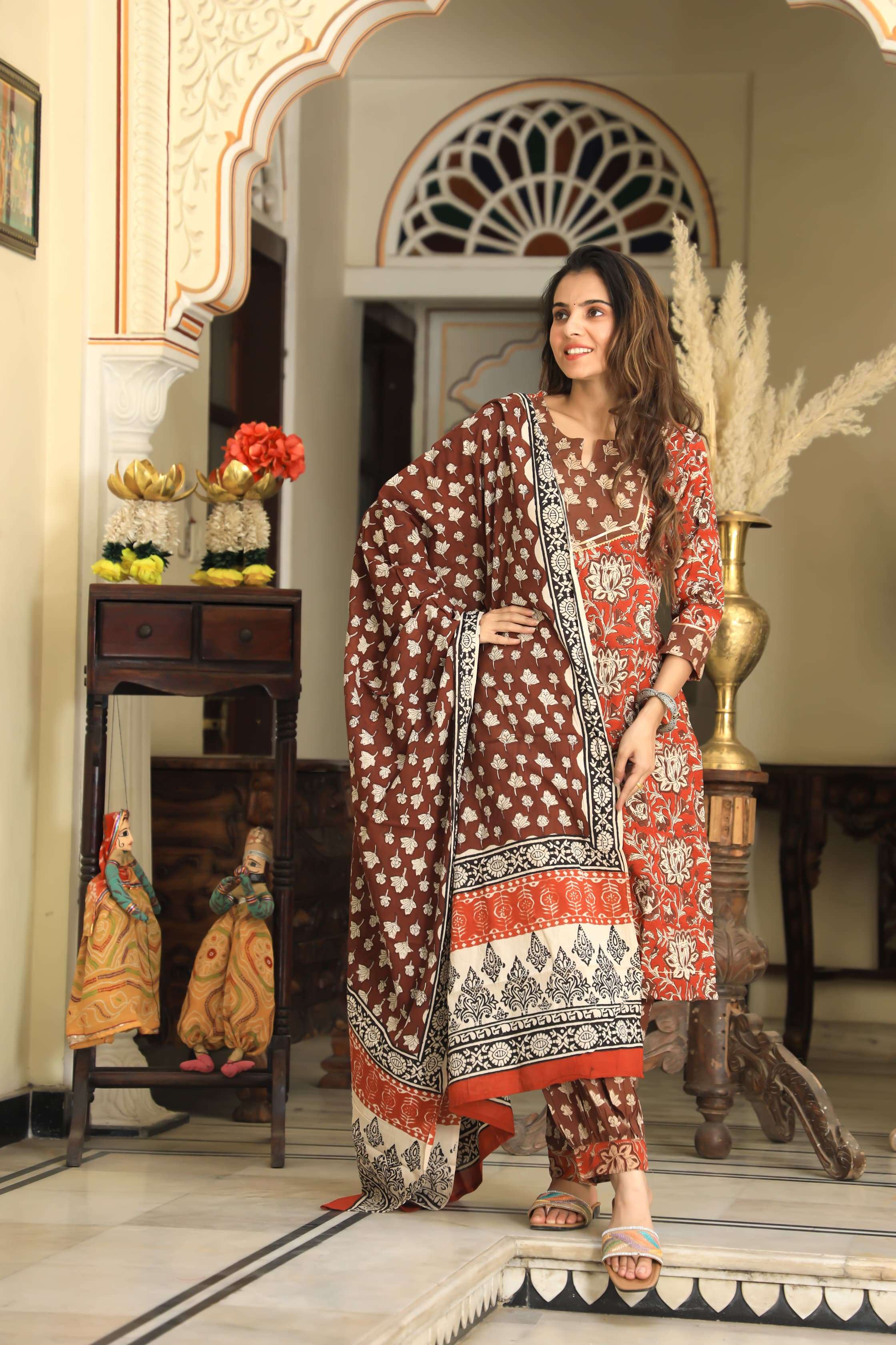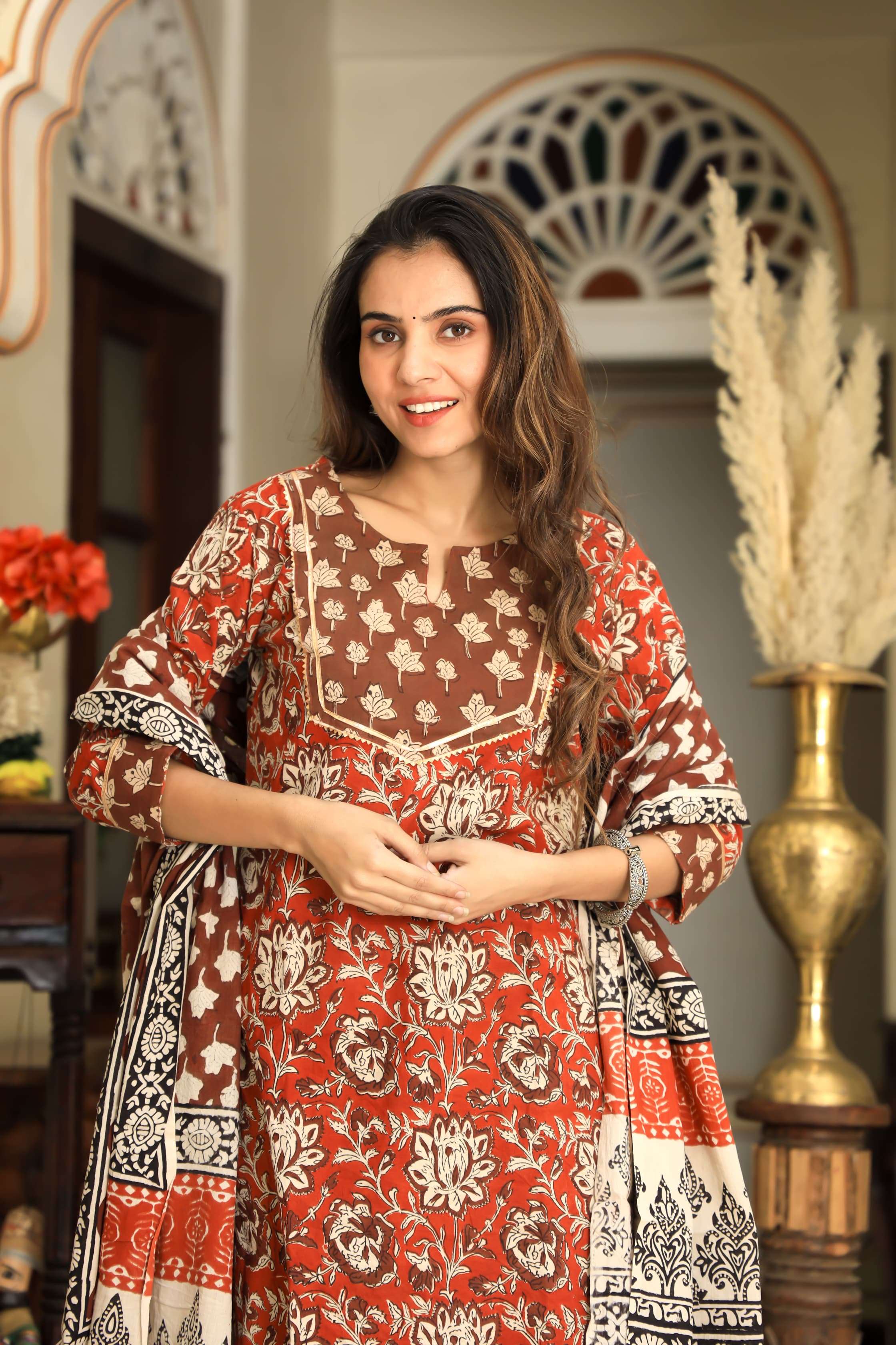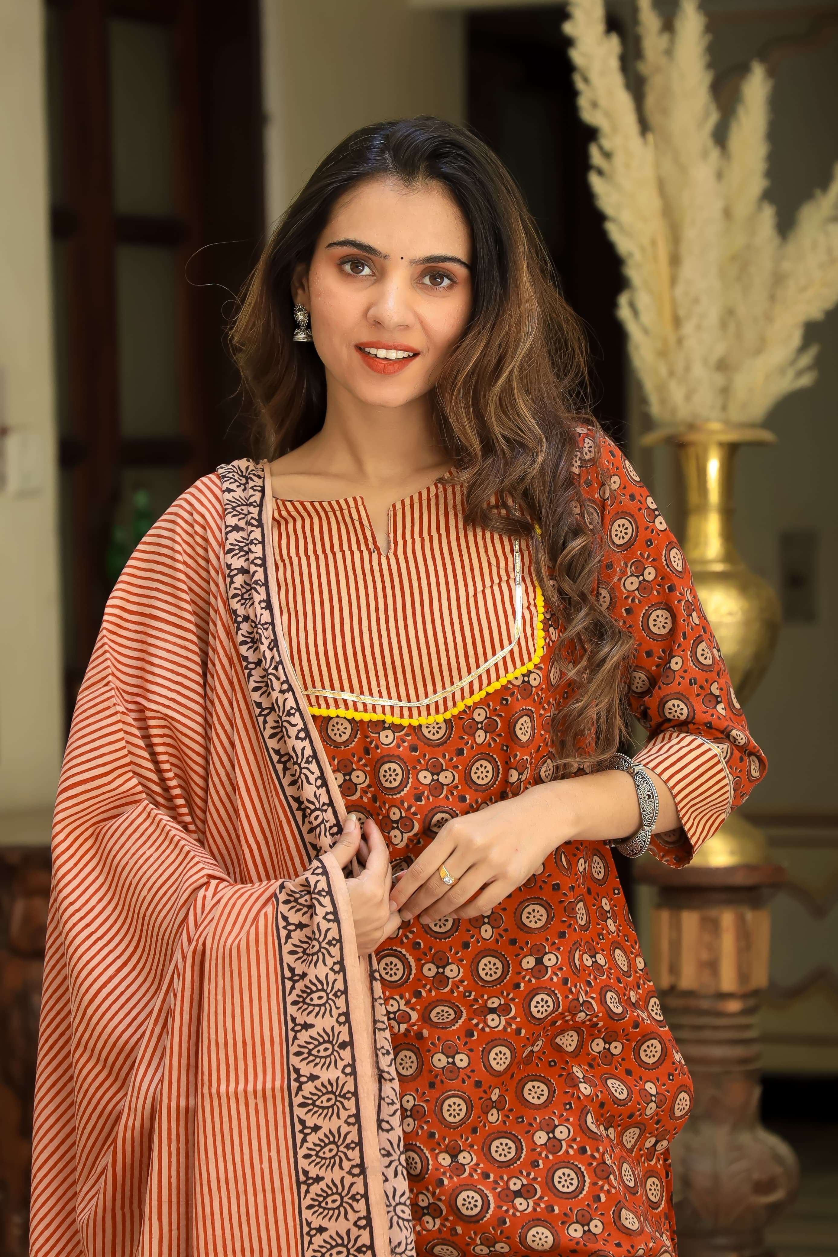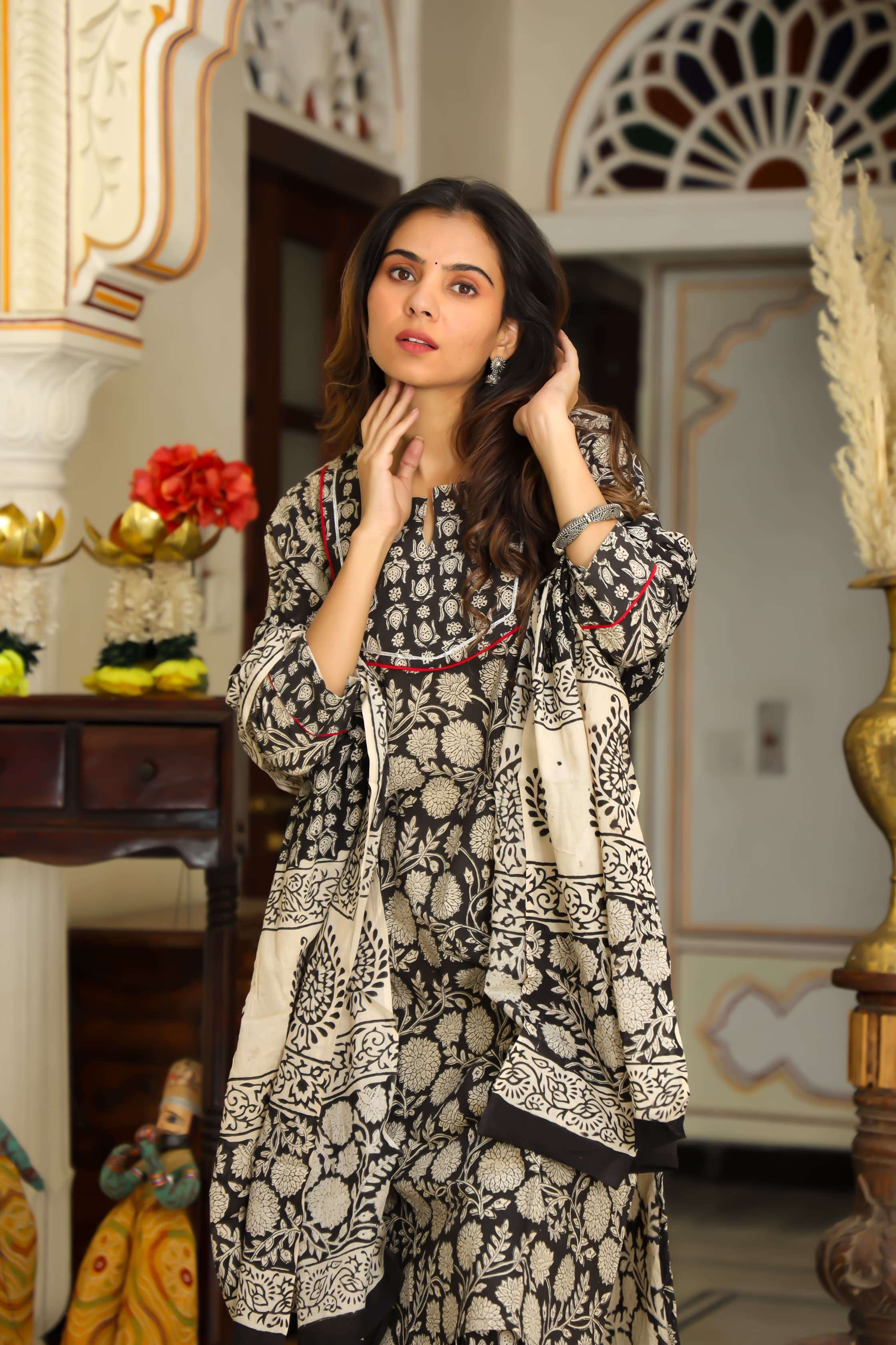 Exclusive Collection of Hand Block Printed Stitched Straight Kurti & Afgani Pant With Dupatta
