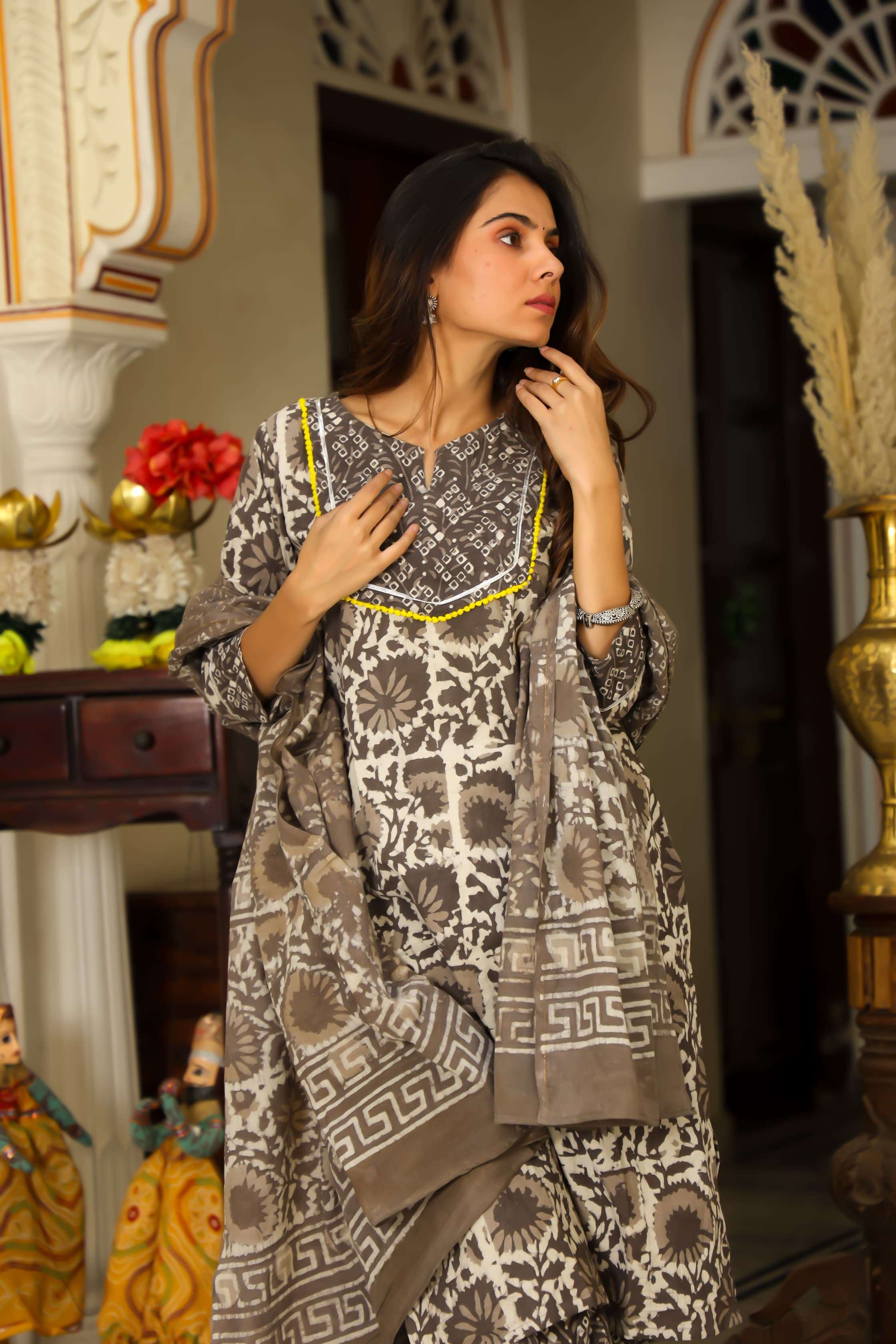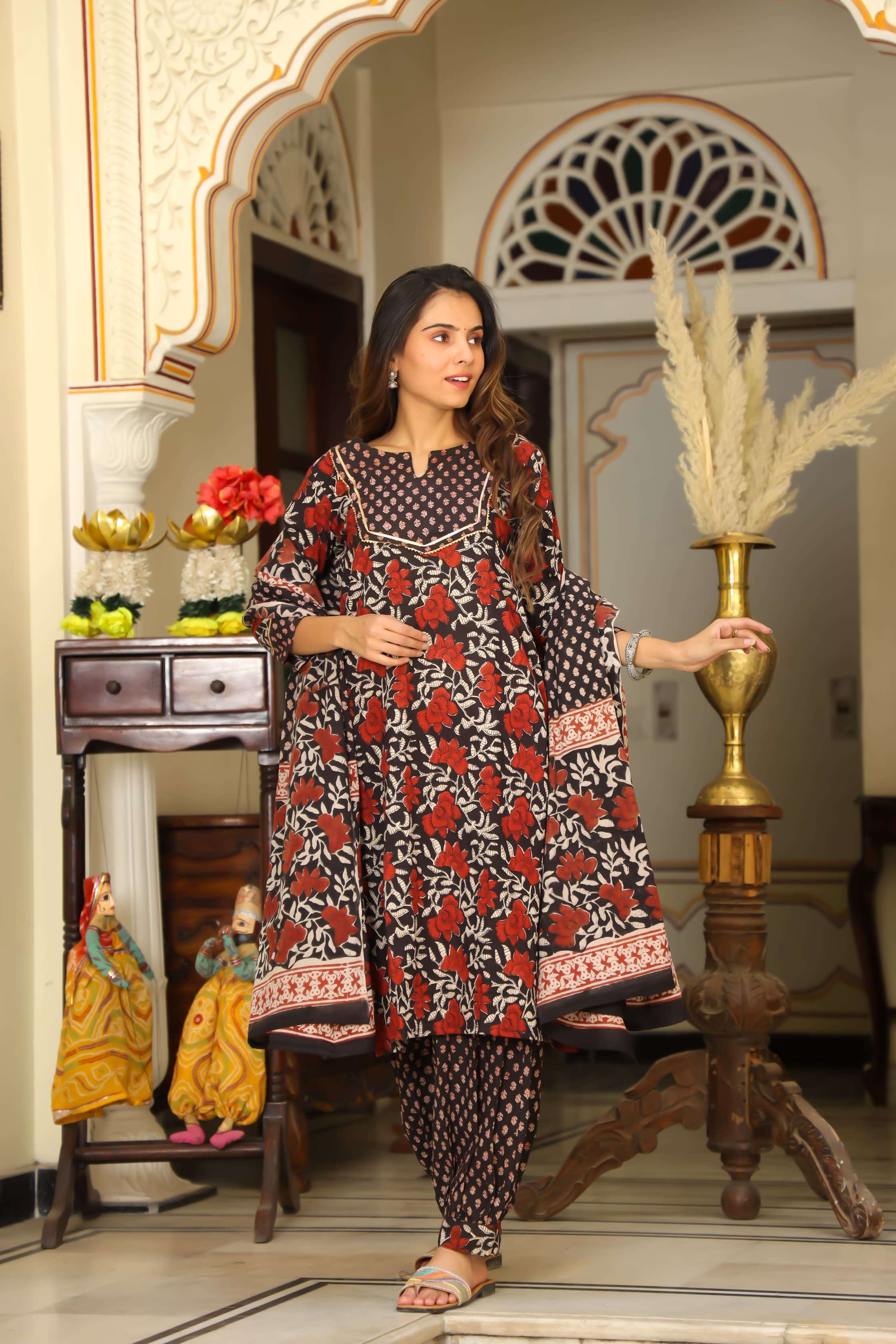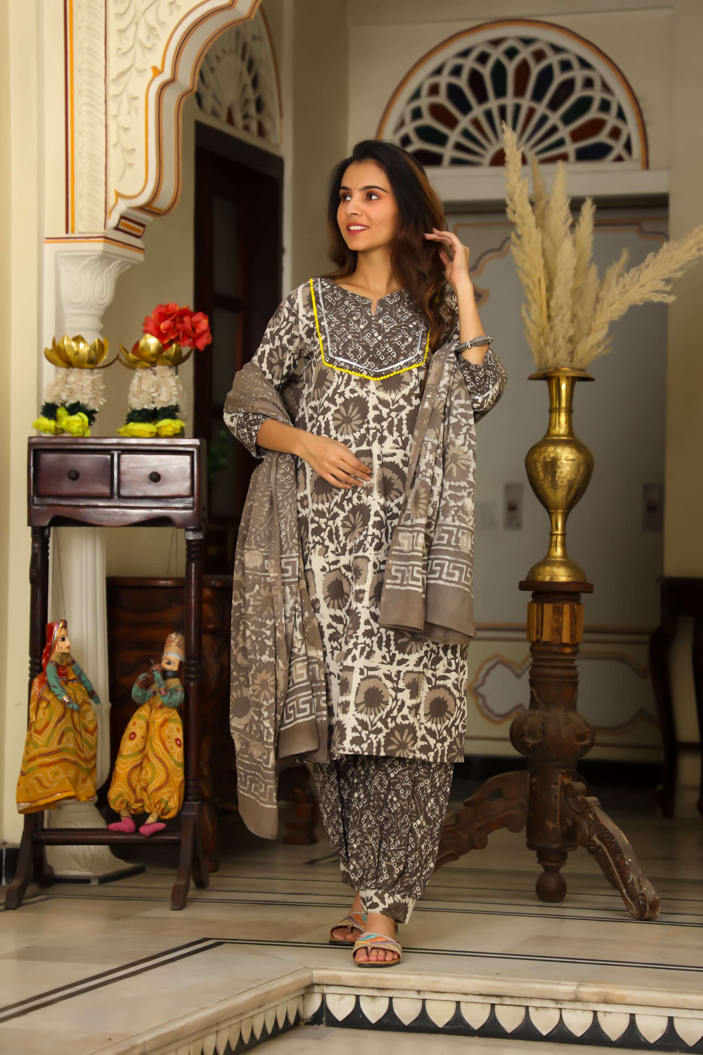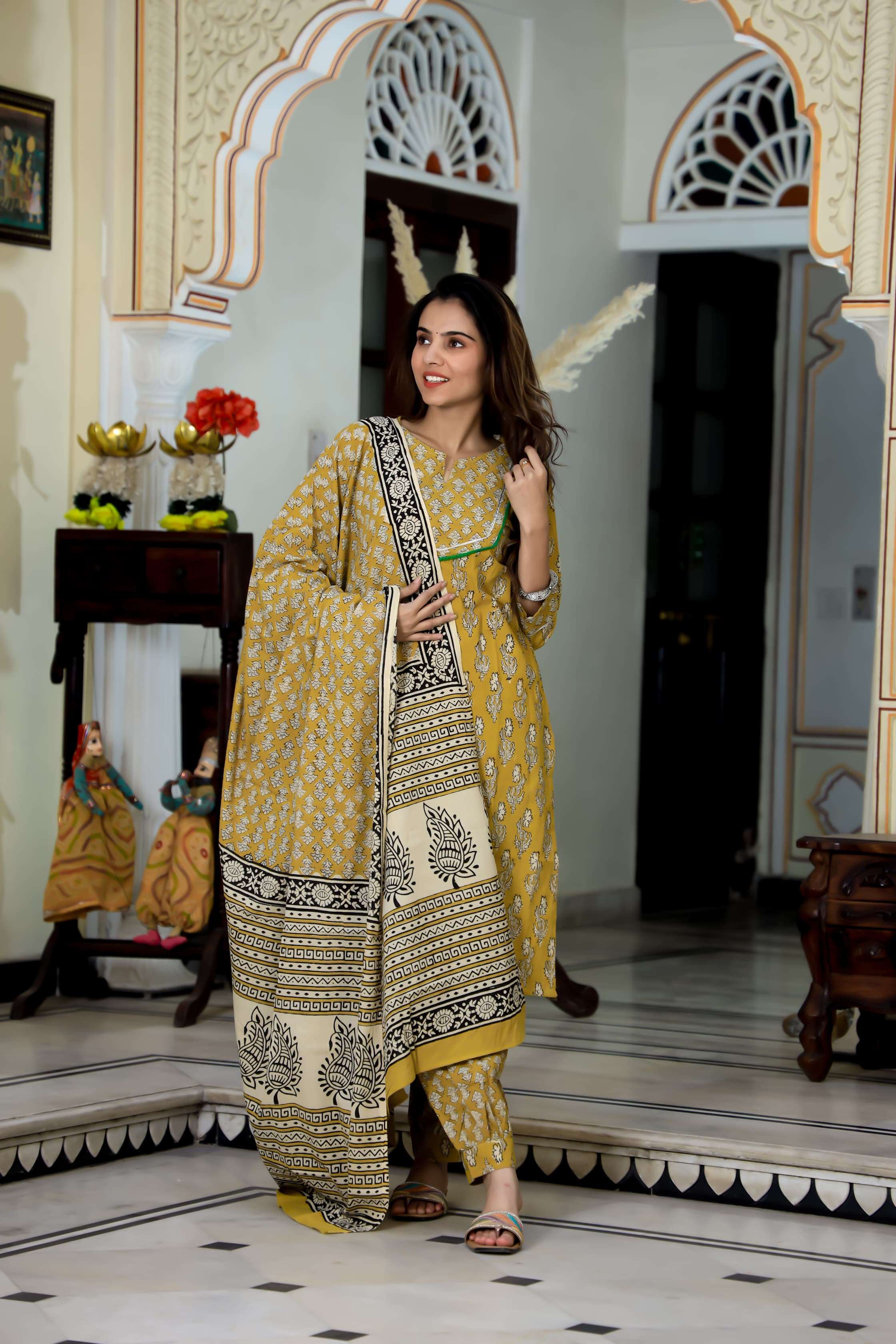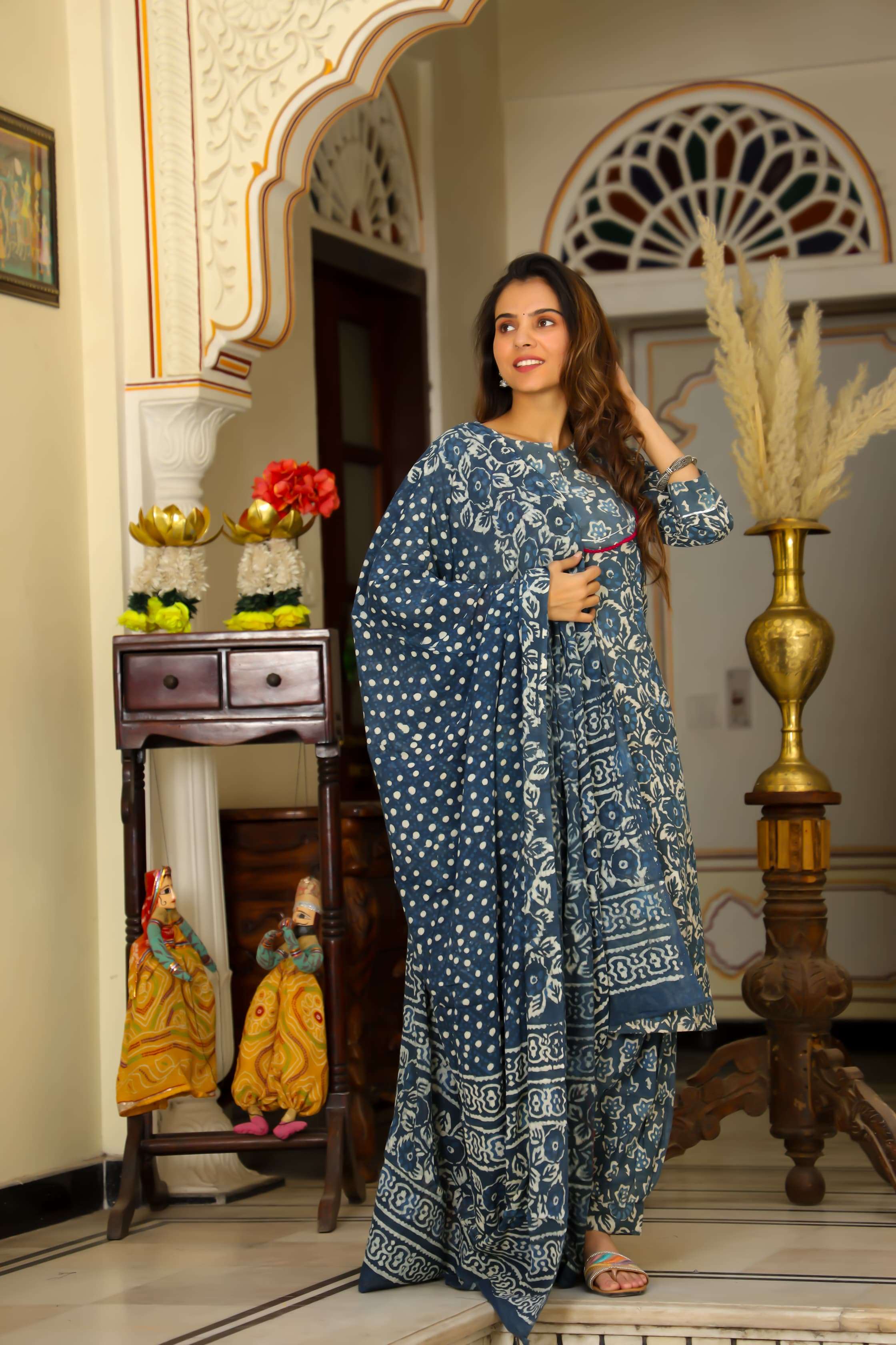 Exclusive Collection of Hand Block Printed Stitched Straight Kurti & Afgani Pant With Dupatta