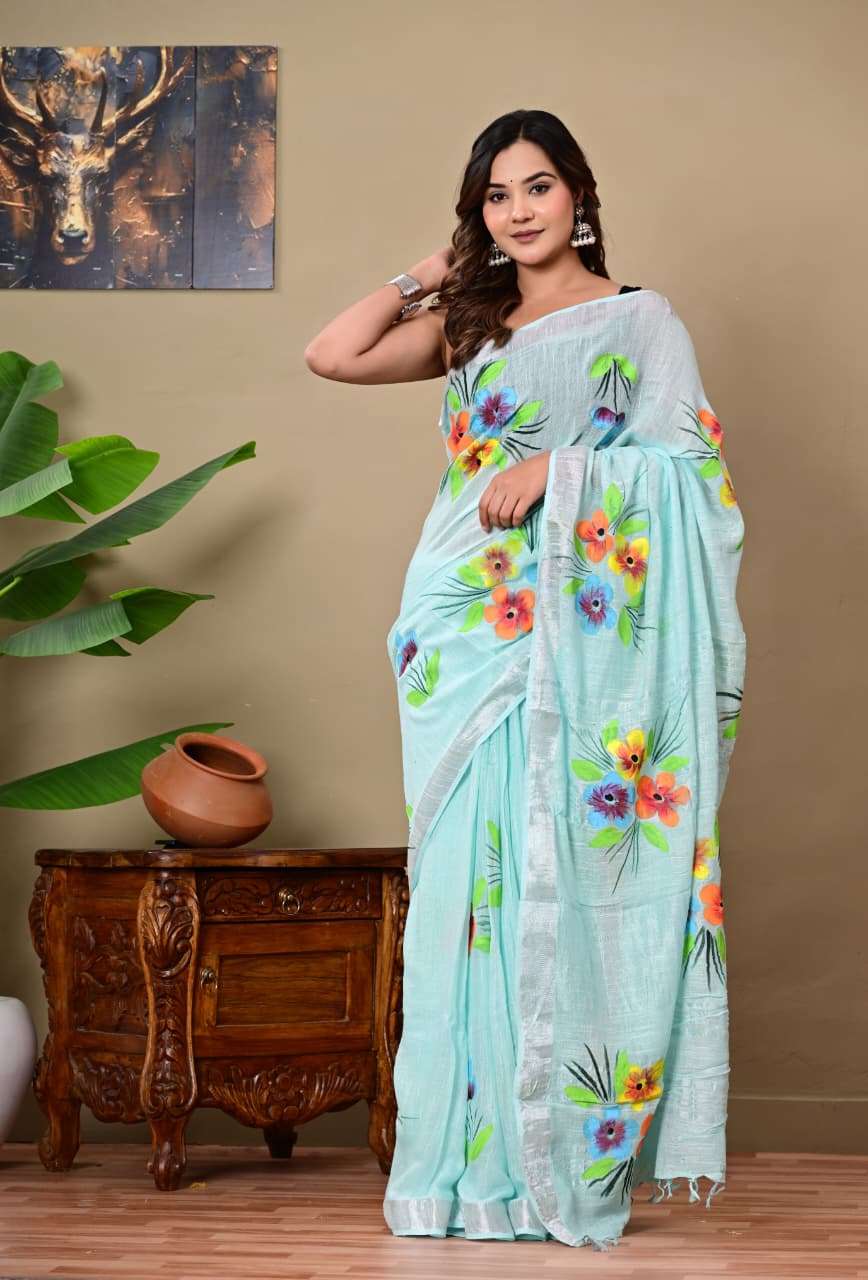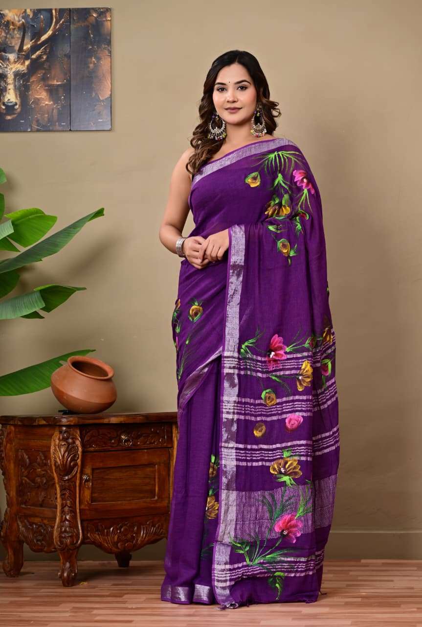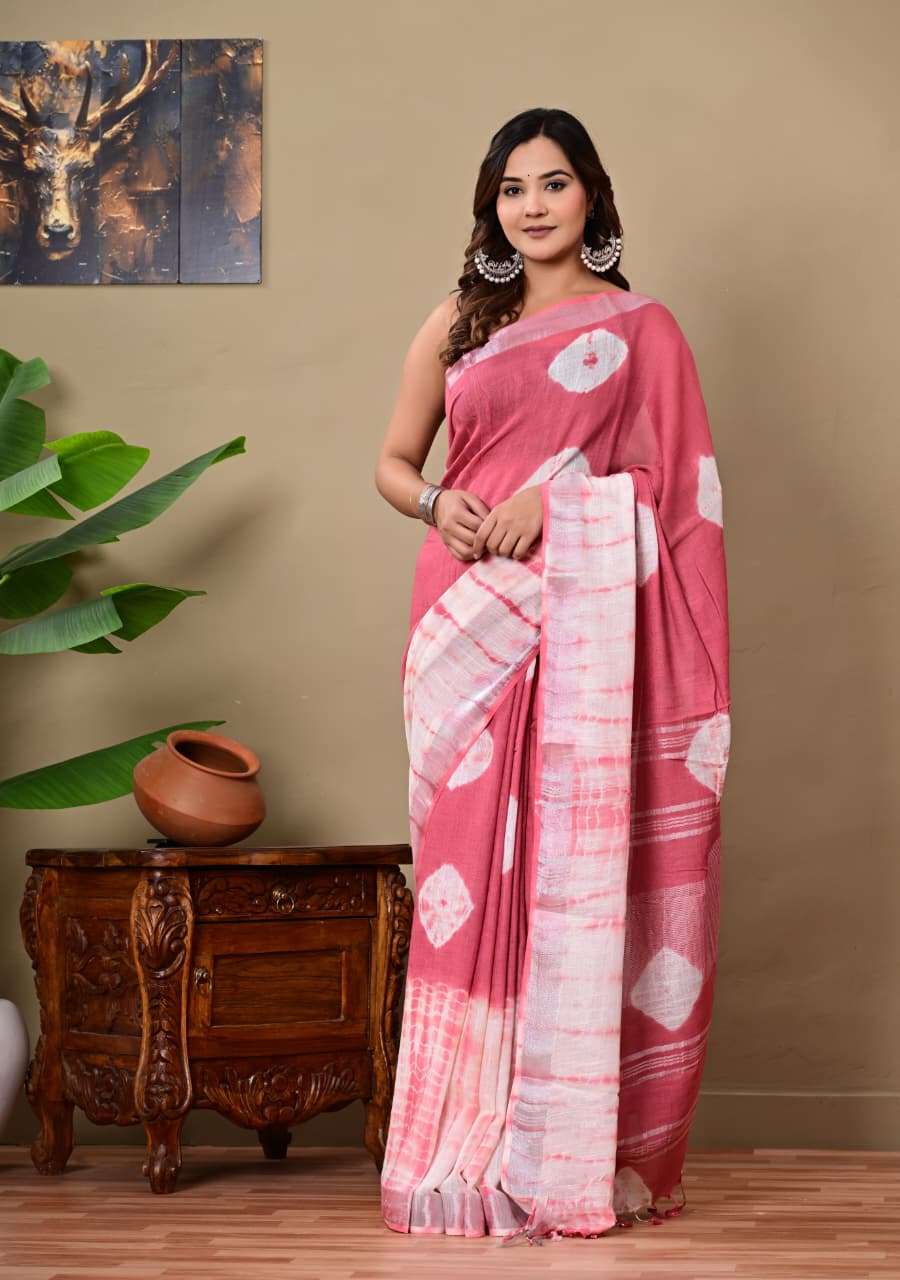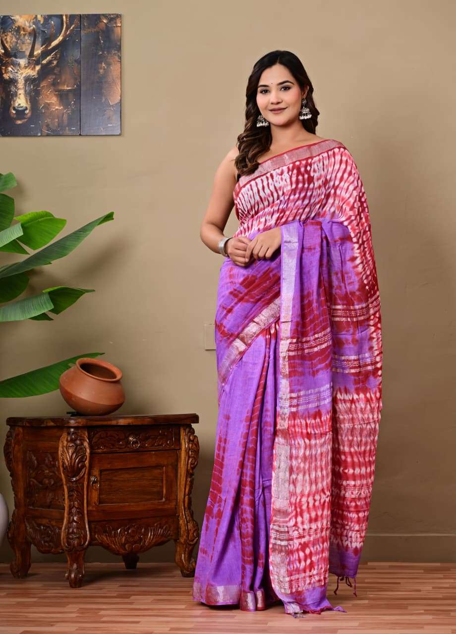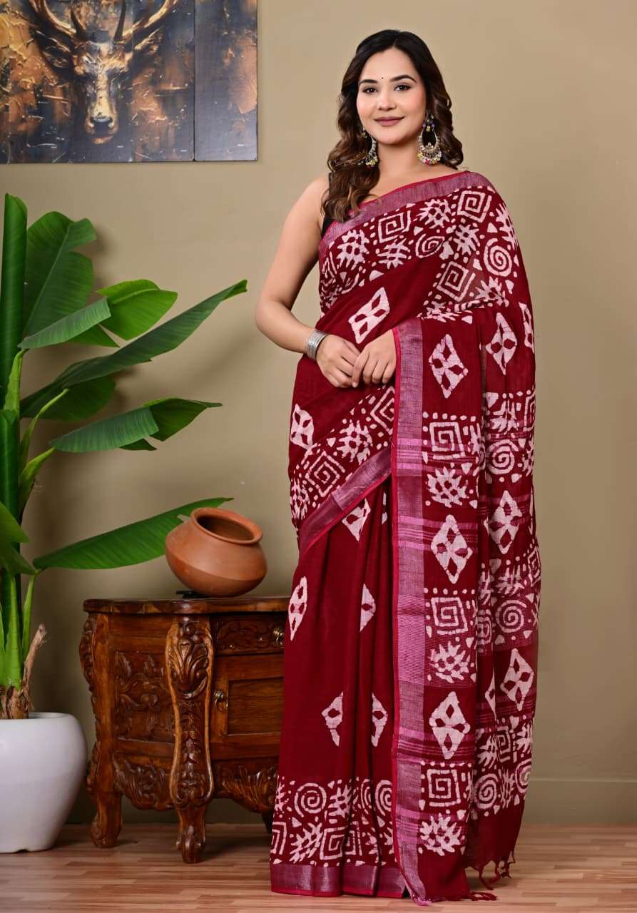 | Catalogue: | Shri Balaji Emporium RF 18852 Bagru Hand Block Printed Linen Saree |