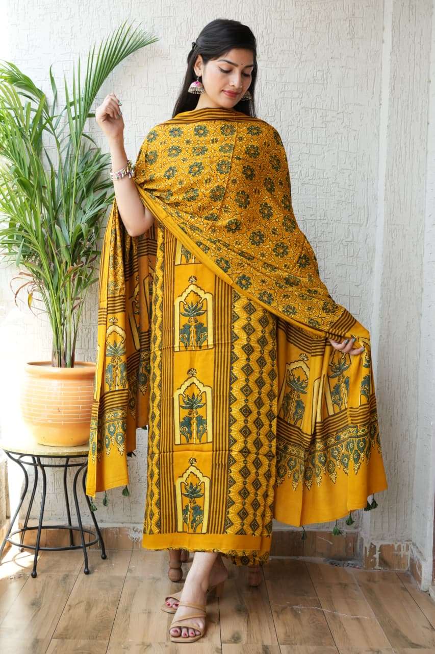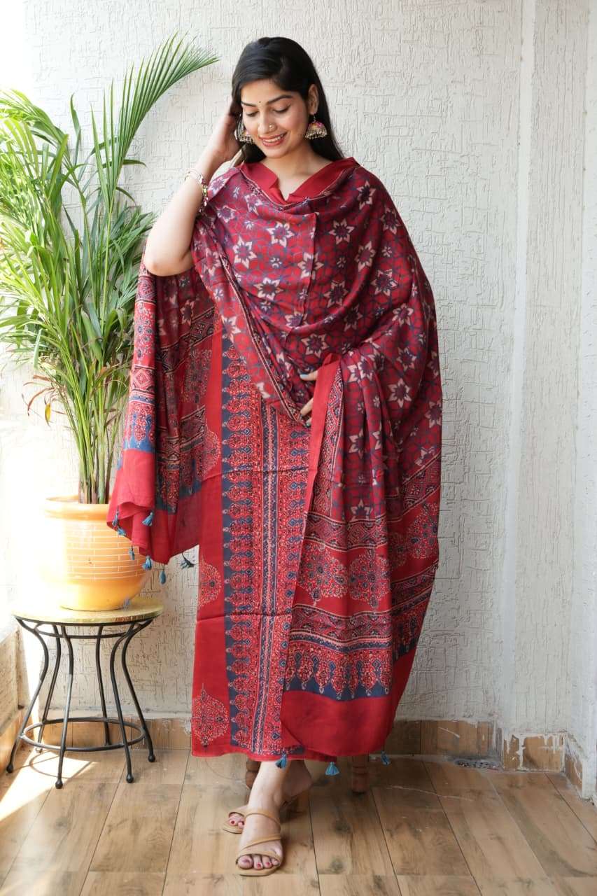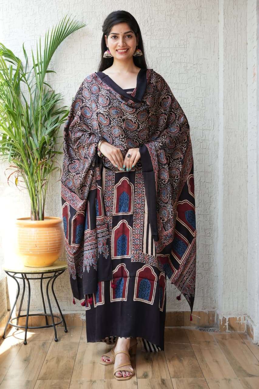| Catalogue: | Shri Balaji Emporium RF 18855 Hand Block Ajrakh Printed Modal Suits |