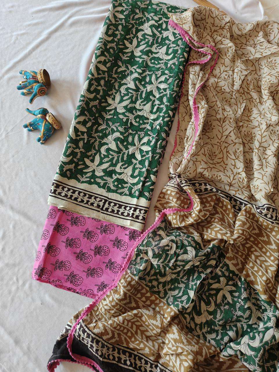 Exclusive new hand block printed cotton suits with cotton duptta with