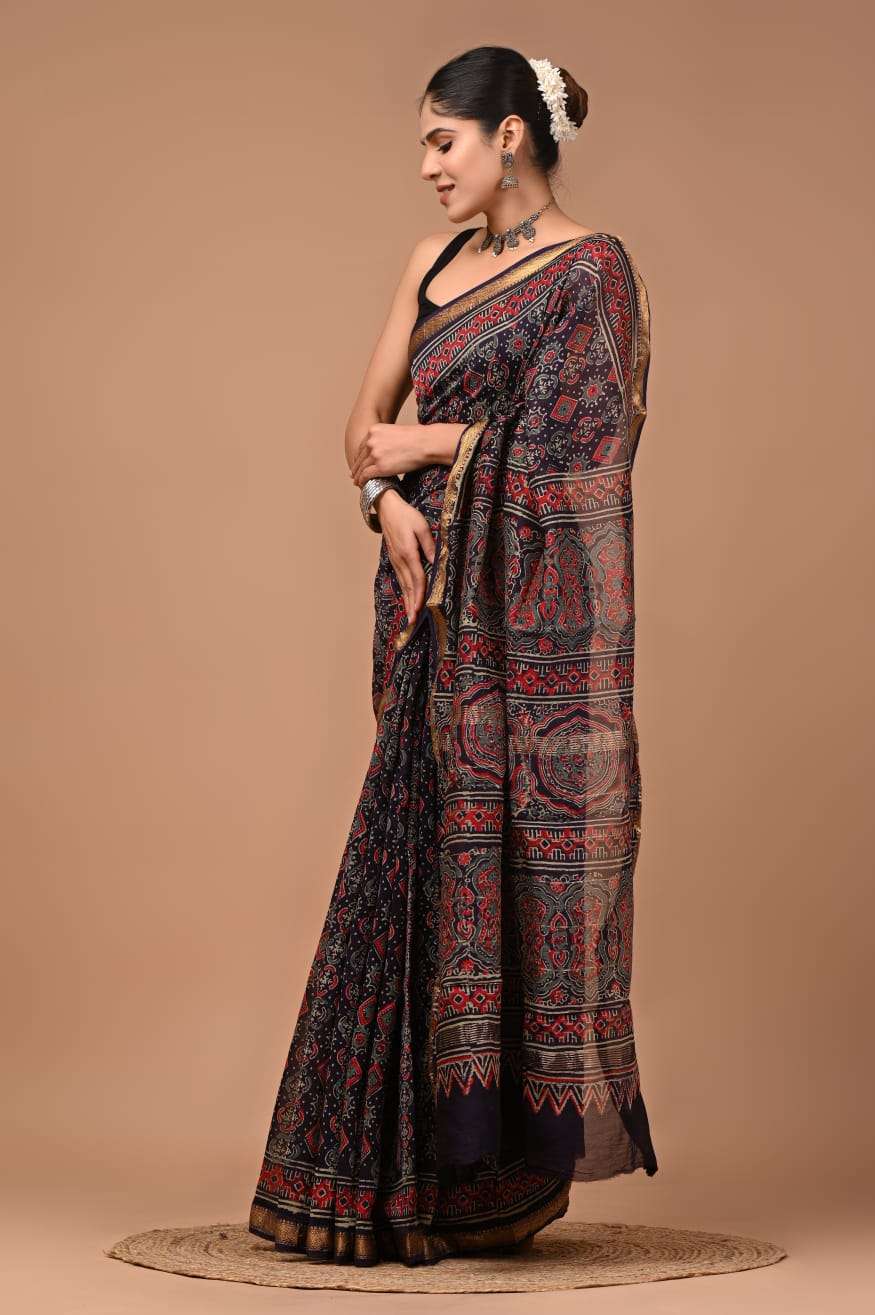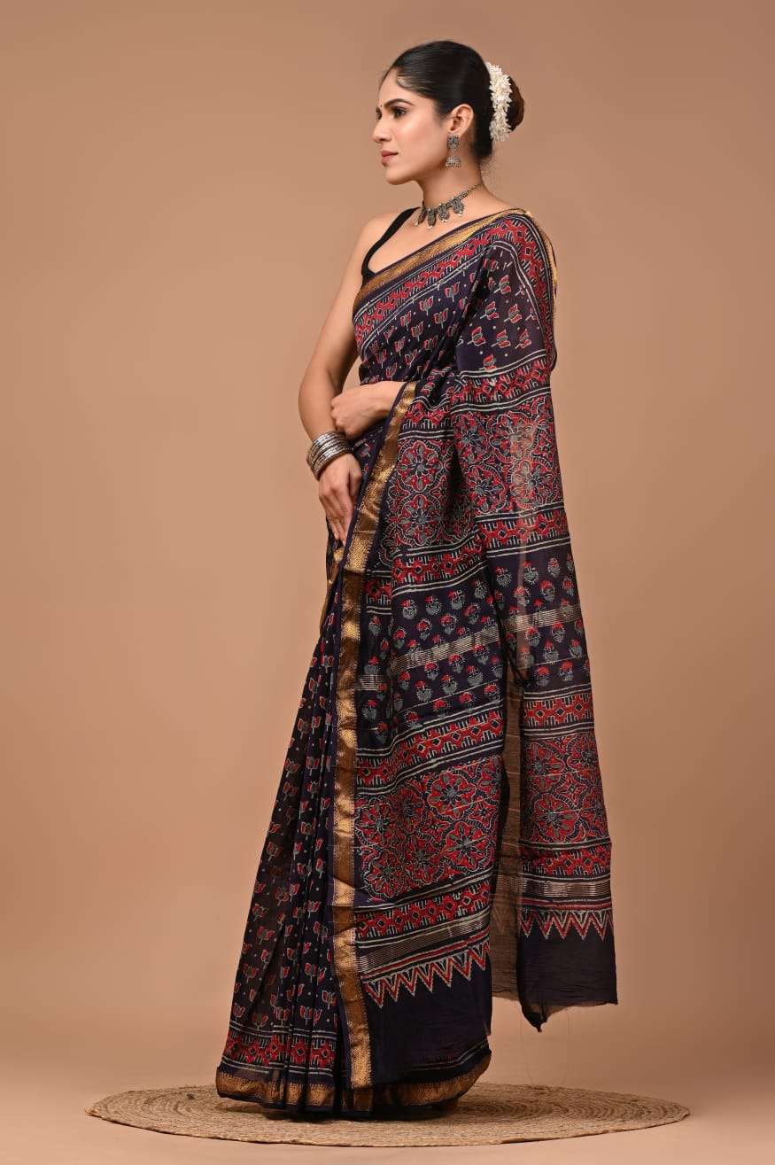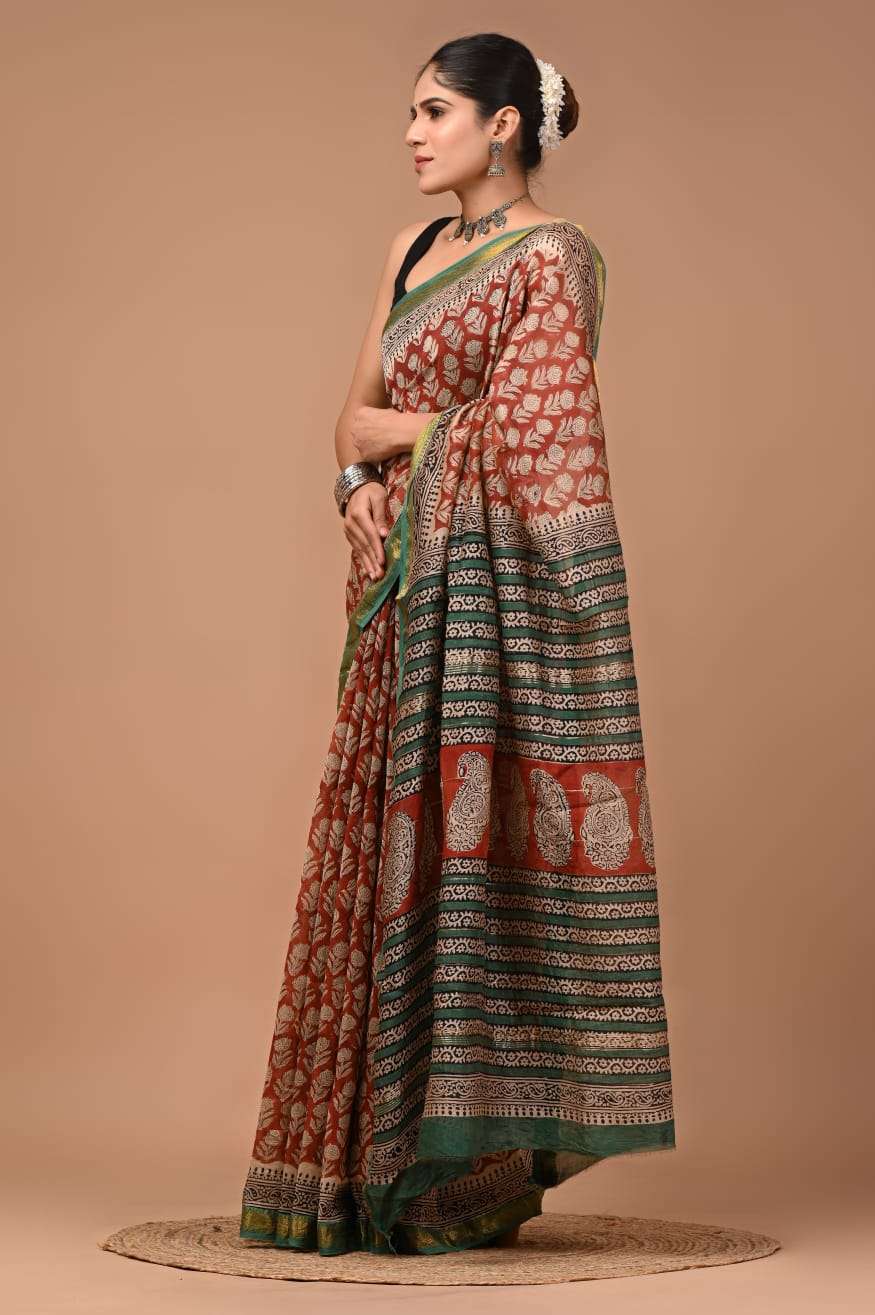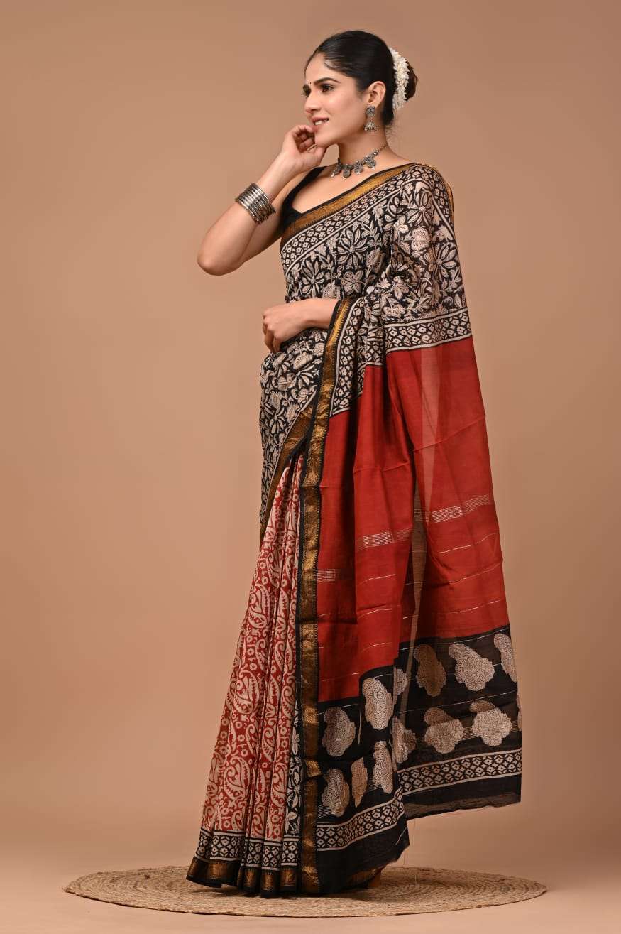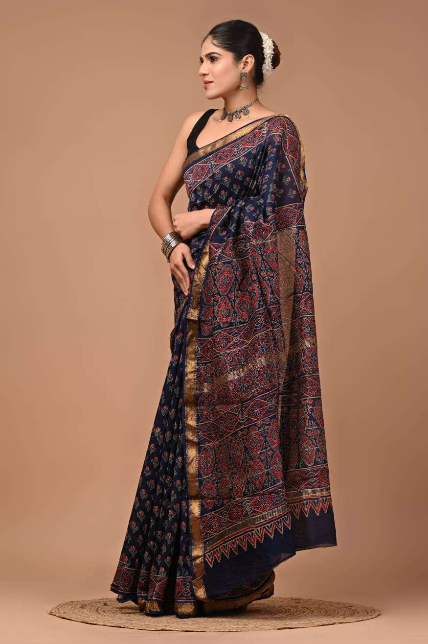 | Catalogue: | Shri Balaji Emporium RF 19260 Hand Block Printed Maheshwari Silk Saree |