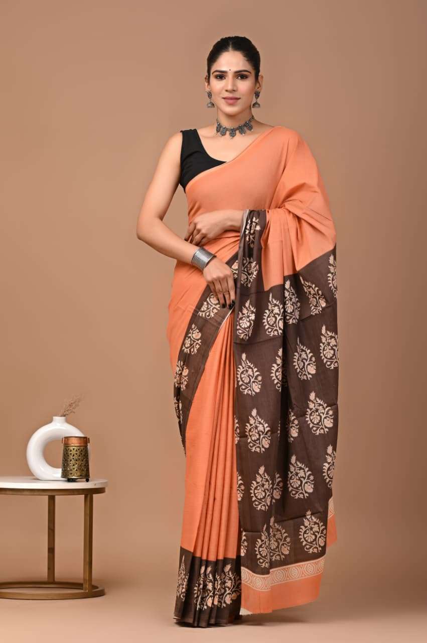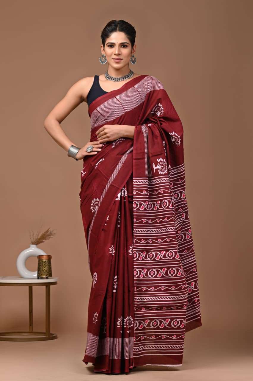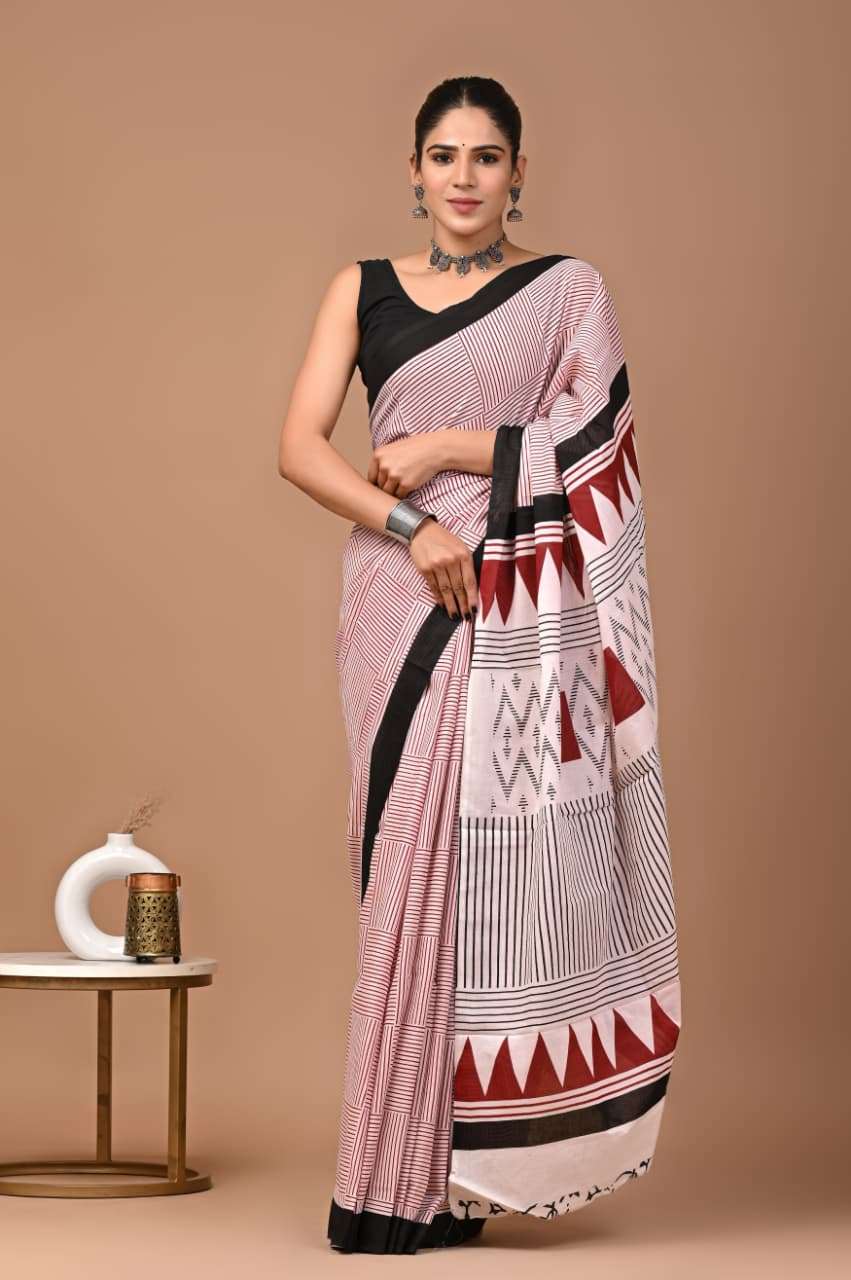 | Catalogue: | Shri Balaji Emporium RF 19437 Bagru Hand Block Printed Pure Cotton Mulmul Saree |