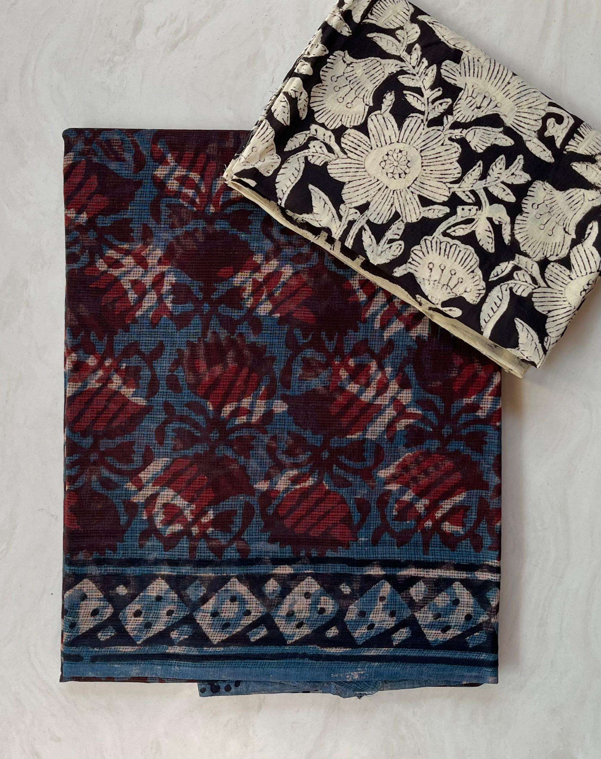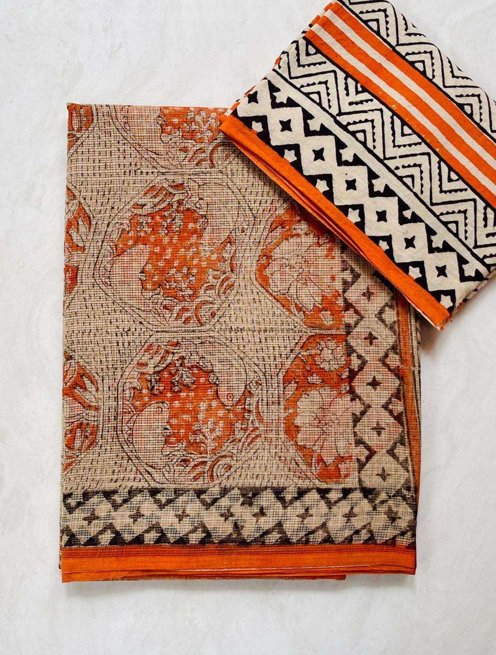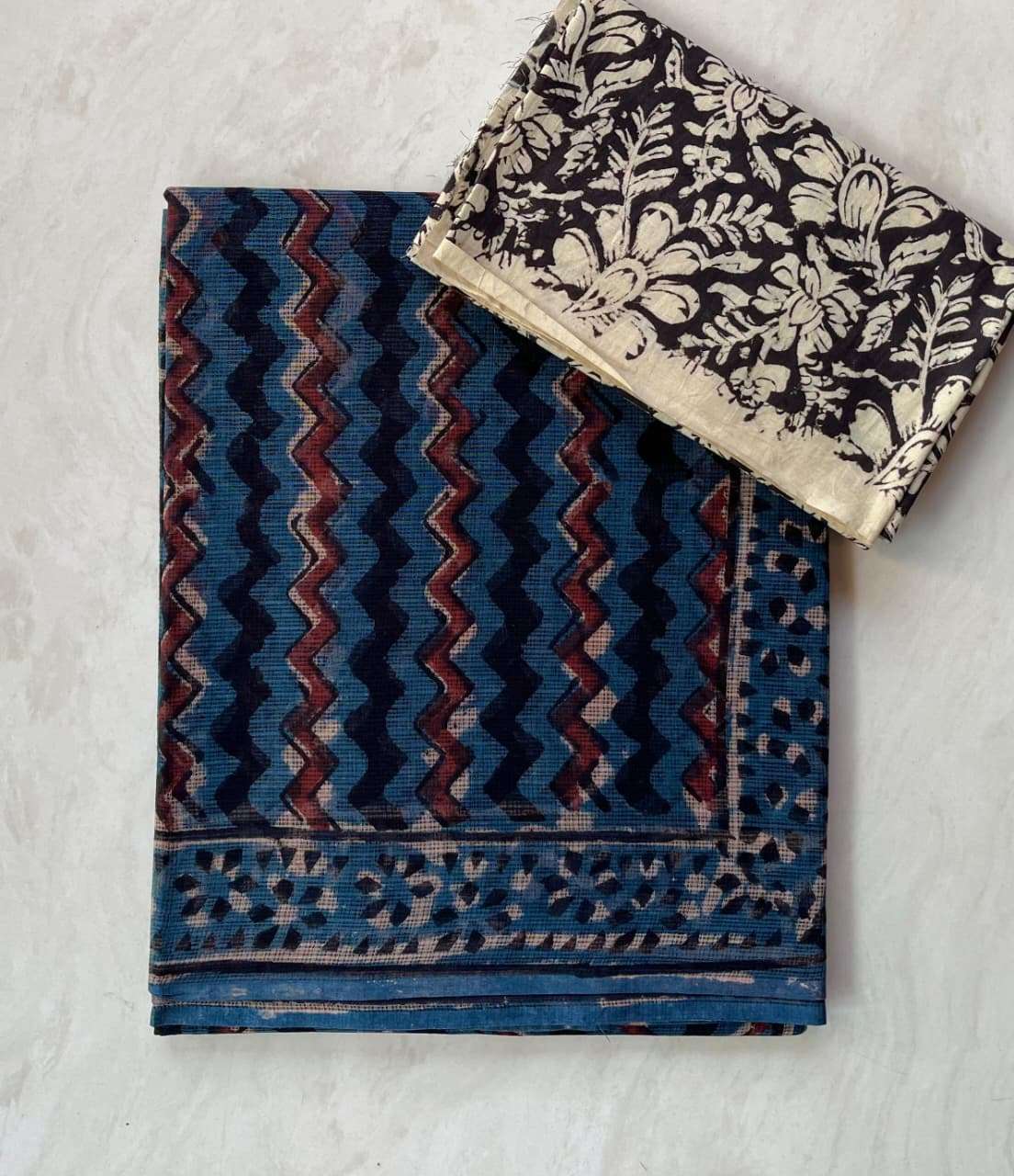 Hand block printed traditional designs n multi colour combination kota Doria sarees with blouse