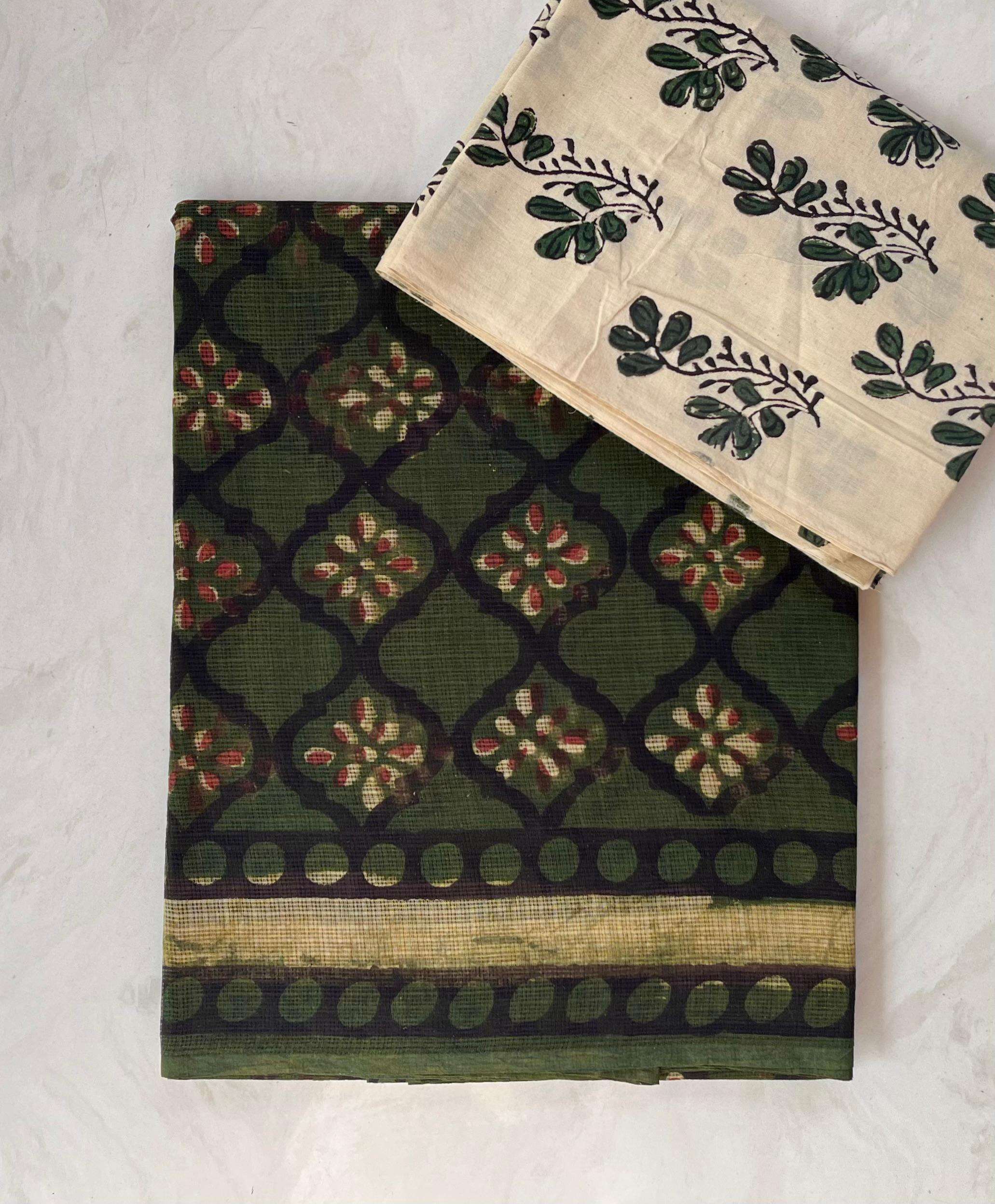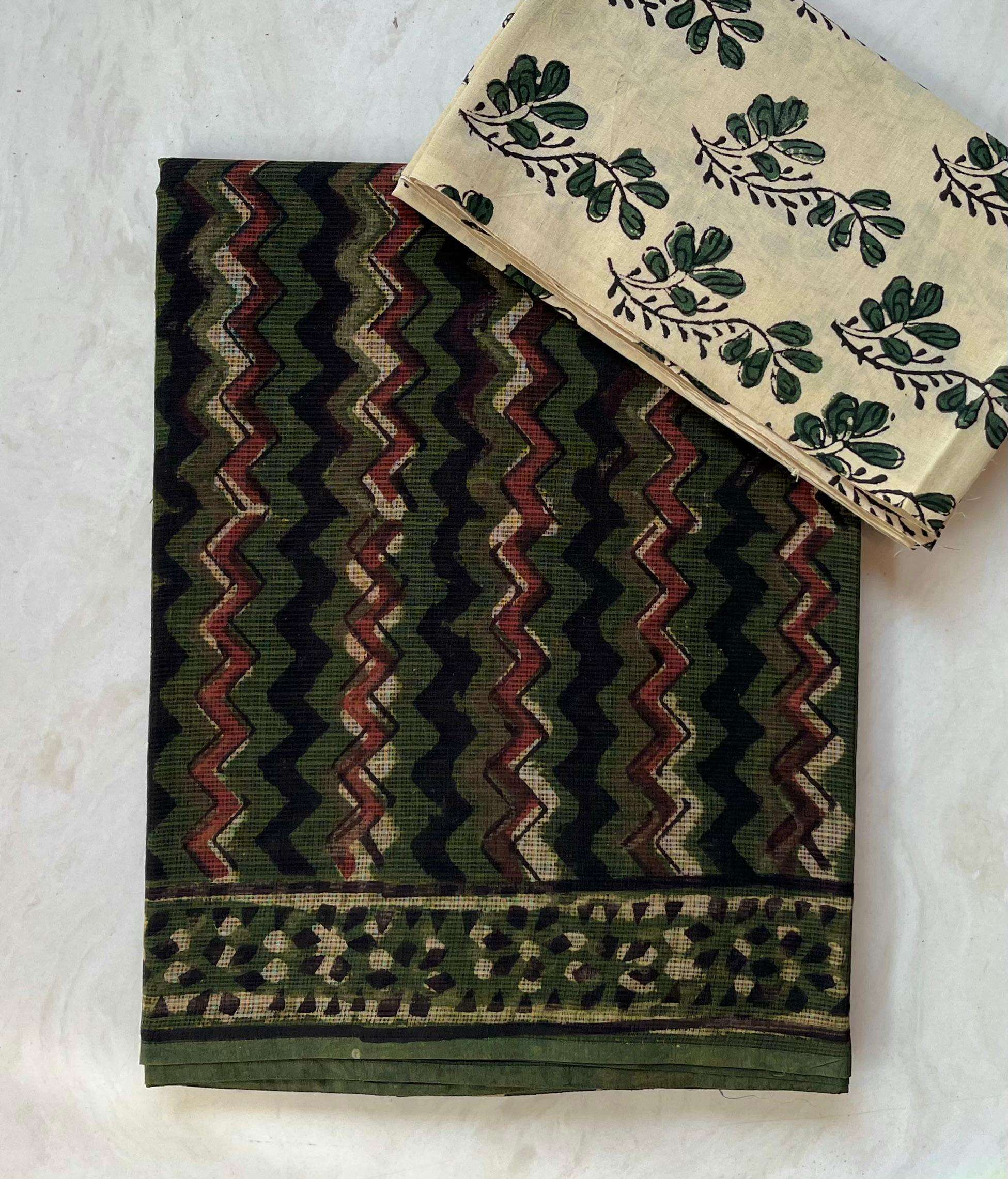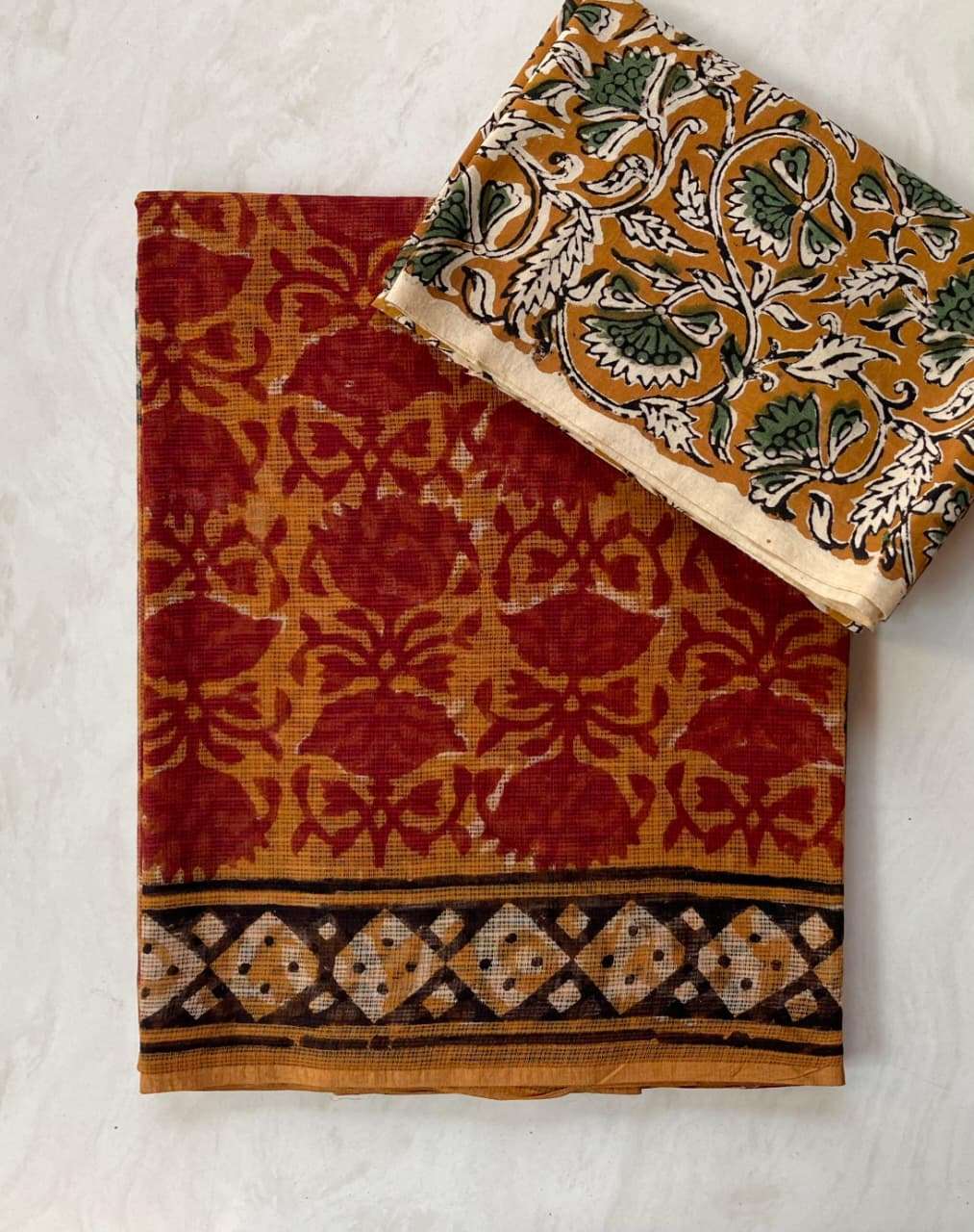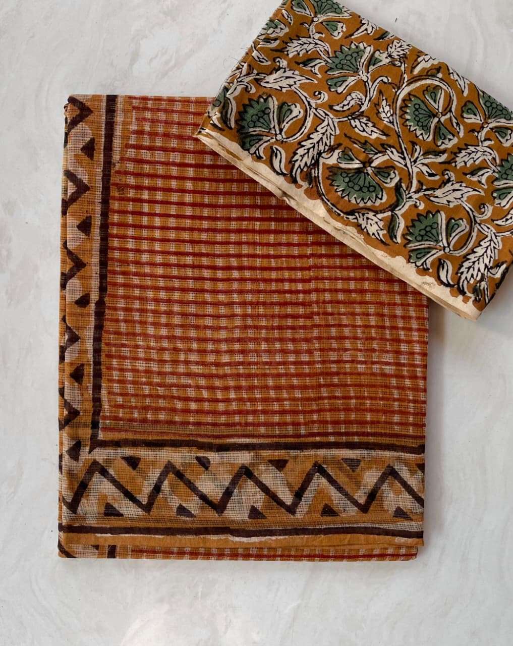 Hand block printed traditional designs n multi colour combination kota Doria sarees with blouse