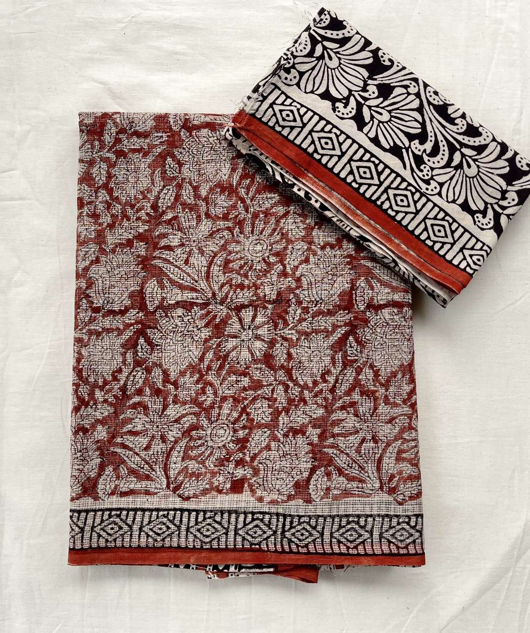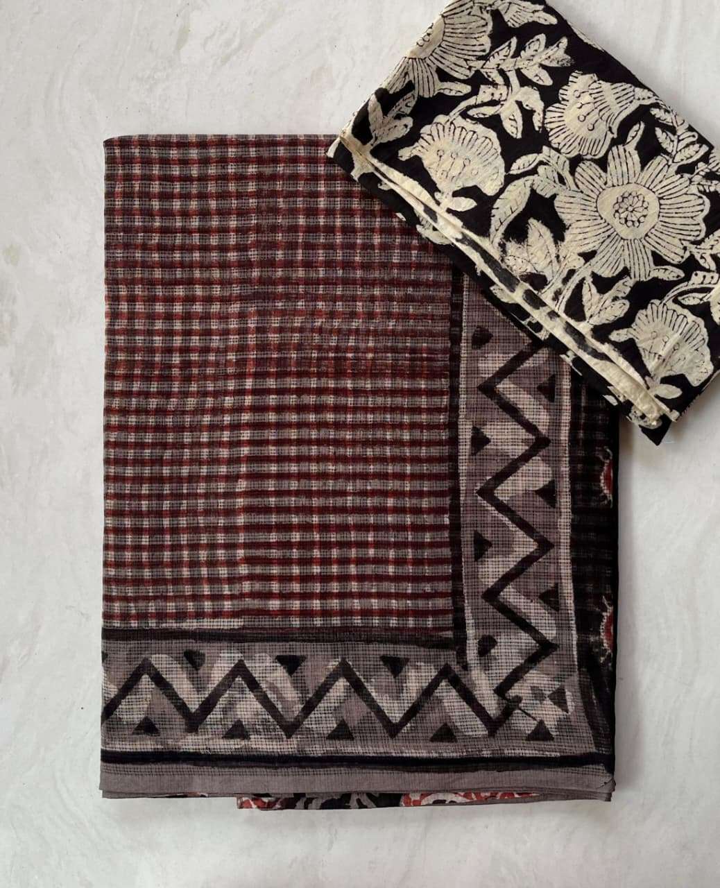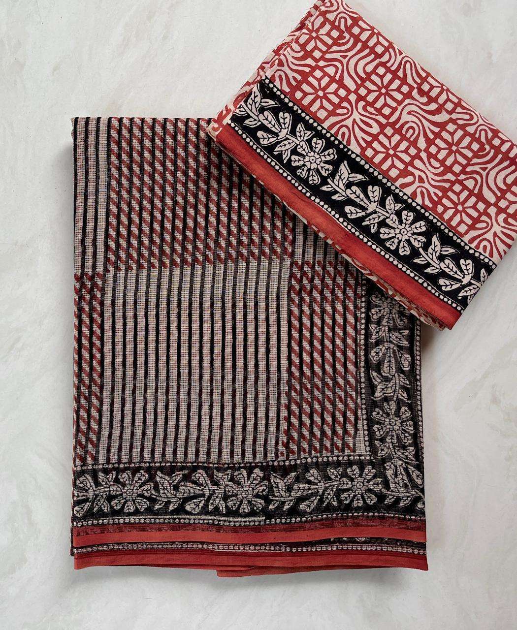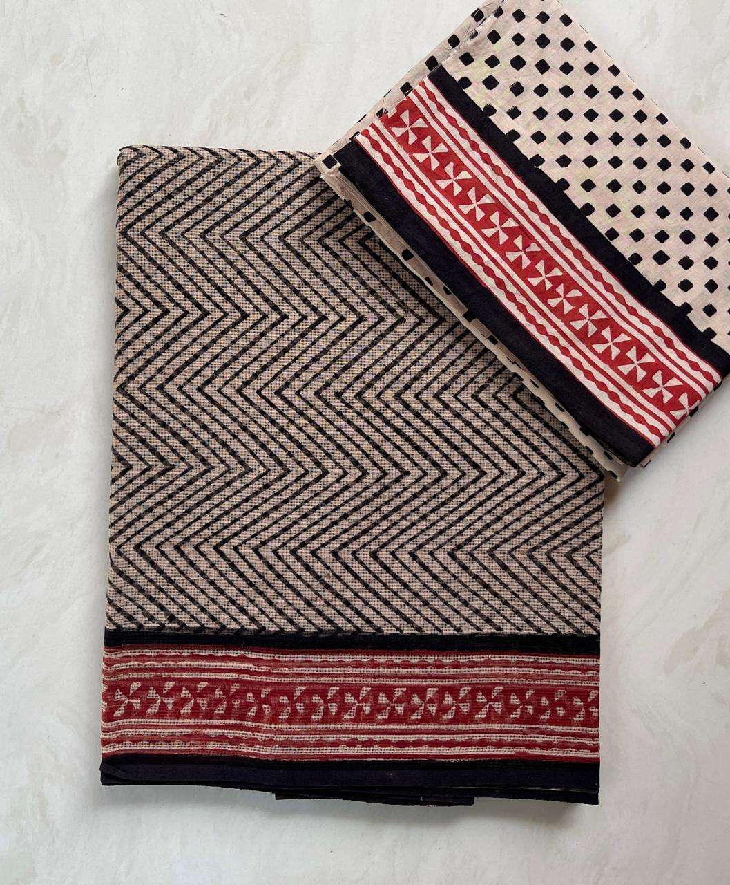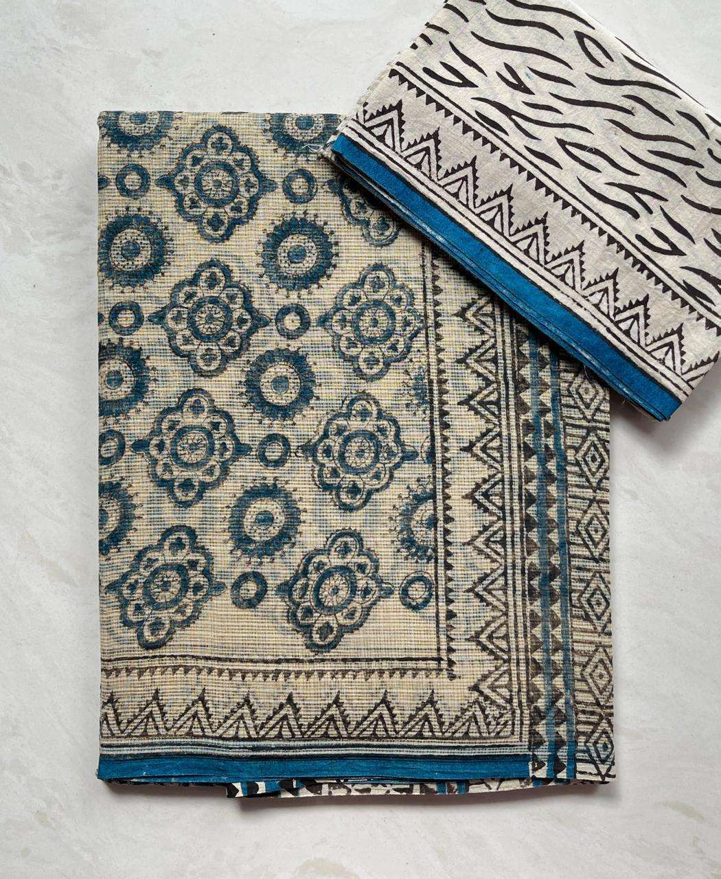 Hand block printed traditional designs n multi colour combination kota Doria sarees with blouse