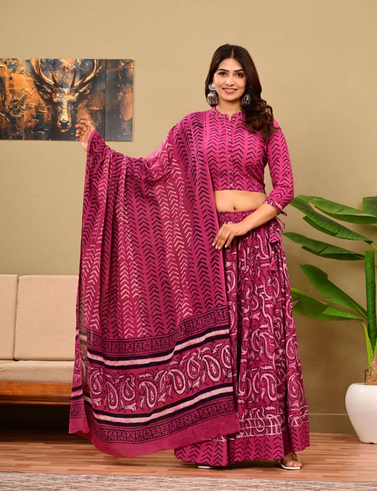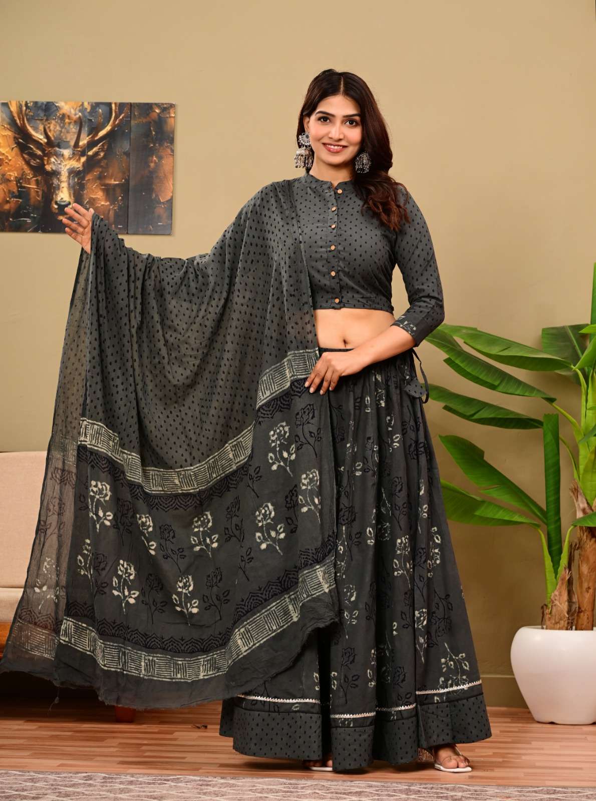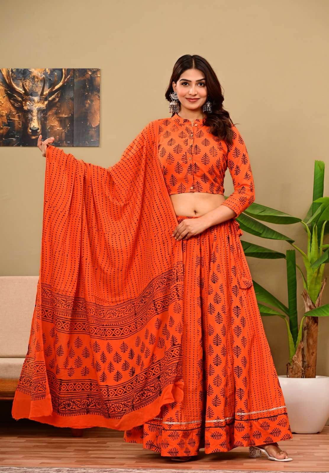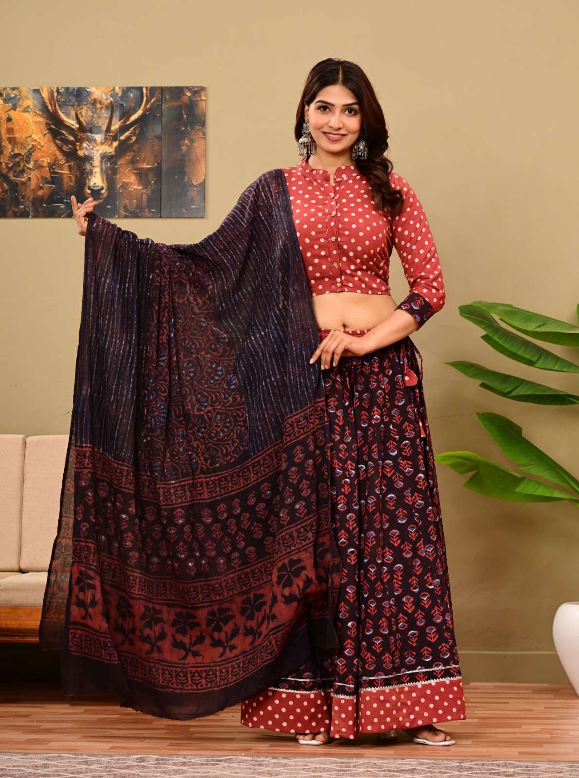 | Catalogue: | Shri Balaji Emporium RF 19542 Bagru Hand Block Printed Pure Cotton Lehenga Choli |