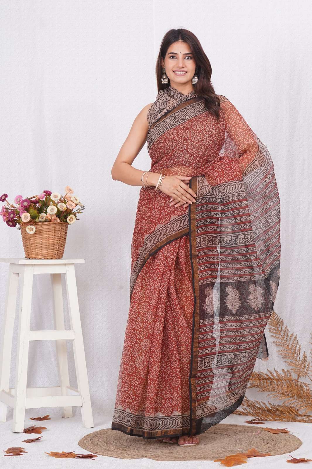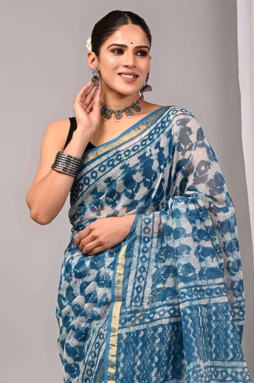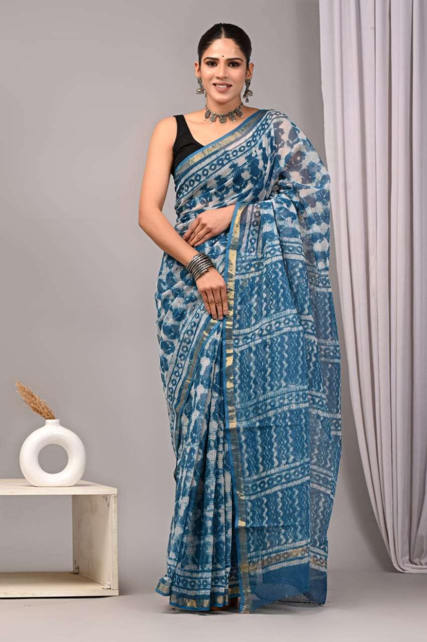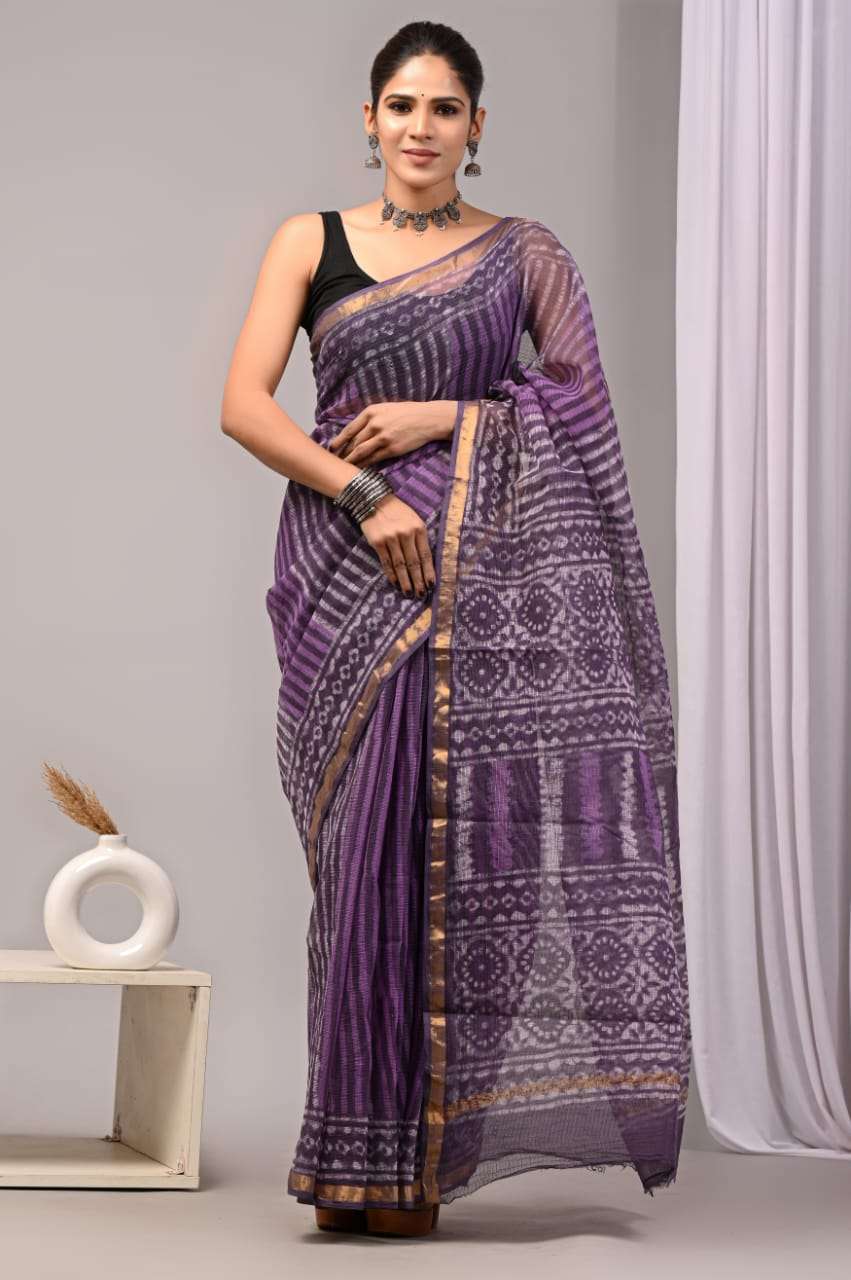 New Unique collection of Colourful Hand block printed kota doriya sarees with blouse.