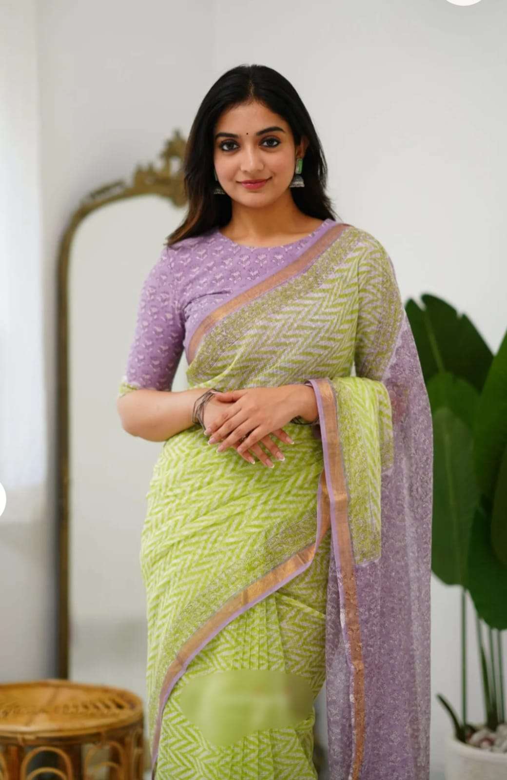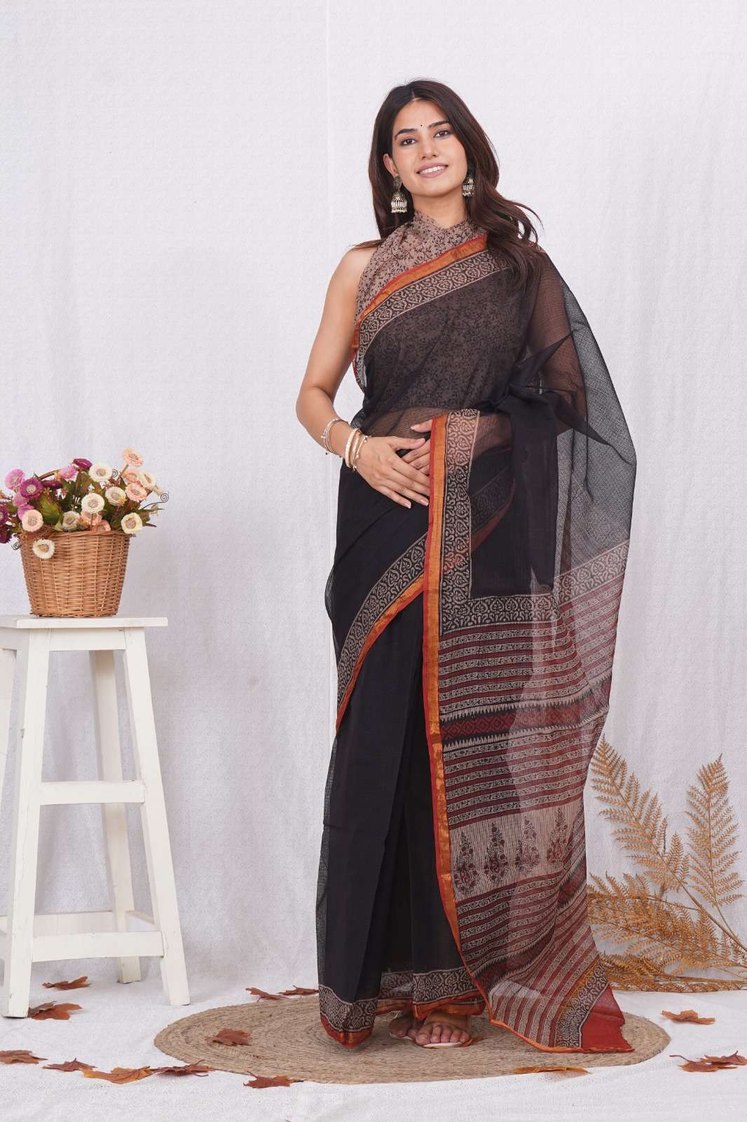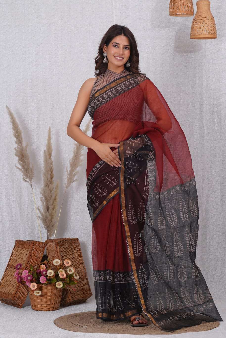 New Unique collection of Colourful Hand block printed kota doriya sarees with blouse.