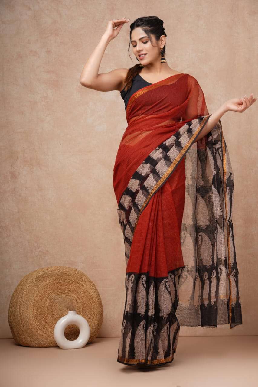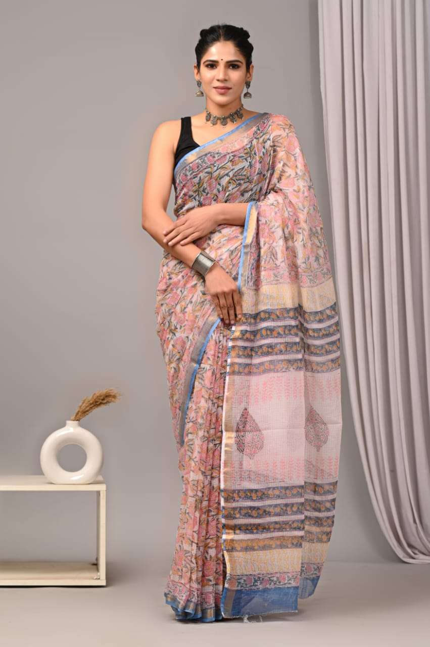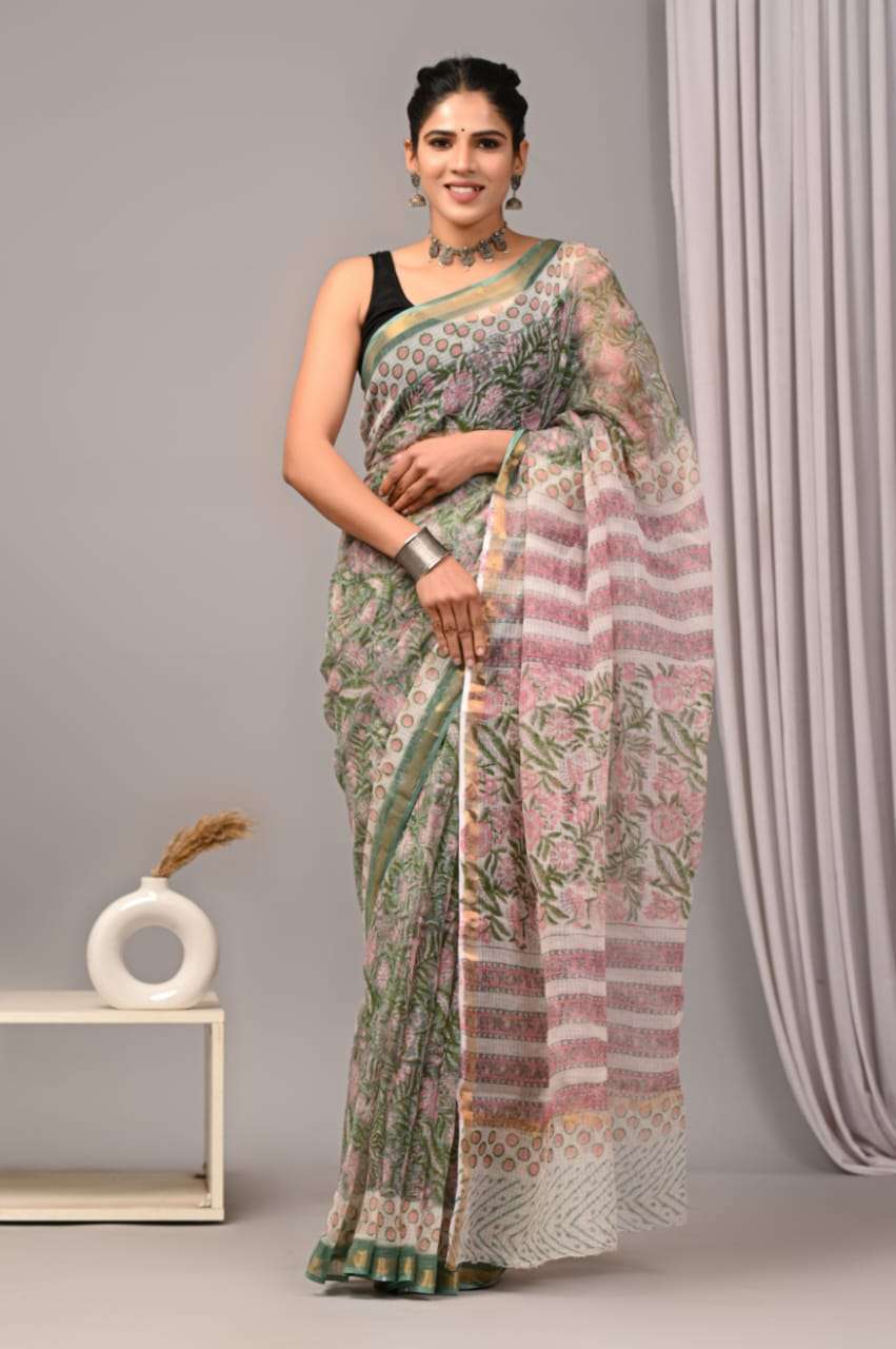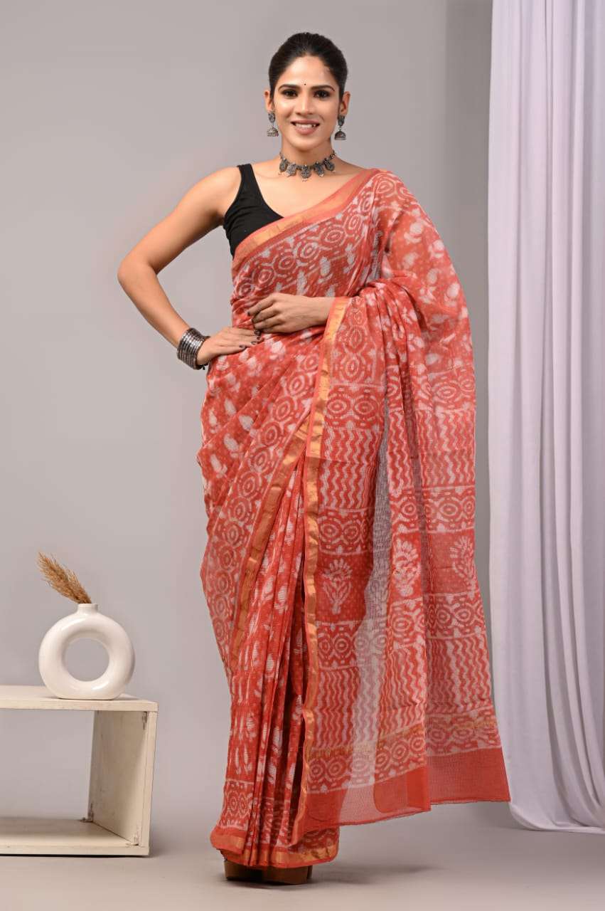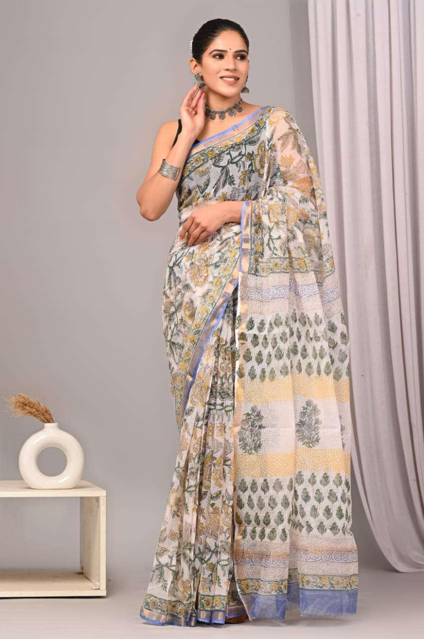 New Unique collection of Colourful Hand block printed kota doriya sarees with blouse.